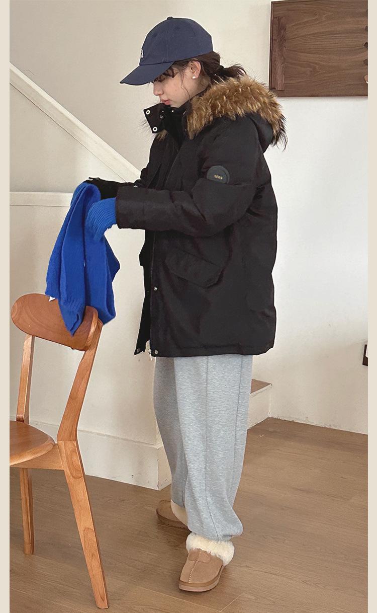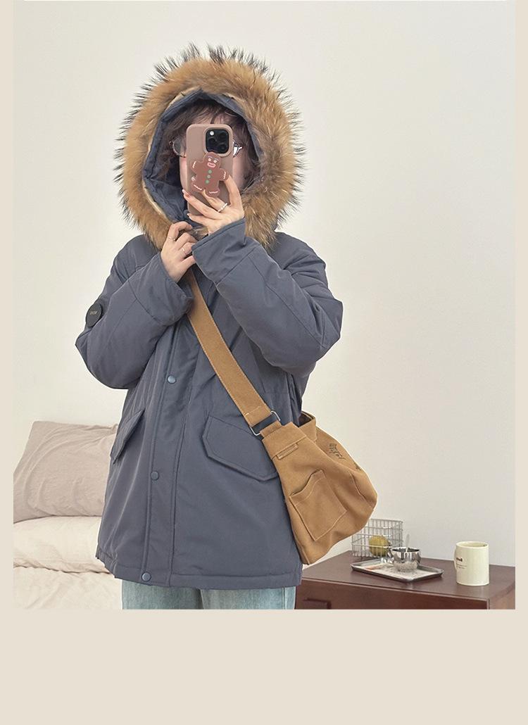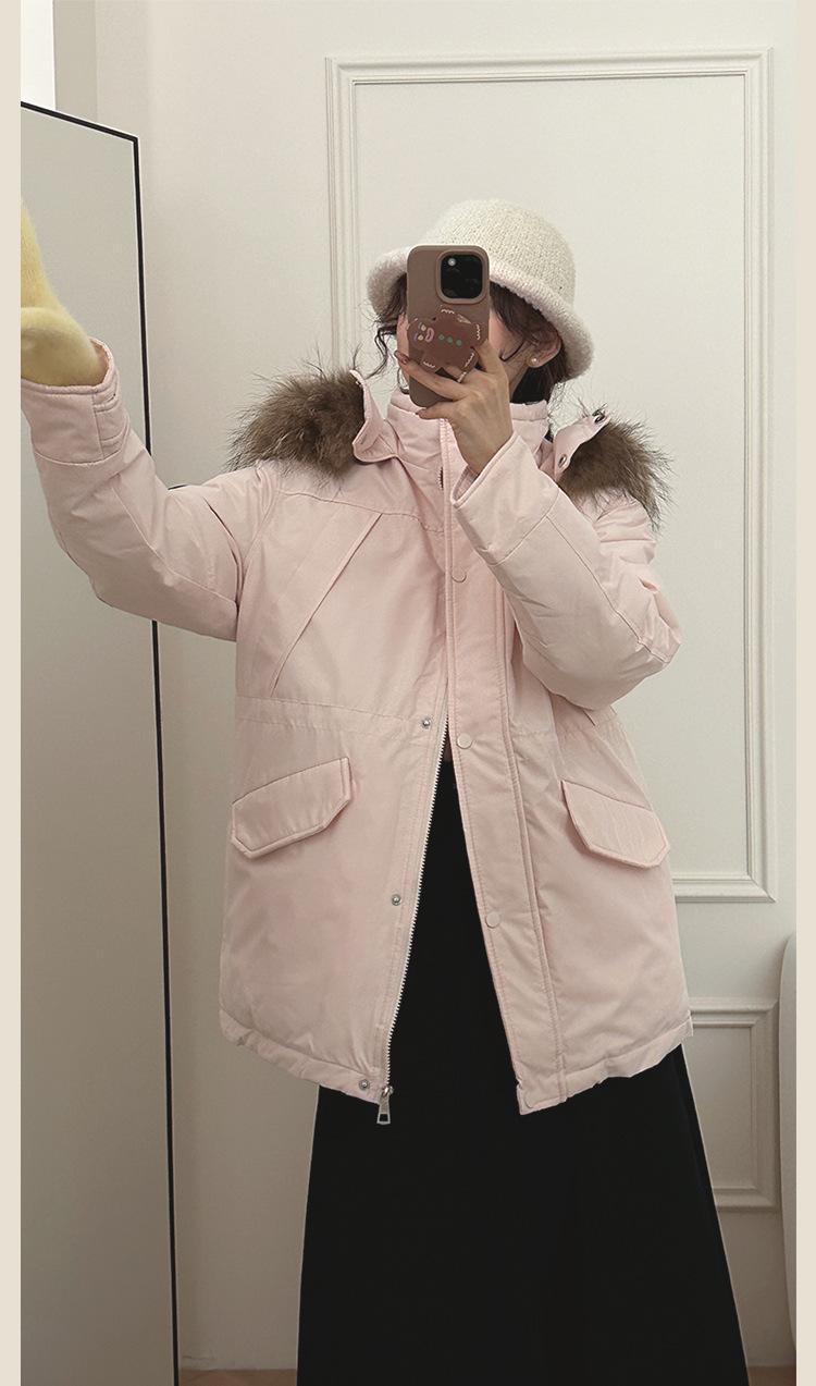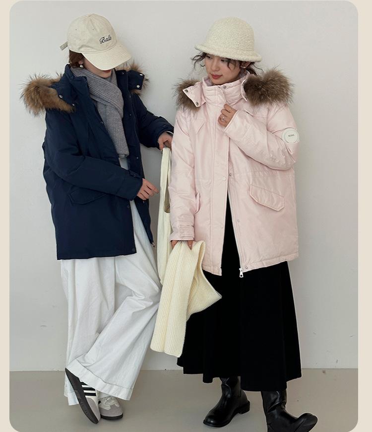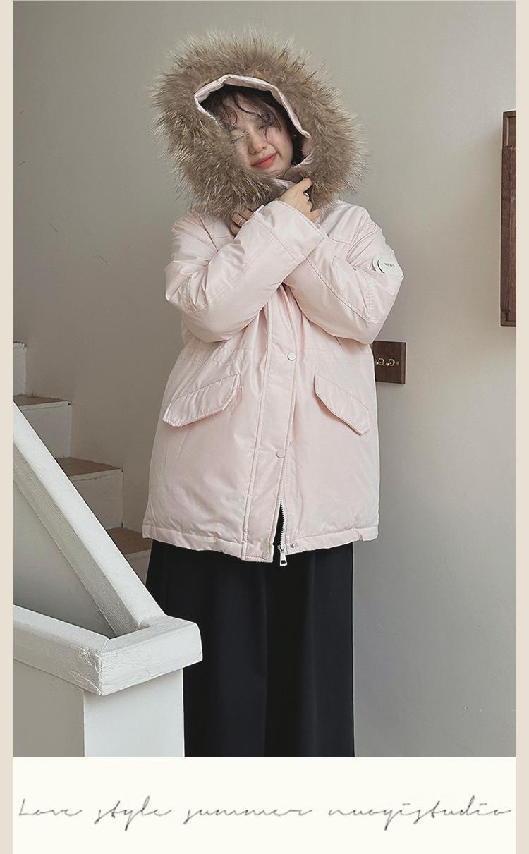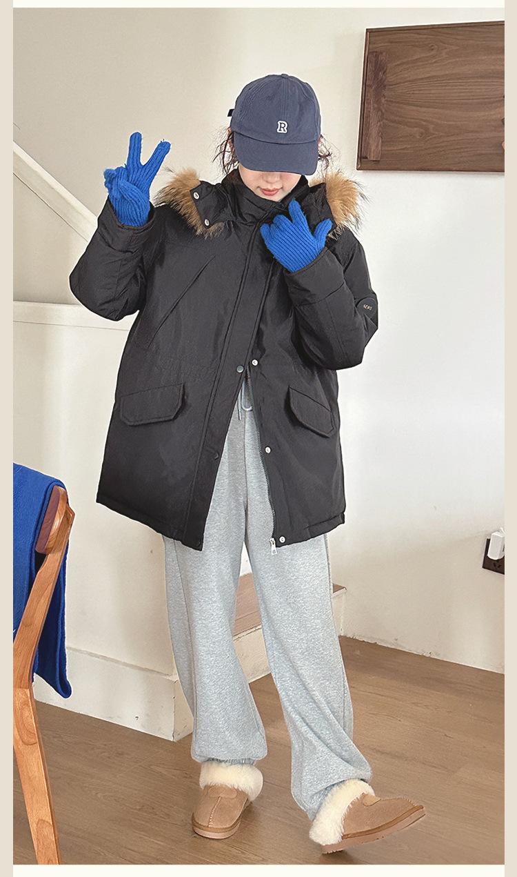 Abrigo Nuevo con Capucha Otoño/Invierno 2024 Cuello de Piel Petite Retro Versátil Abrigo Nuevo Otoño Suelto para Mujer