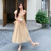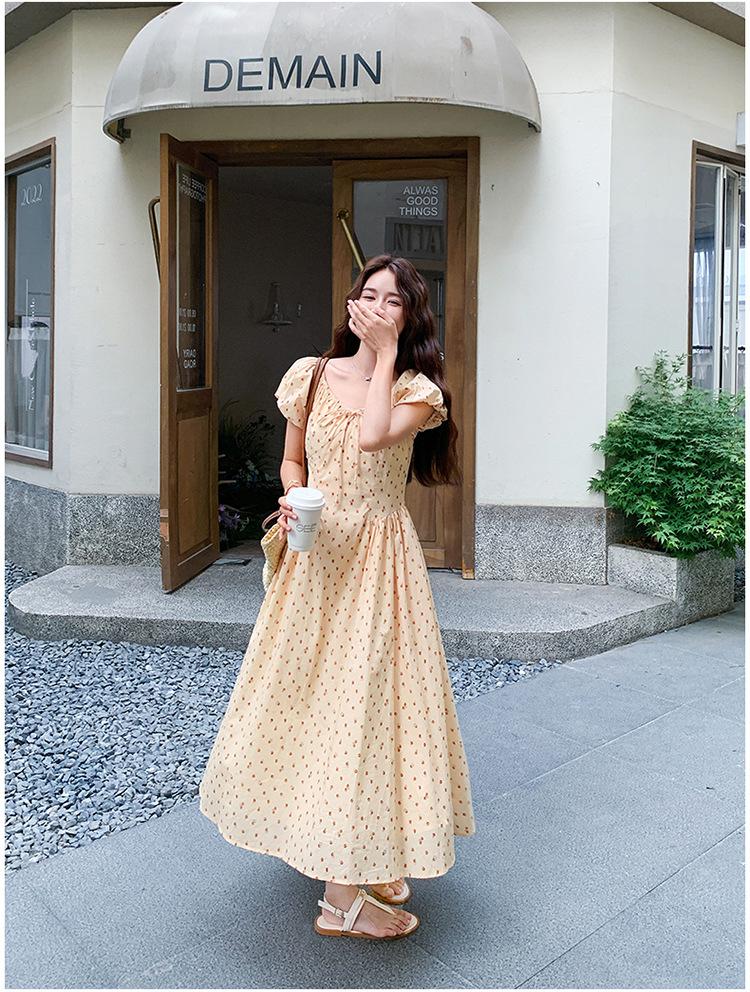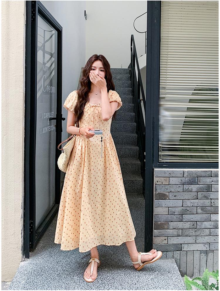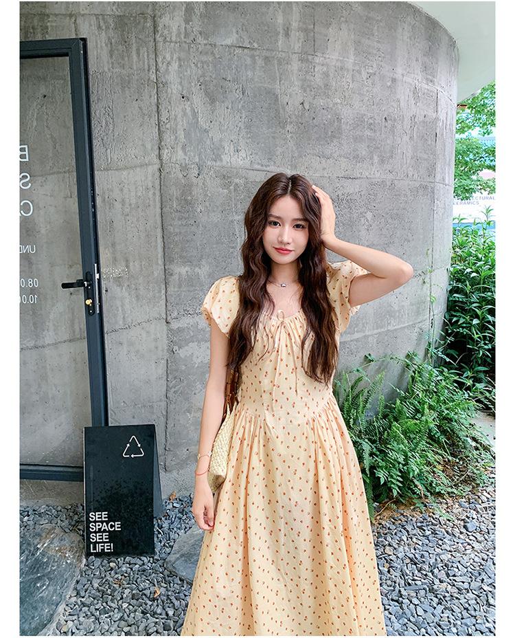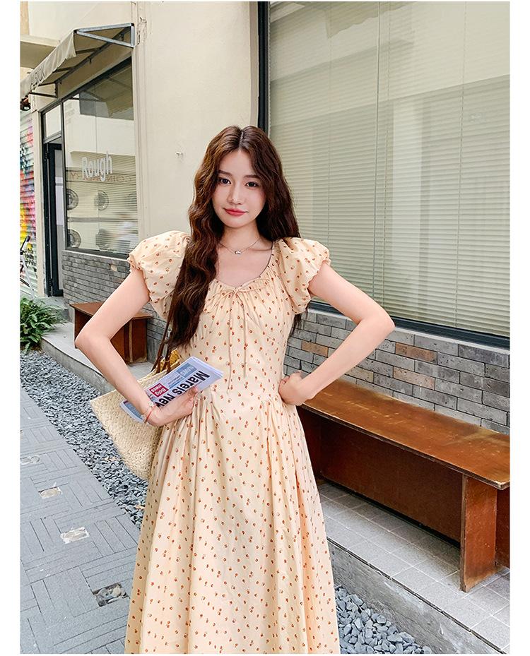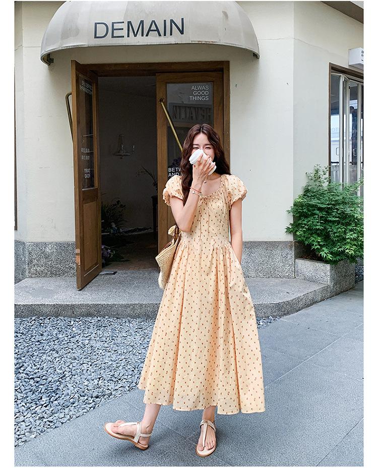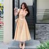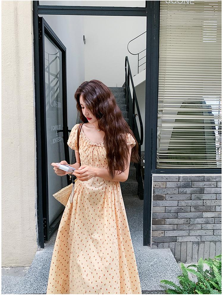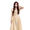 Vestido de Mujer Estilo Popular 2025 Nuevo Reductor de Edad y Mejorador de Calidad Algodón Puro Floral Amarillo Francés Largo