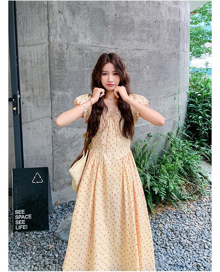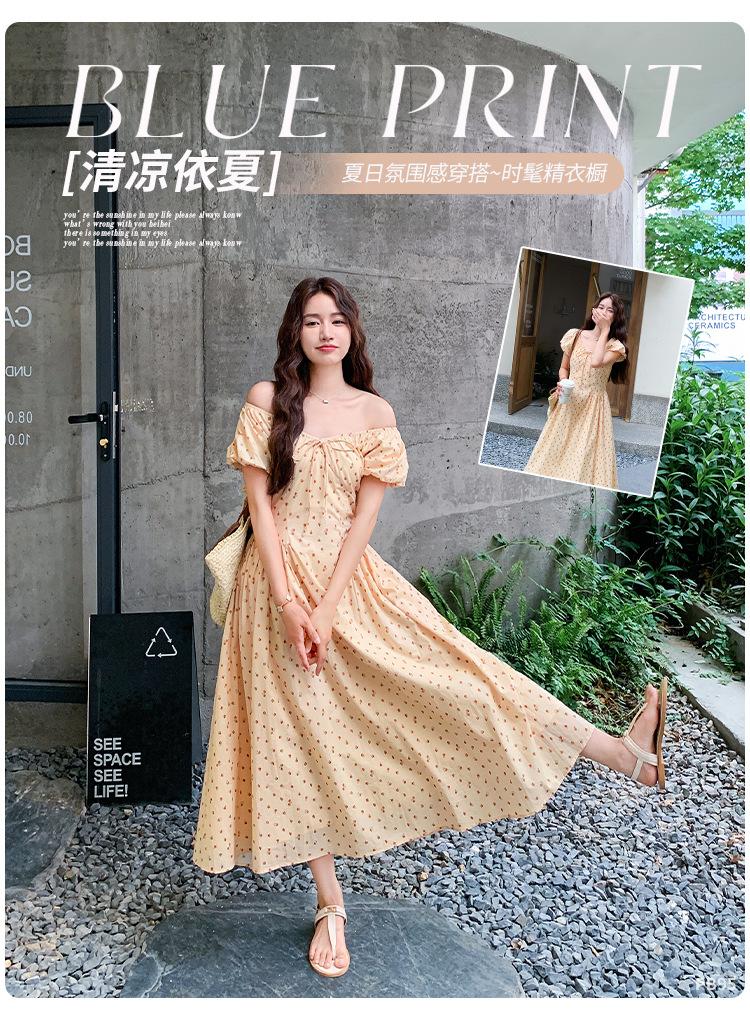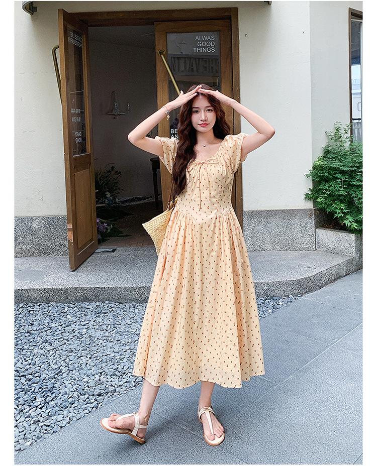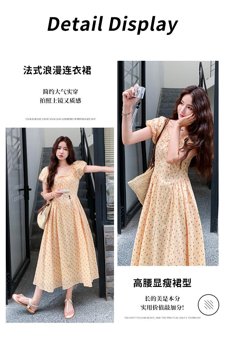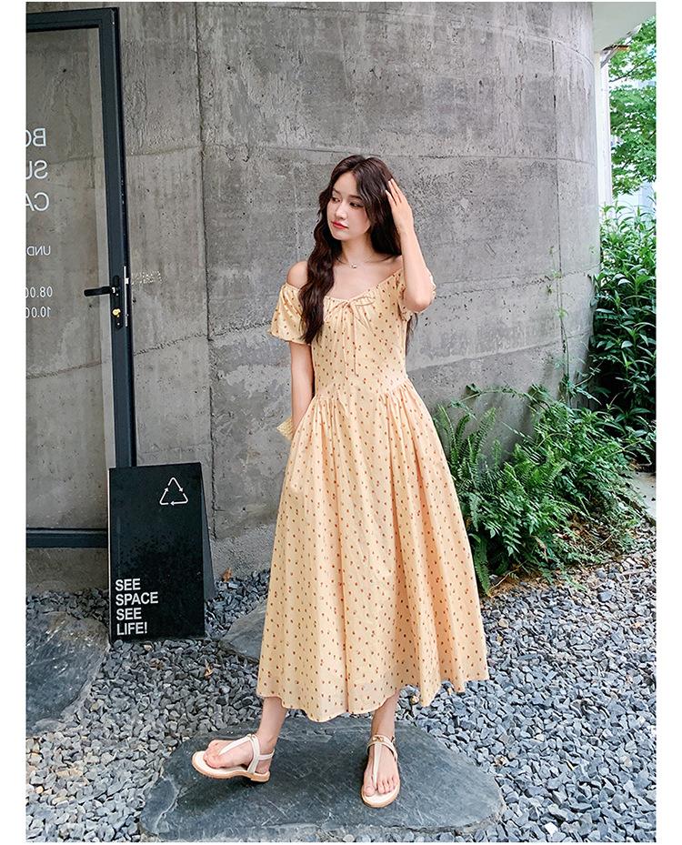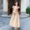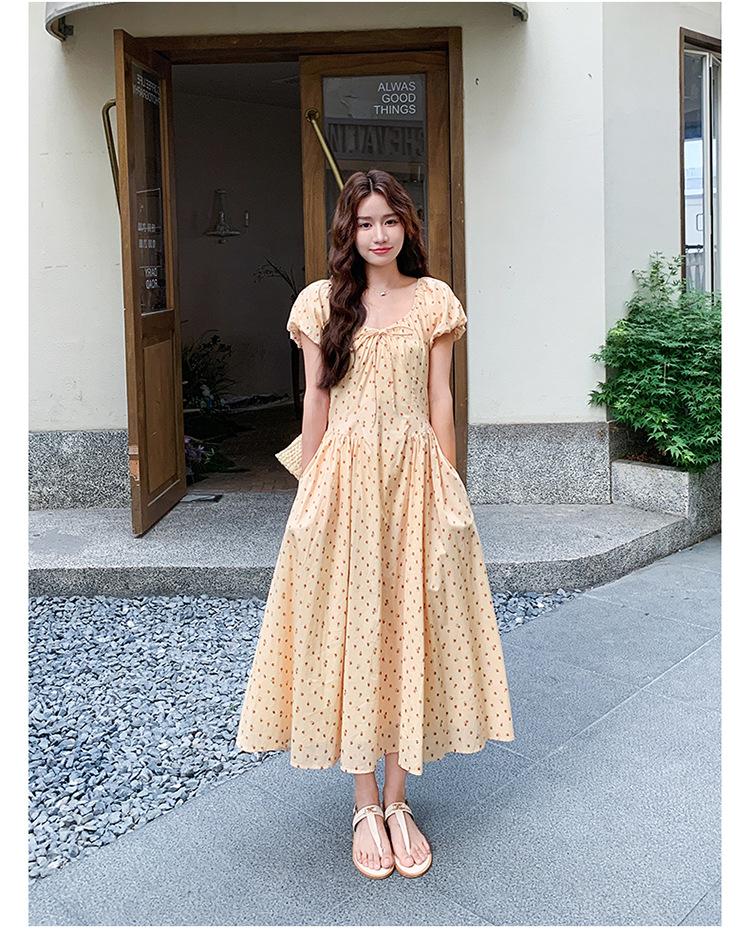 Vestido de Mujer Estilo Popular 2025 Nuevo Reductor de Edad y Mejorador de Calidad Algodón Puro Floral Amarillo Francés Largo