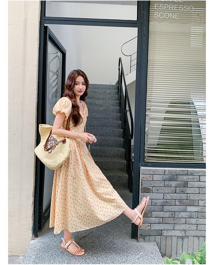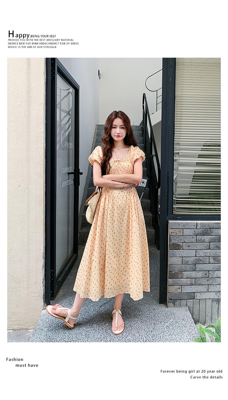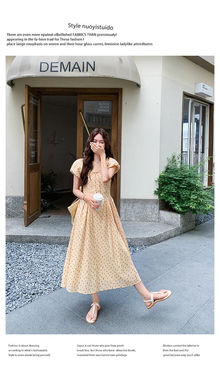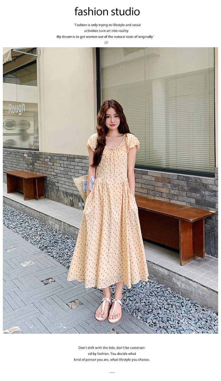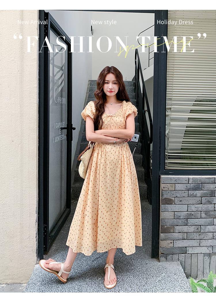Vestido de Mujer Estilo Popular 2025 Nuevo Reductor de Edad y Mejorador de Calidad Algodón Puro Floral Amarillo Francés Largo