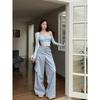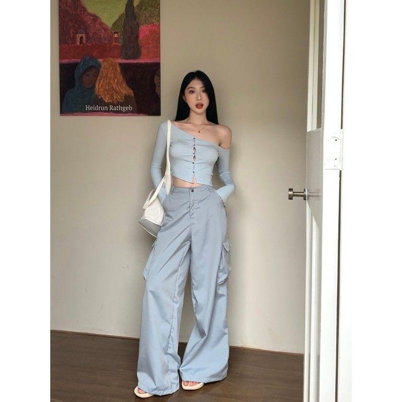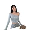 Playera de Manga Larga con Hombro Descubierto Ajustada de Diseño Puro y Deseo para Mujer Otoño Sexy Chica Caliente Top Corto de Cintura Alta