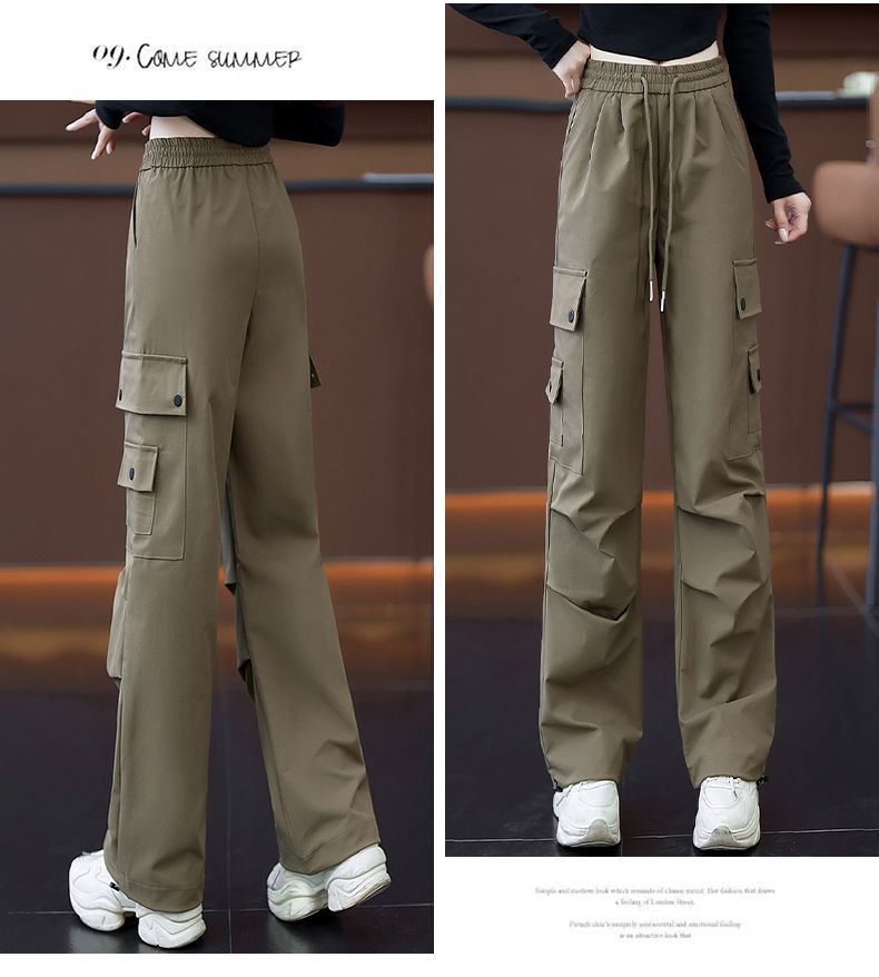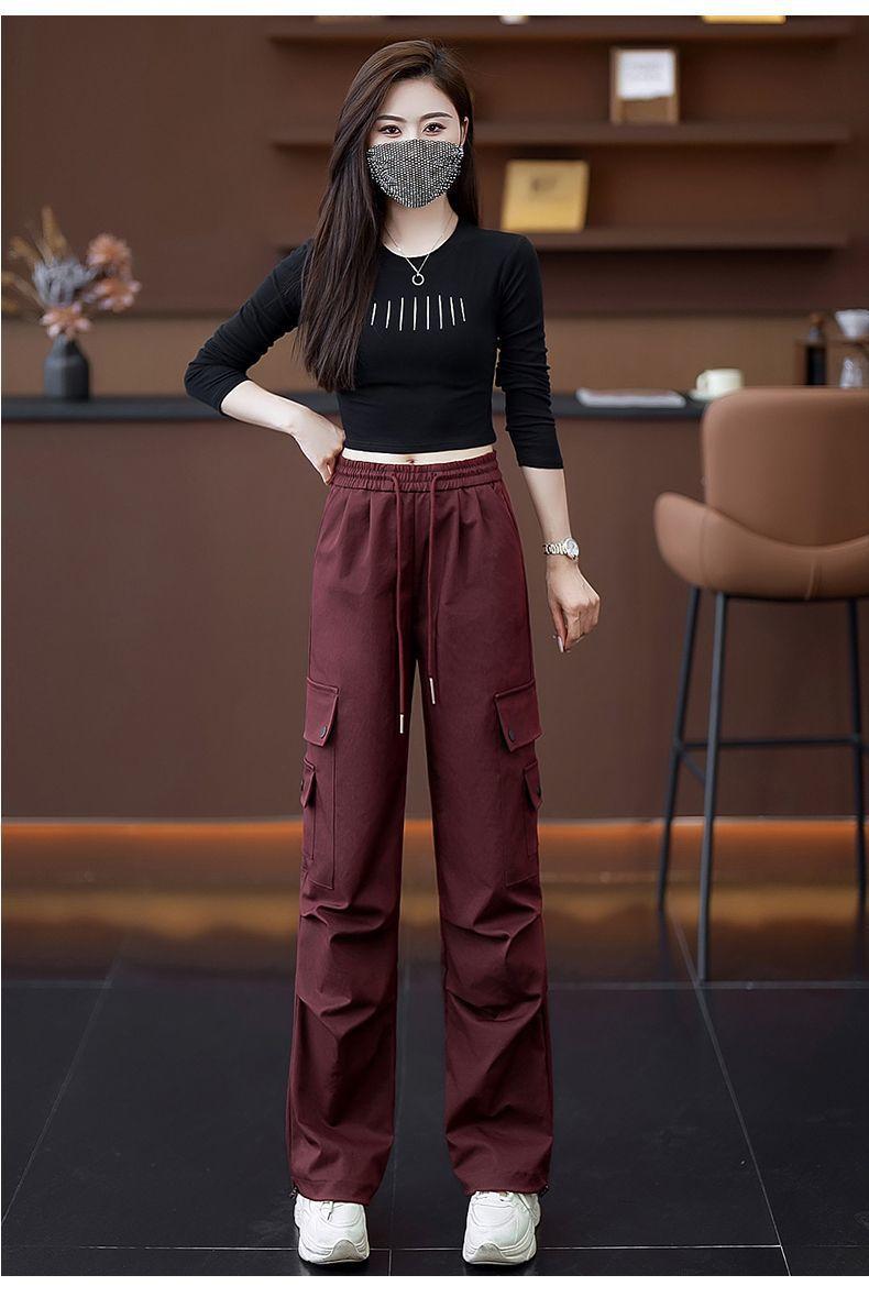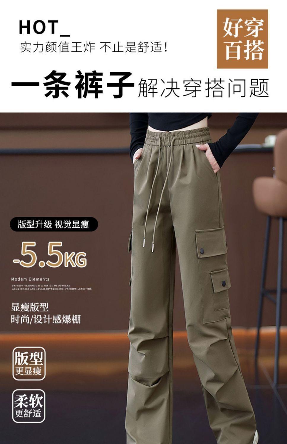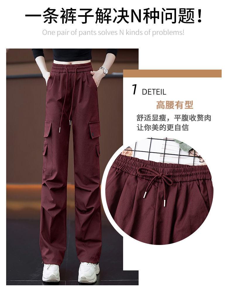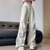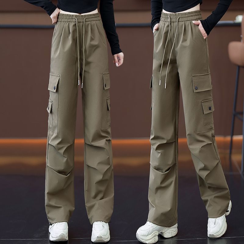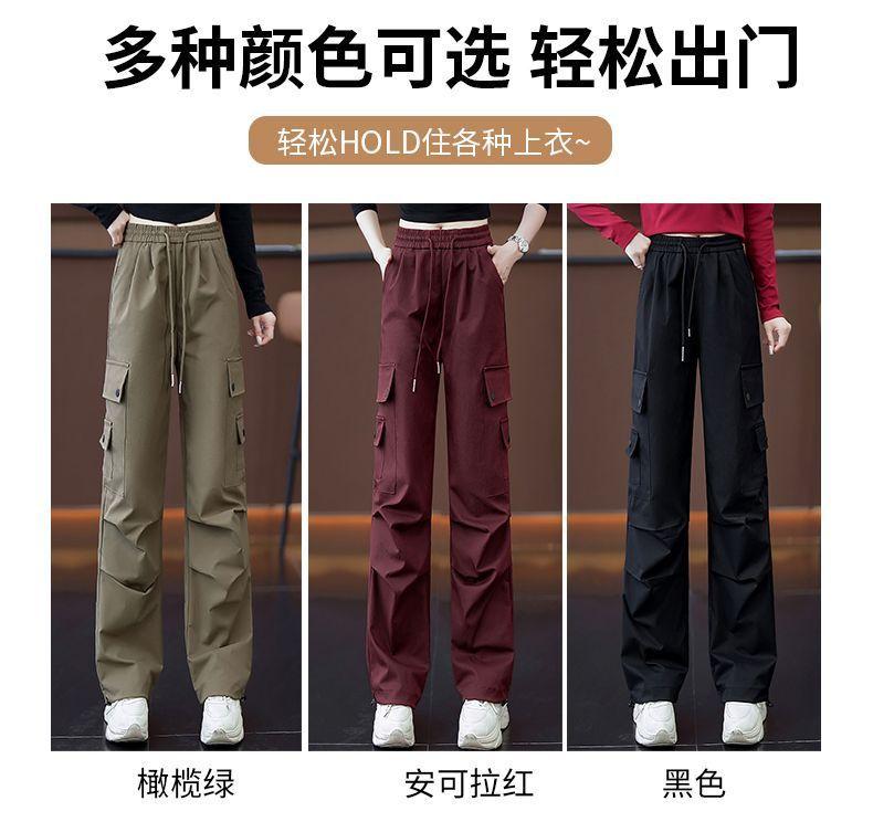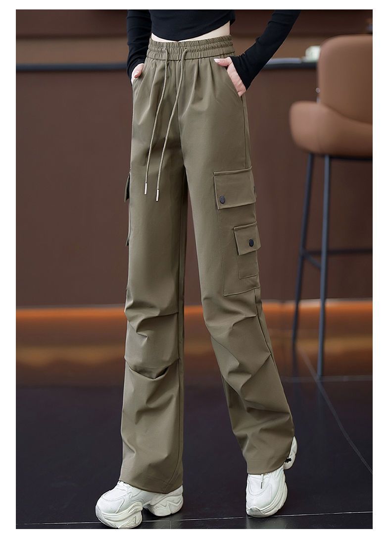 Pantalones de Trabajo Americanos Mujer Primavera Otoño 2025 Nuevo Cintura Alta Adelgazantes Drapeados Pierna Ancha Bolsillos Grandes Pantalones Casuales Deportivos