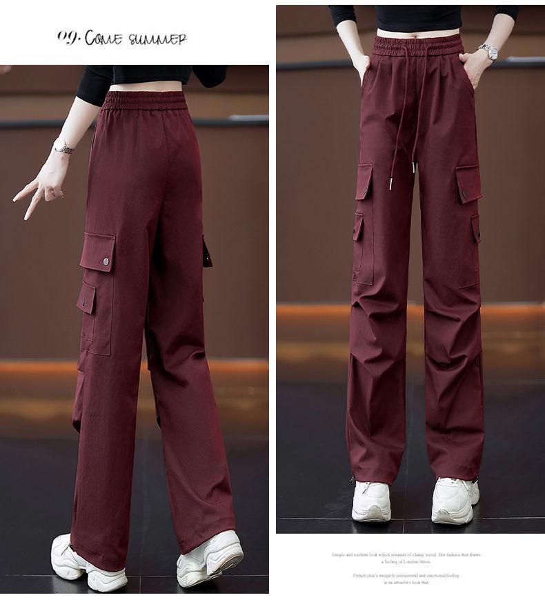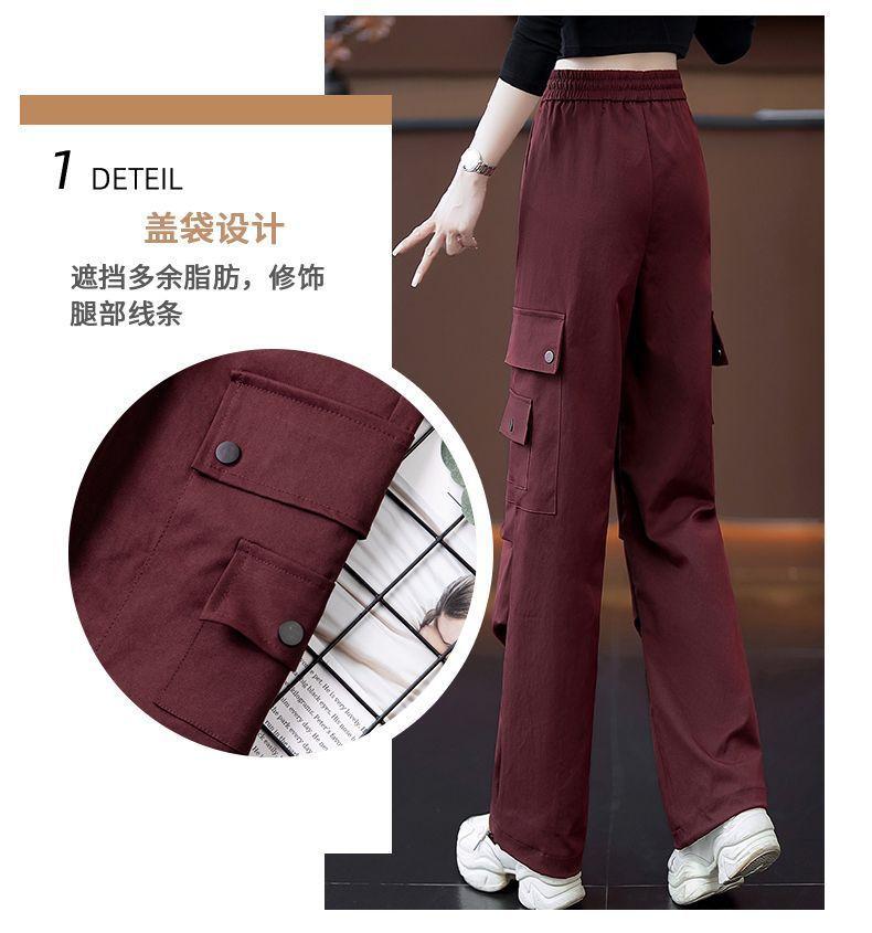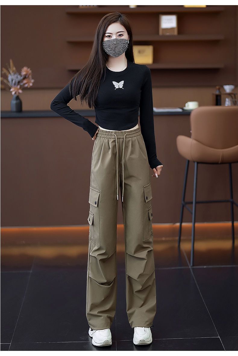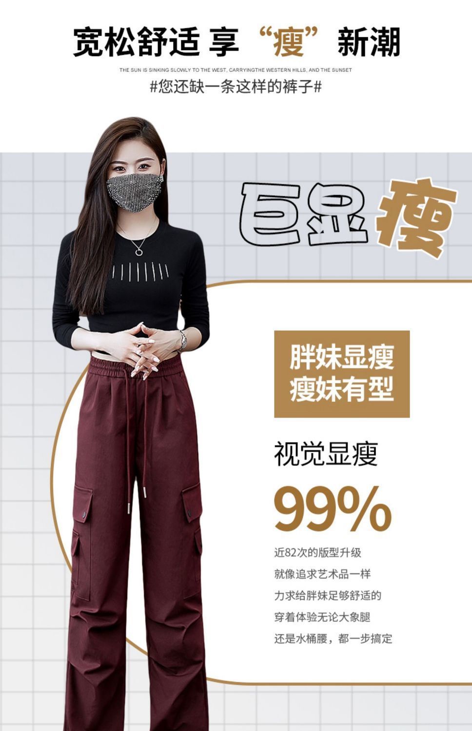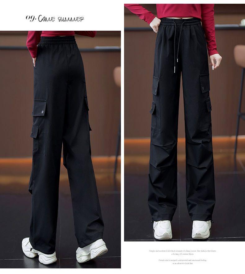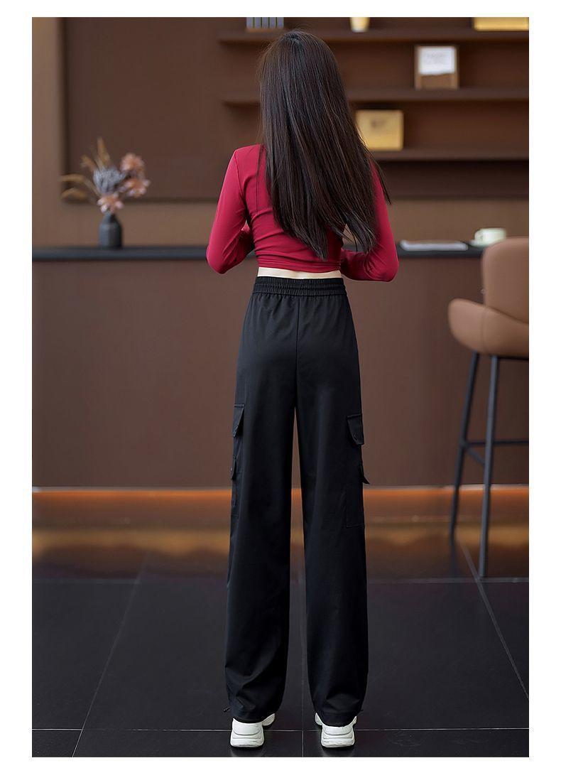 Pantalones de Trabajo Americanos Mujer Primavera Otoño 2025 Nuevo Cintura Alta Adelgazantes Drapeados Pierna Ancha Bolsillos Grandes Pantalones Casuales Deportivos