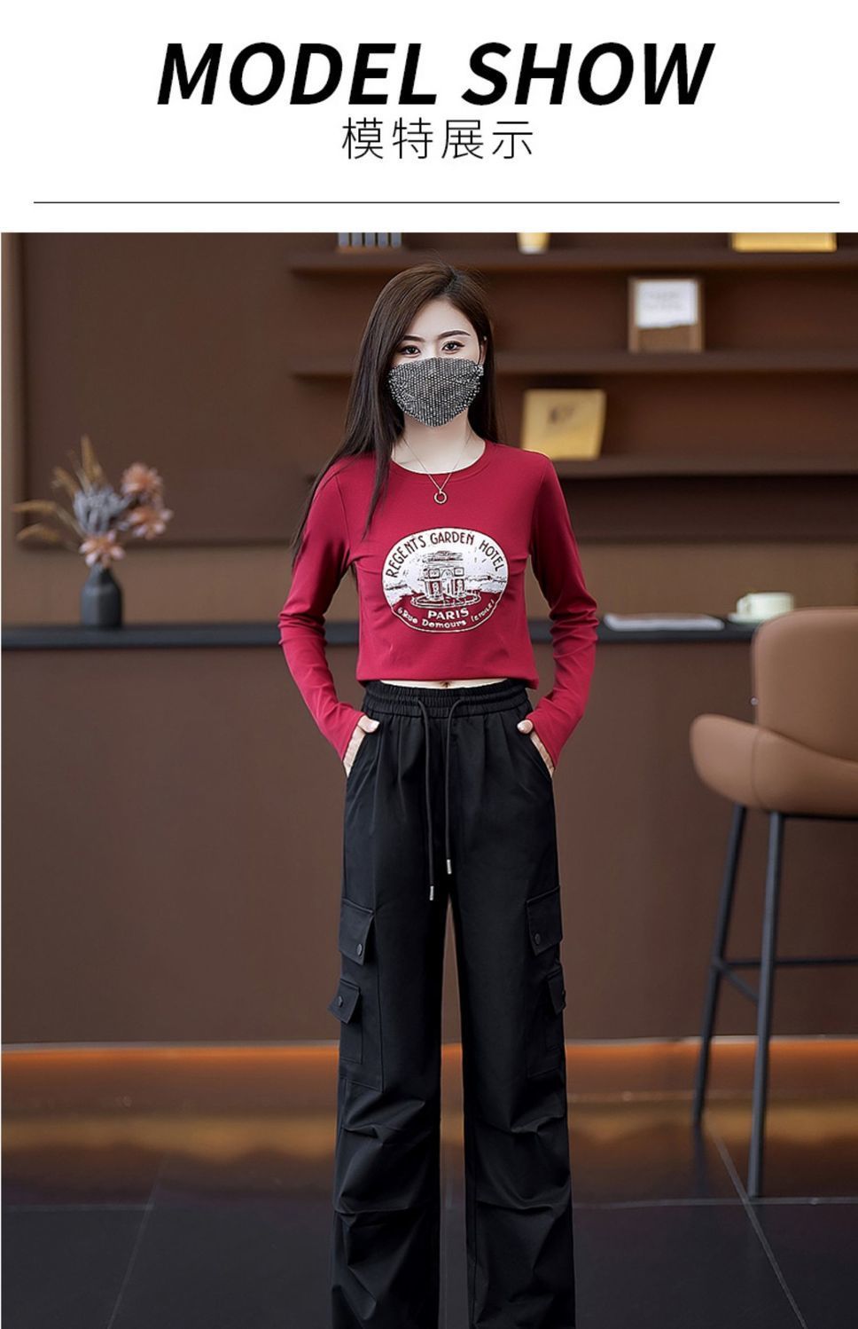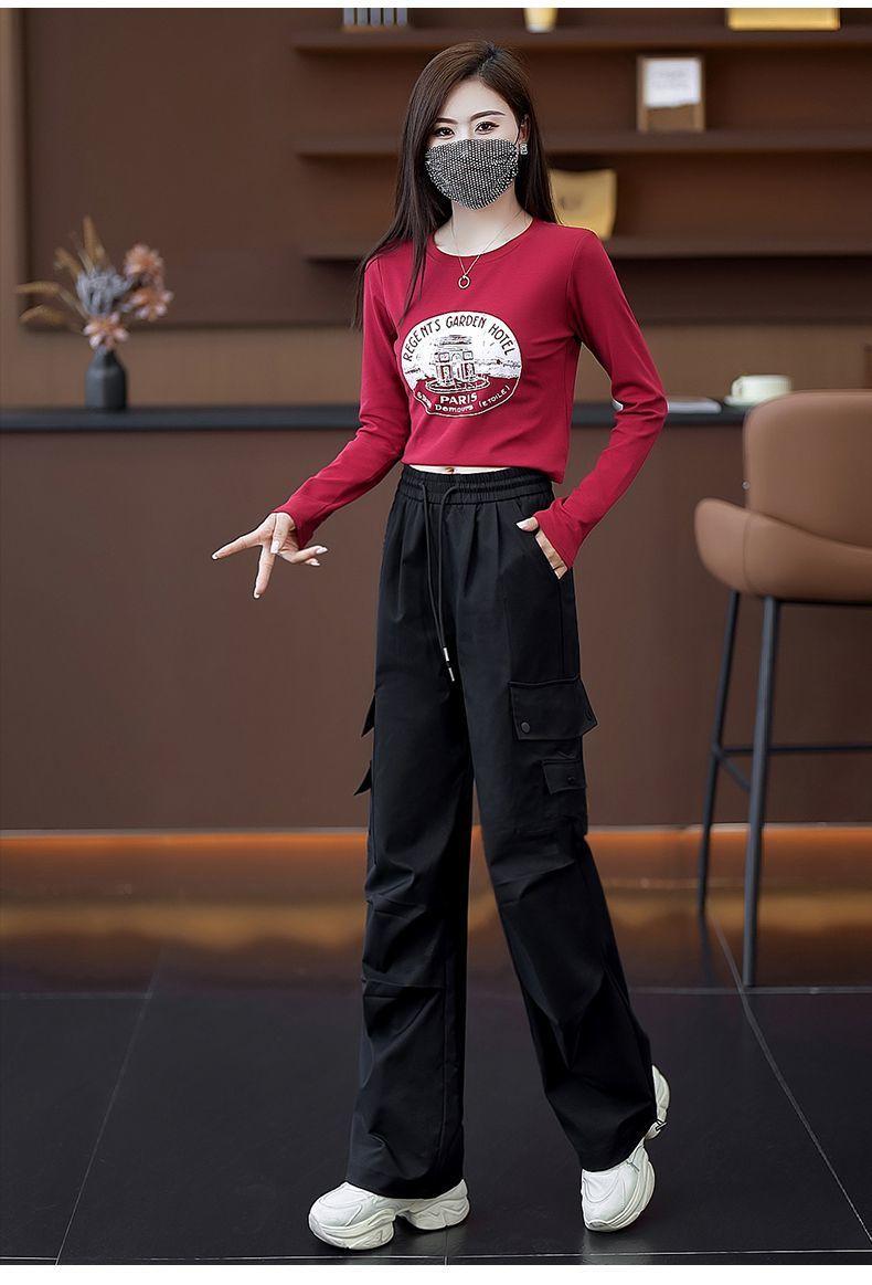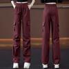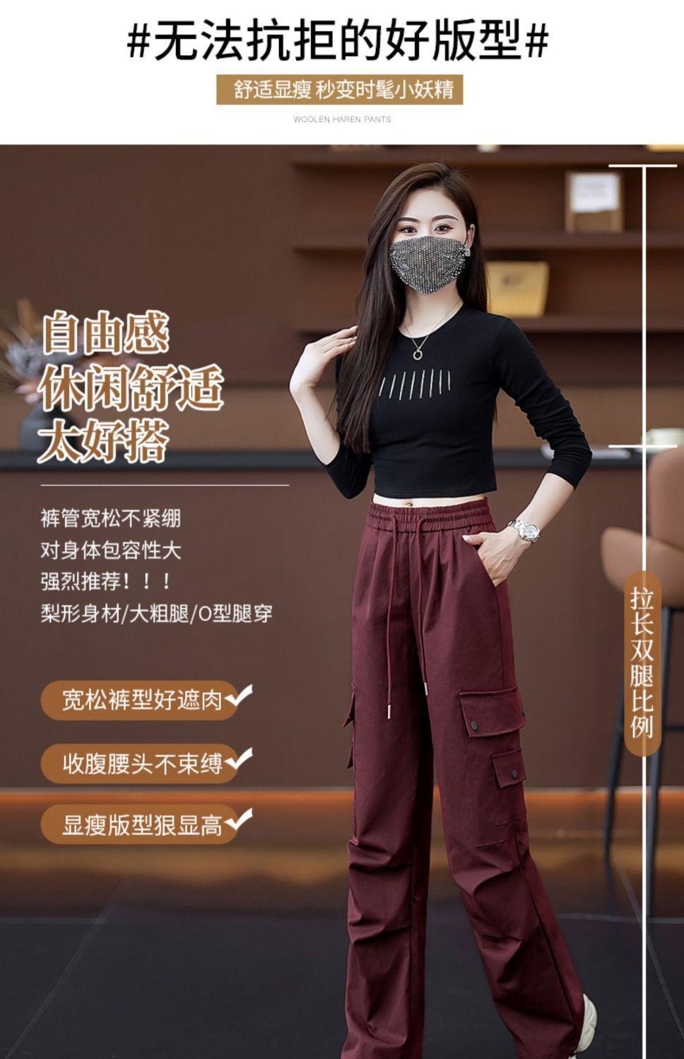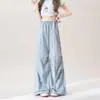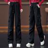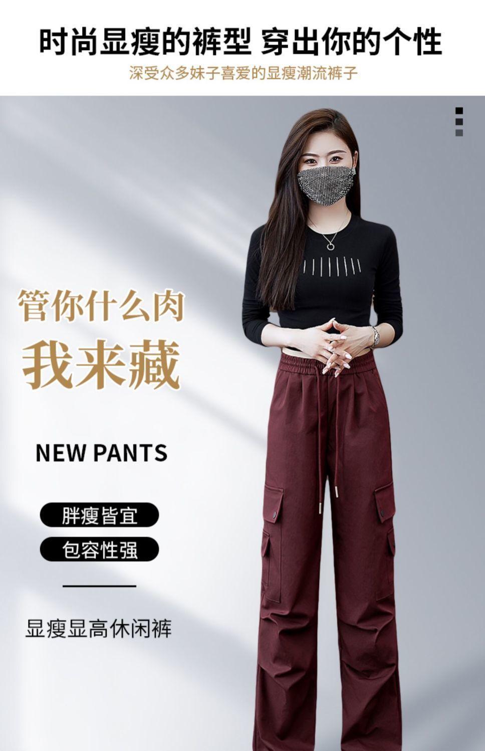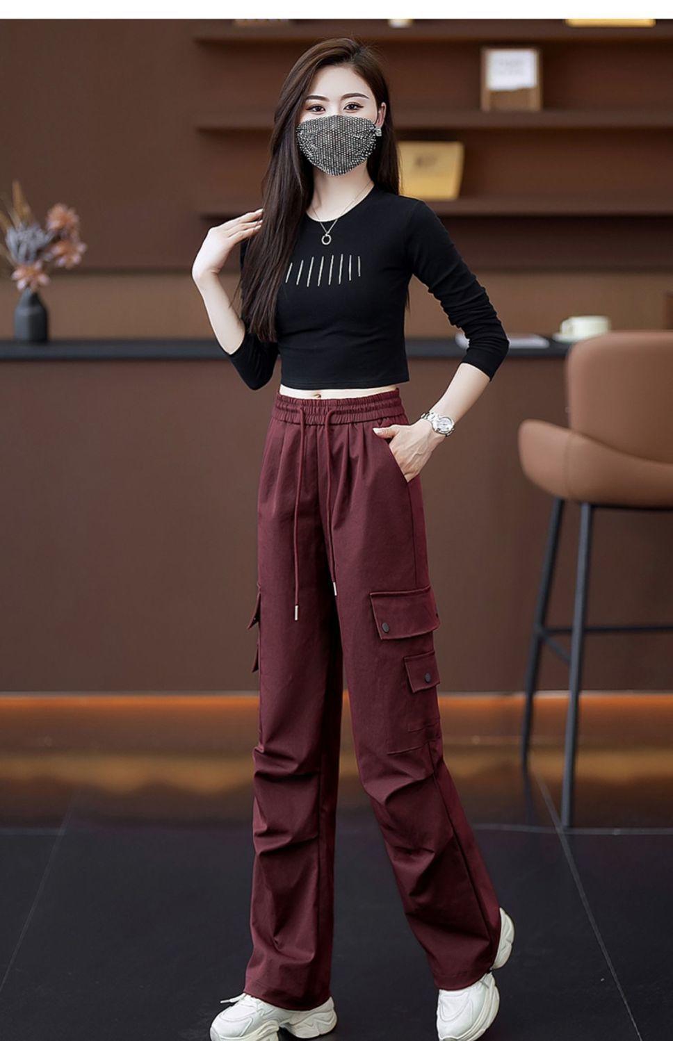 Pantalones de Trabajo Americanos Mujer Primavera Otoño 2025 Nuevo Cintura Alta Adelgazantes Drapeados Pierna Ancha Bolsillos Grandes Pantalones Casuales Deportivos