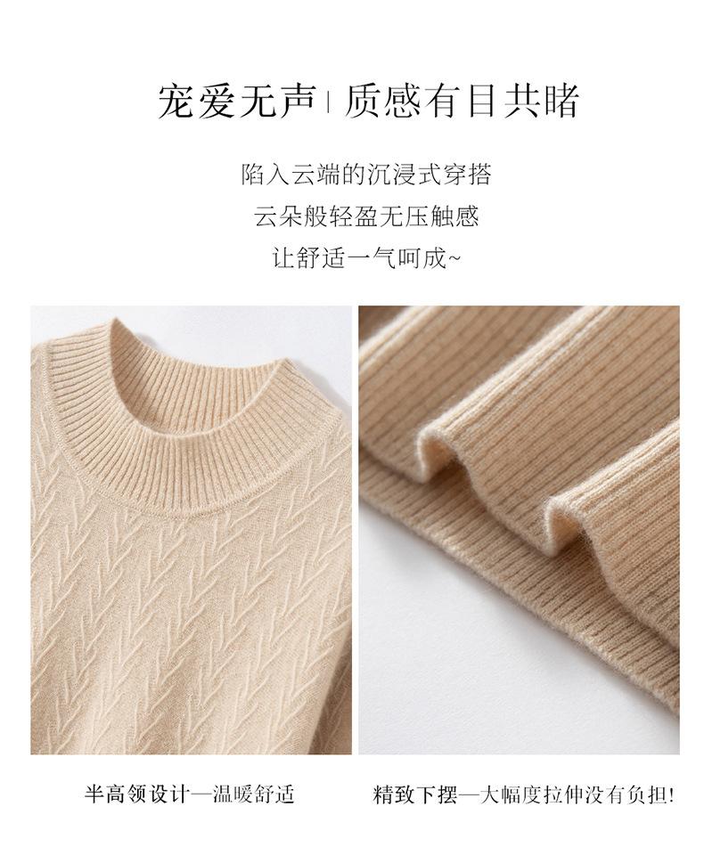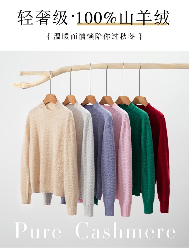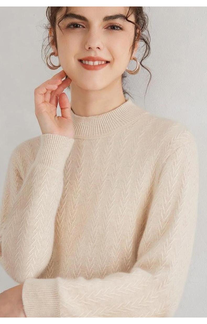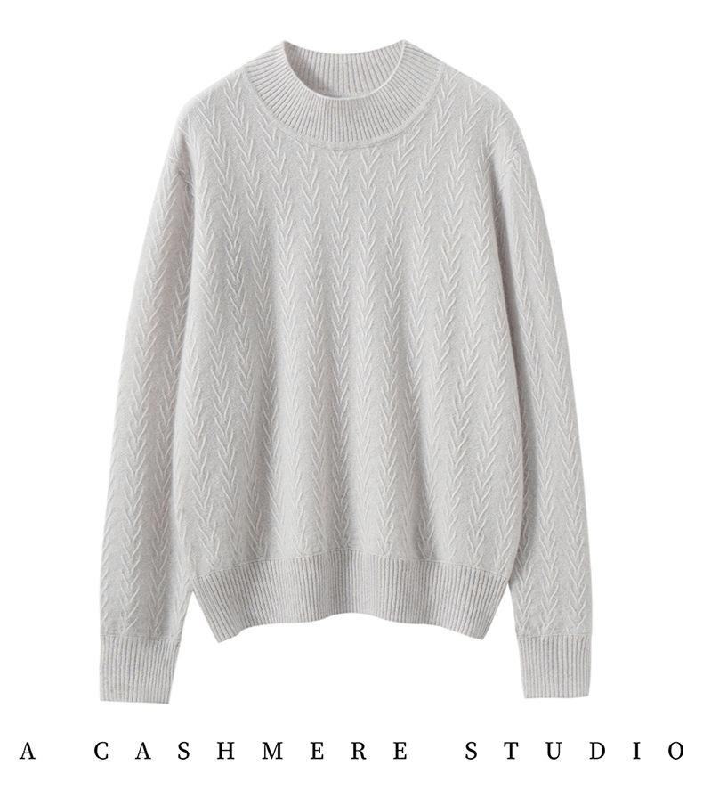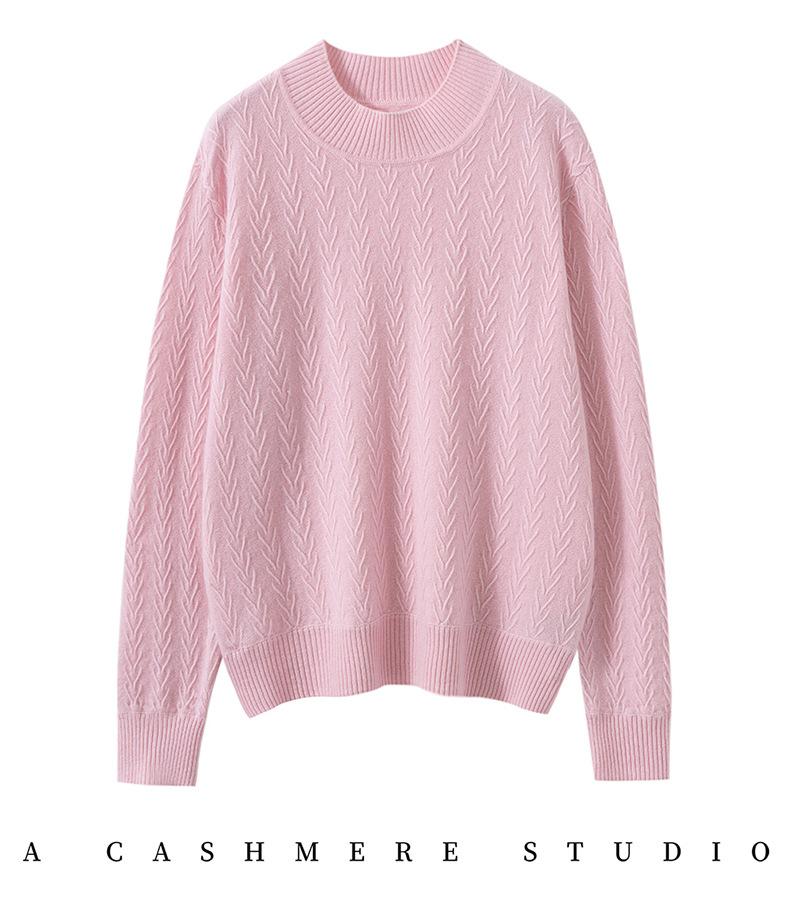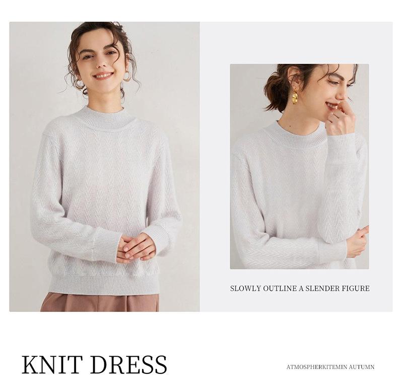 Suéter de Cachemira Mujer 100% Cachemira Pura Otoño e Invierno Nuevo Casual Versátil Suelto Cuello Medio Alto Manga Larga Suéter Tejido
