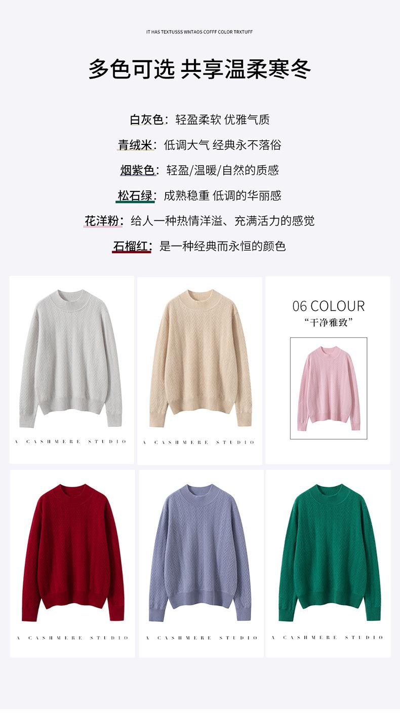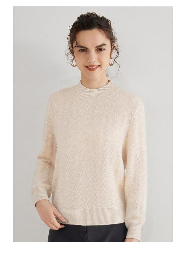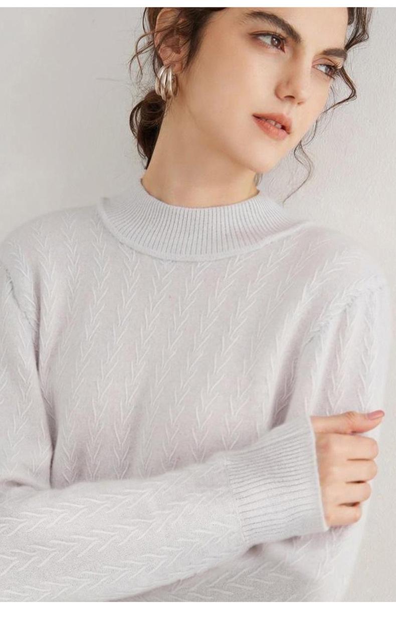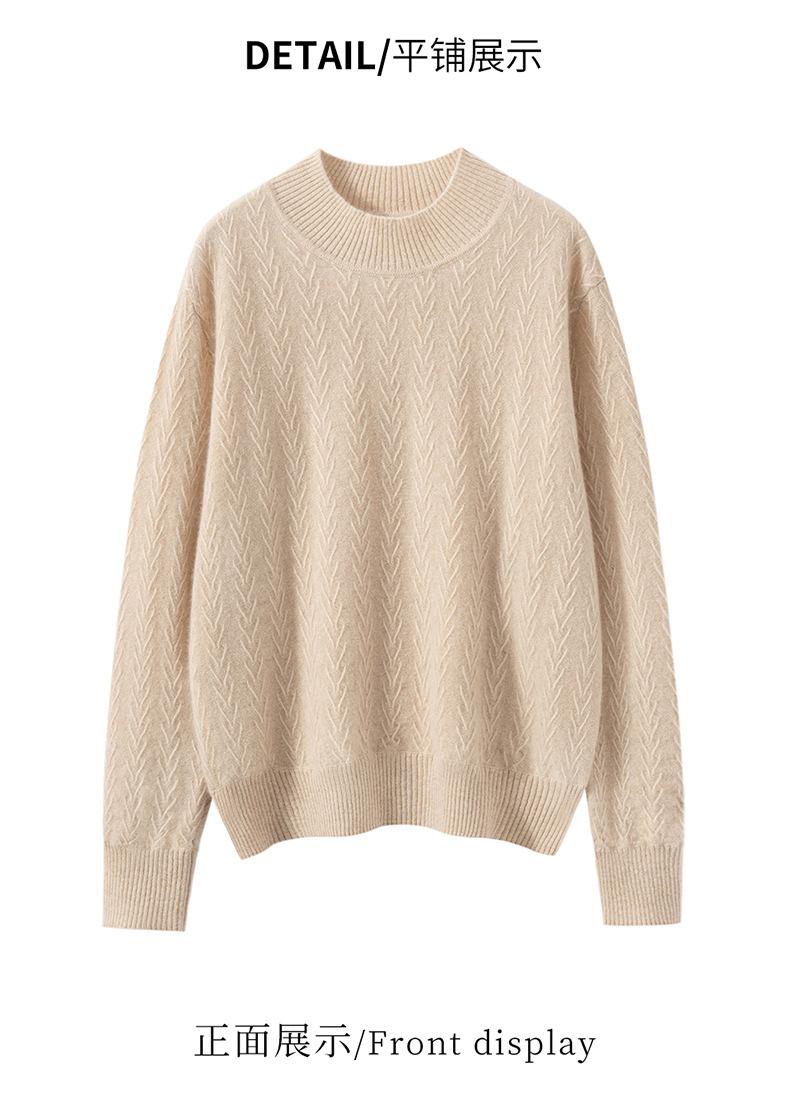 Suéter de Cachemira Mujer 100% Cachemira Pura Otoño e Invierno Nuevo Casual Versátil Suelto Cuello Medio Alto Manga Larga Suéter Tejido