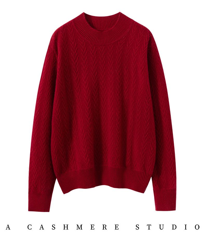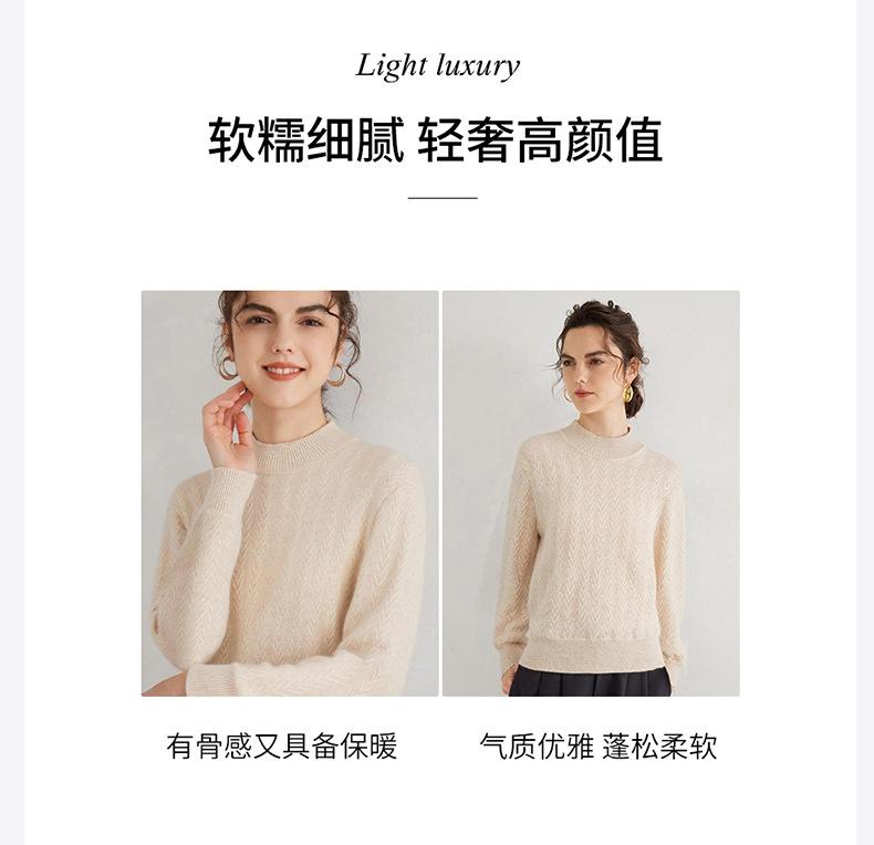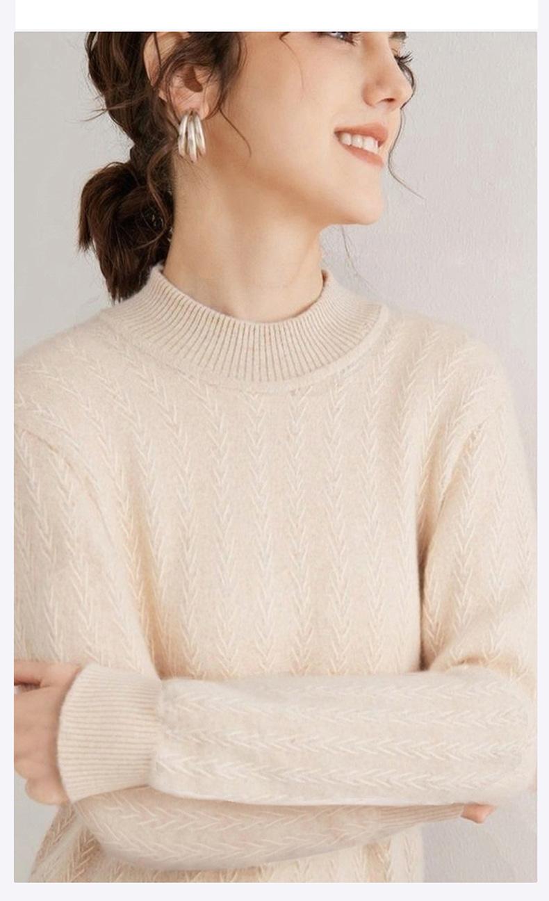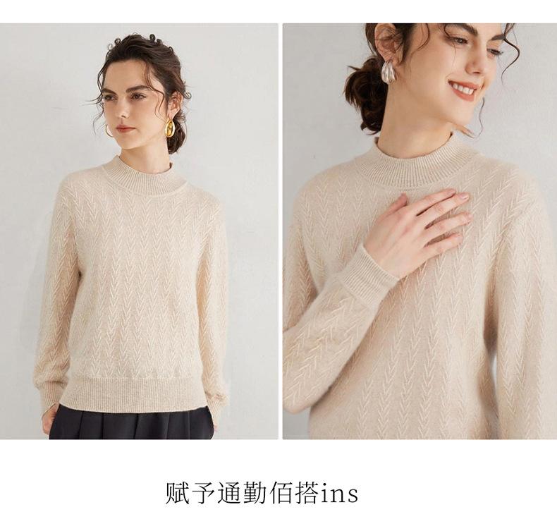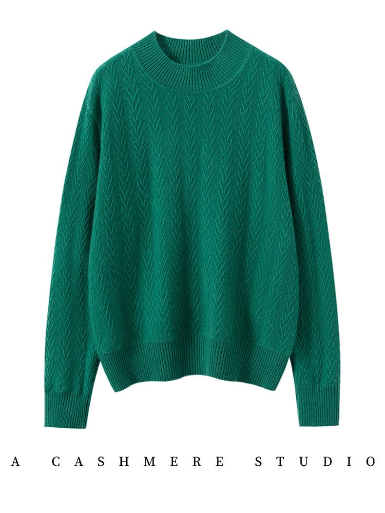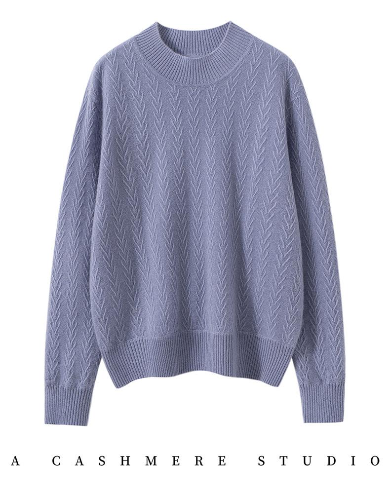 Suéter de Cachemira Mujer 100% Cachemira Pura Otoño e Invierno Nuevo Casual Versátil Suelto Cuello Medio Alto Manga Larga Suéter Tejido