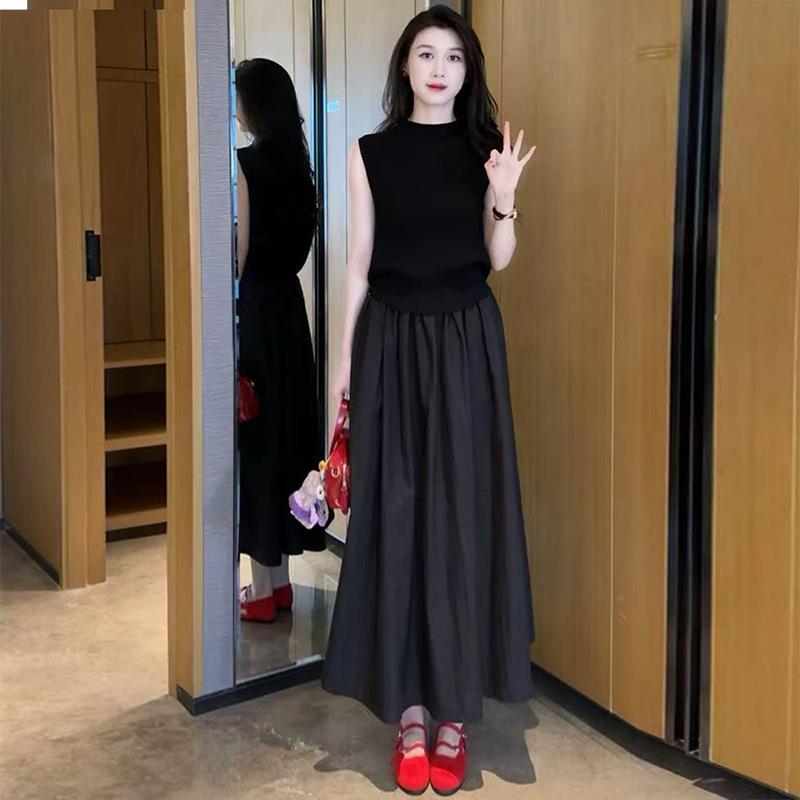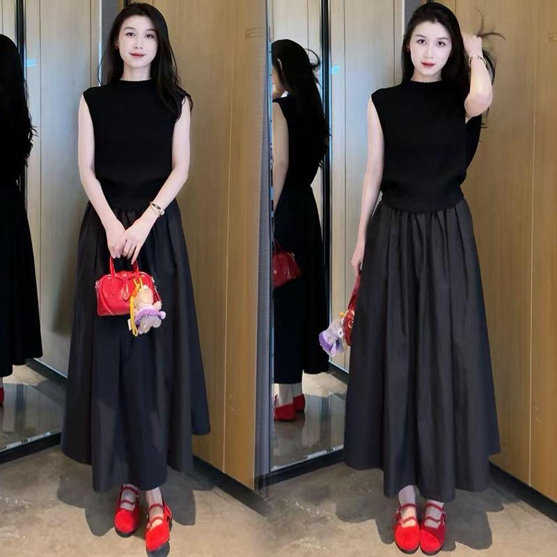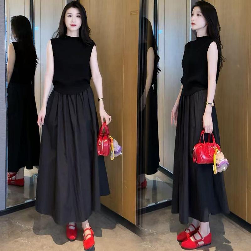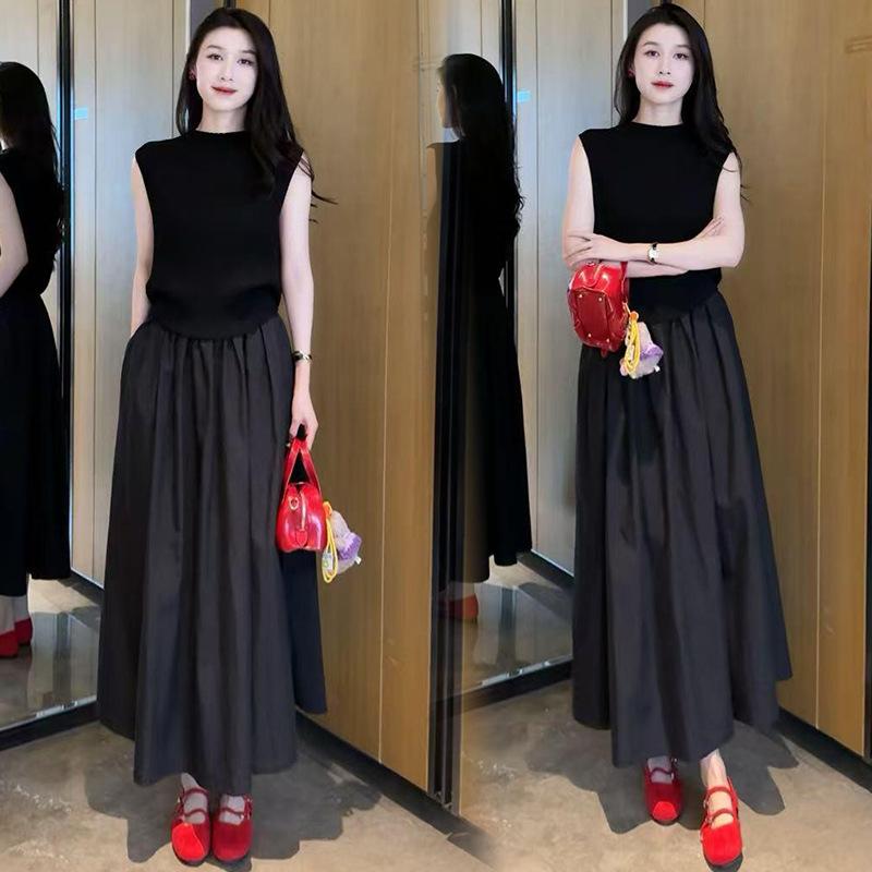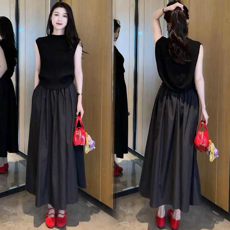 Vestido de Moda para Mujer 2025 Verano Nuevo Estilo Trendy Reductor de Edad Adelgazante Sin Mangas Chaleco de Punto Falda Conjunto de Dos Piezas