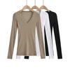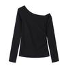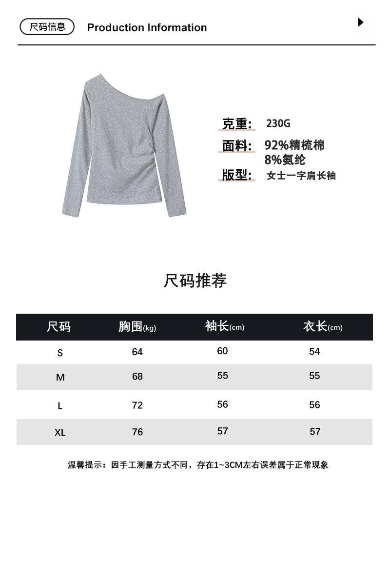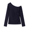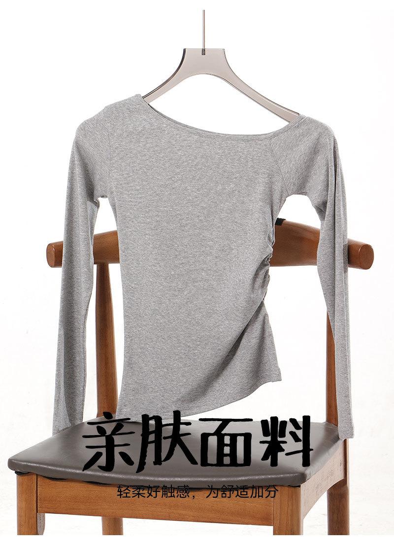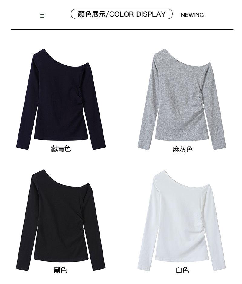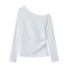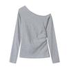Ropa nueva de otoño e invierno para mujer, camiseta de manga larga ajustada con fruncido lateral de un hombro, color sólido, top básico para chica hot con hombros descubiertos, camiseta de mujer