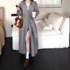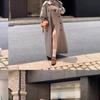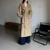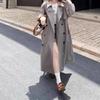 Otoño 2025 Abrigo Largo Holgado Francés Socialité Doble Botonadura Rayado Sentido Temperamento Solapa Gabardina Ropa Exterior Ropa de Mujer