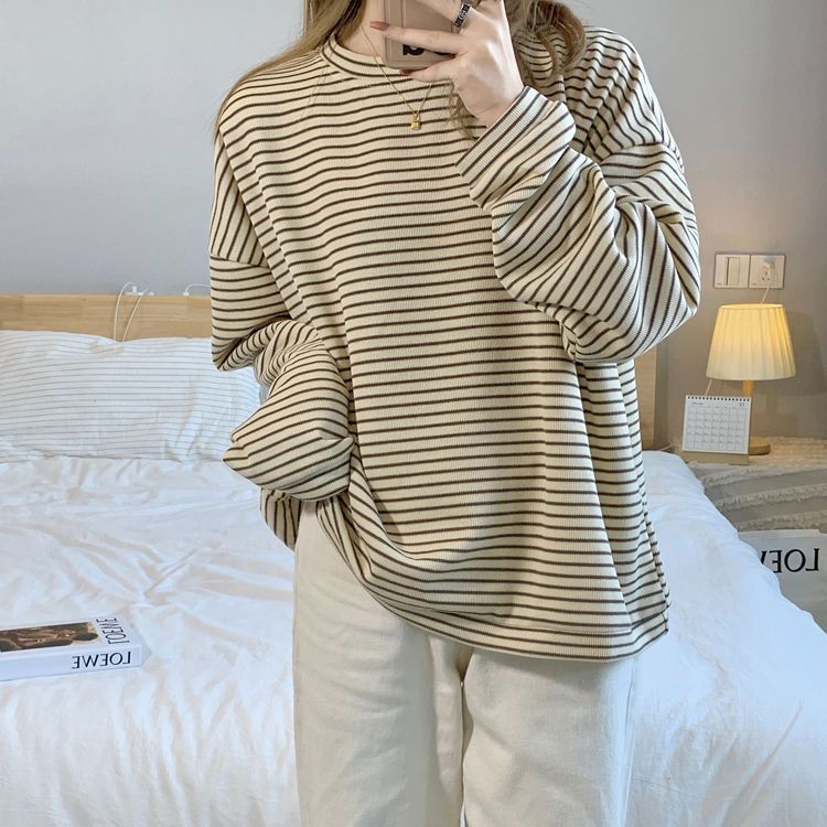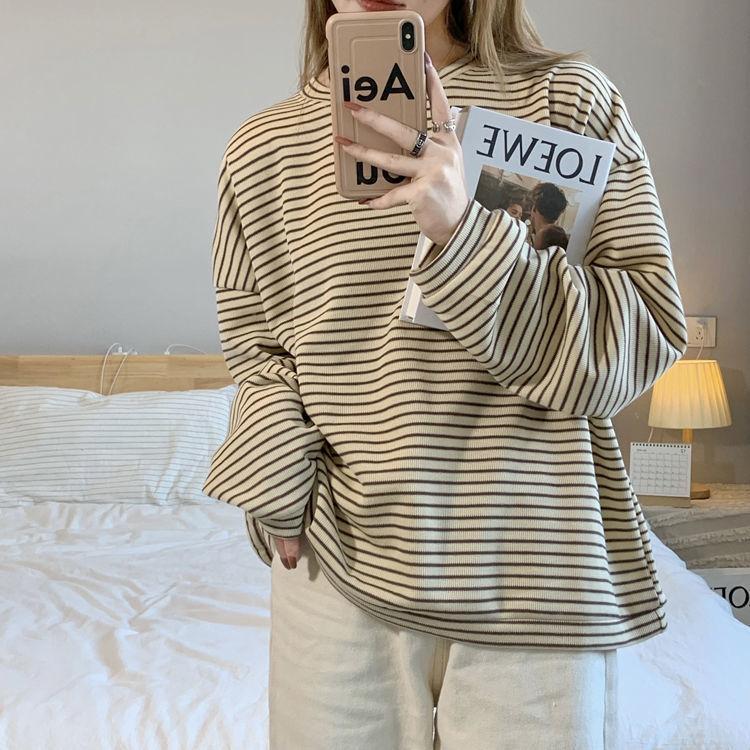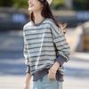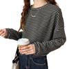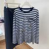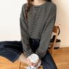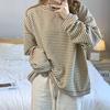 Top 2025 Minimalista Perezoso para Mujer de Cuello Redondo a Rayas Retro Nuevo Otoño Invierno Estilo que Reduce la Edad Sudadera Jersey Versátil Holgada