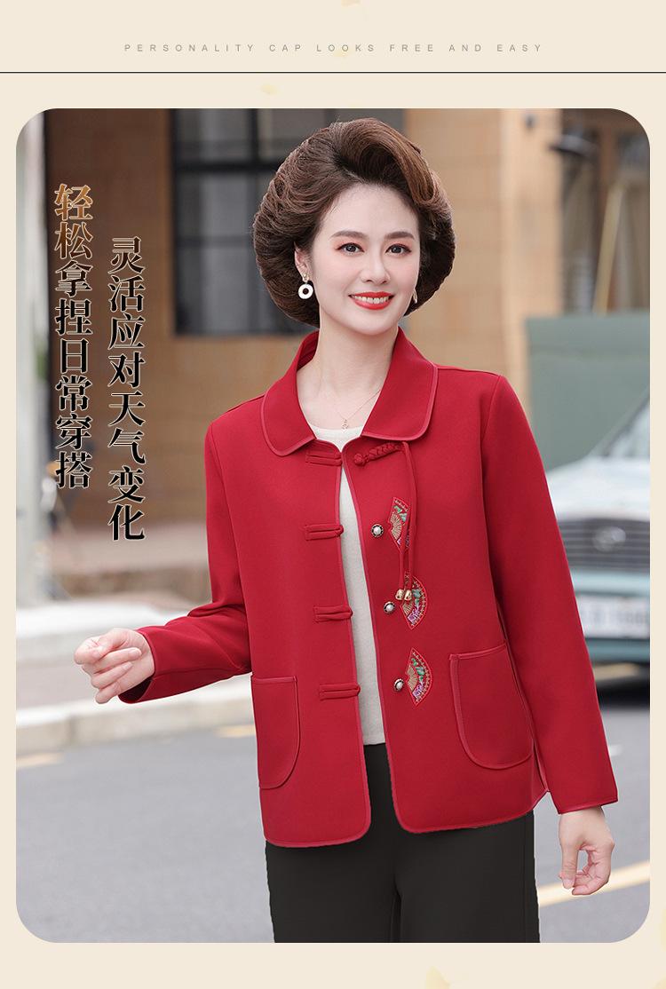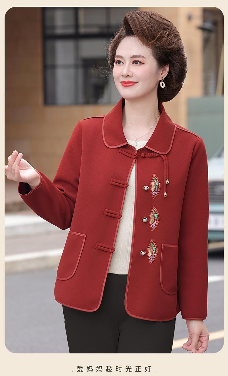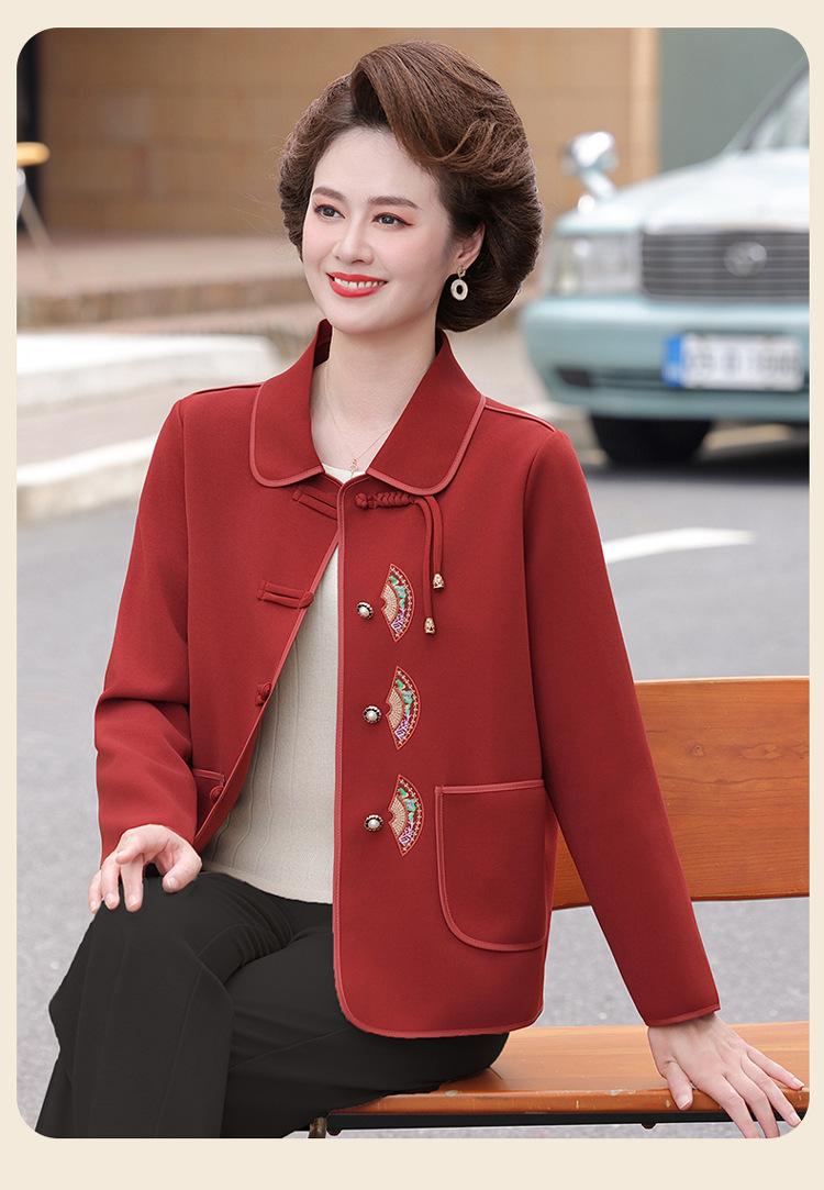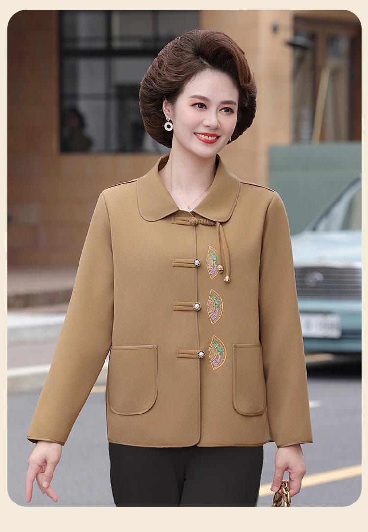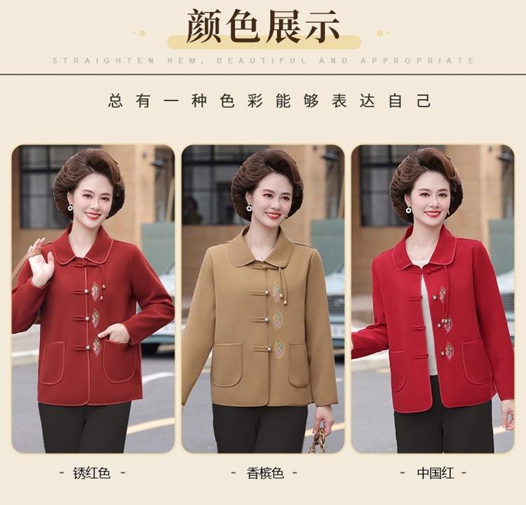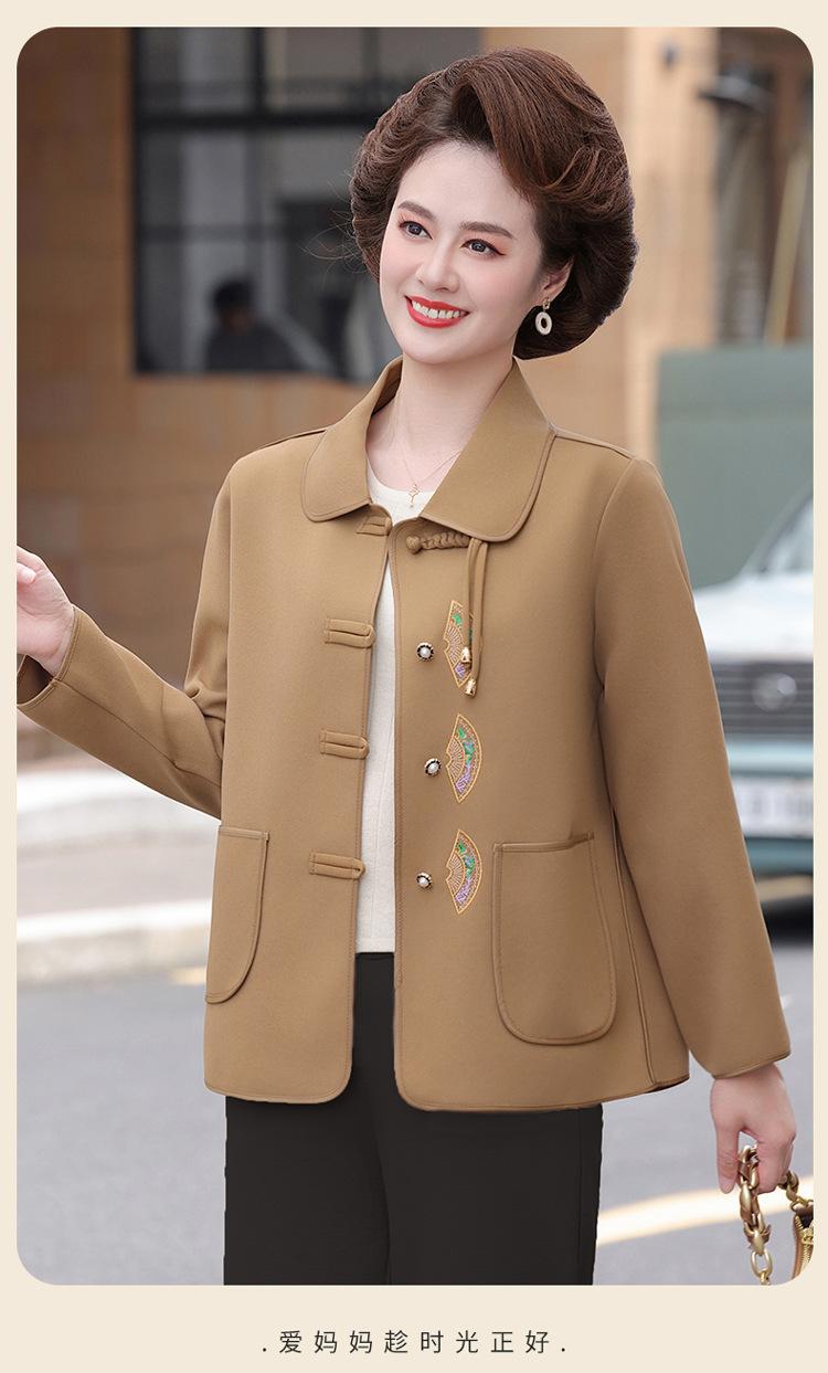 Moda para mamá de mediana edad chaqueta corta estilo chino 2025 nueva tendencia ropa para mujeres de mediana edad y mayores primavera y otoño top bordado