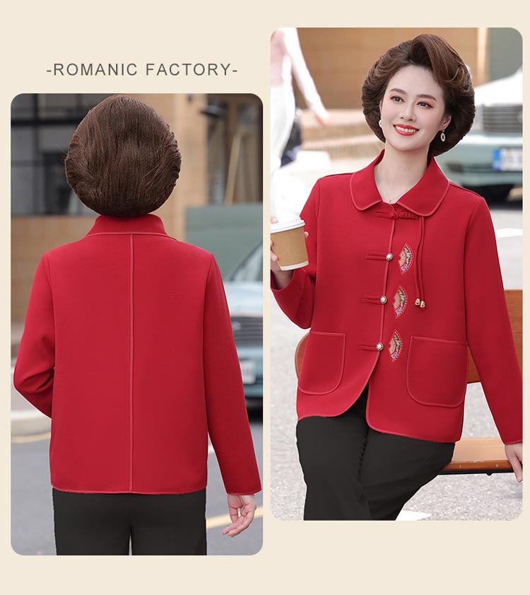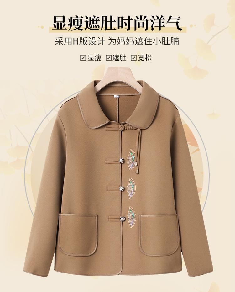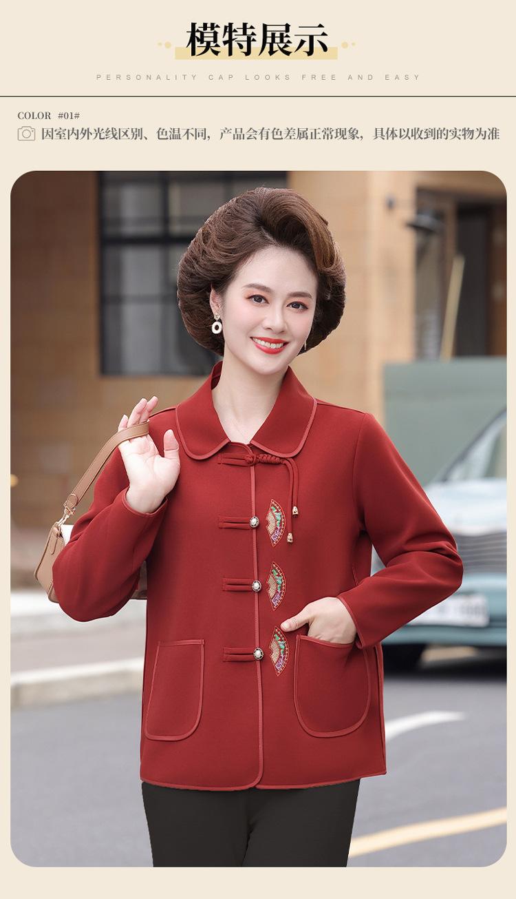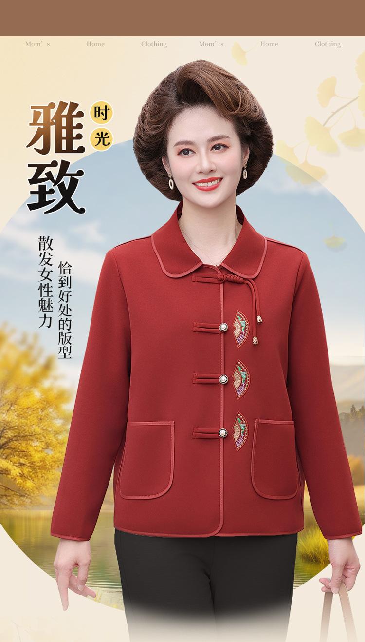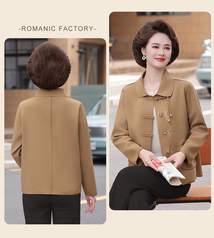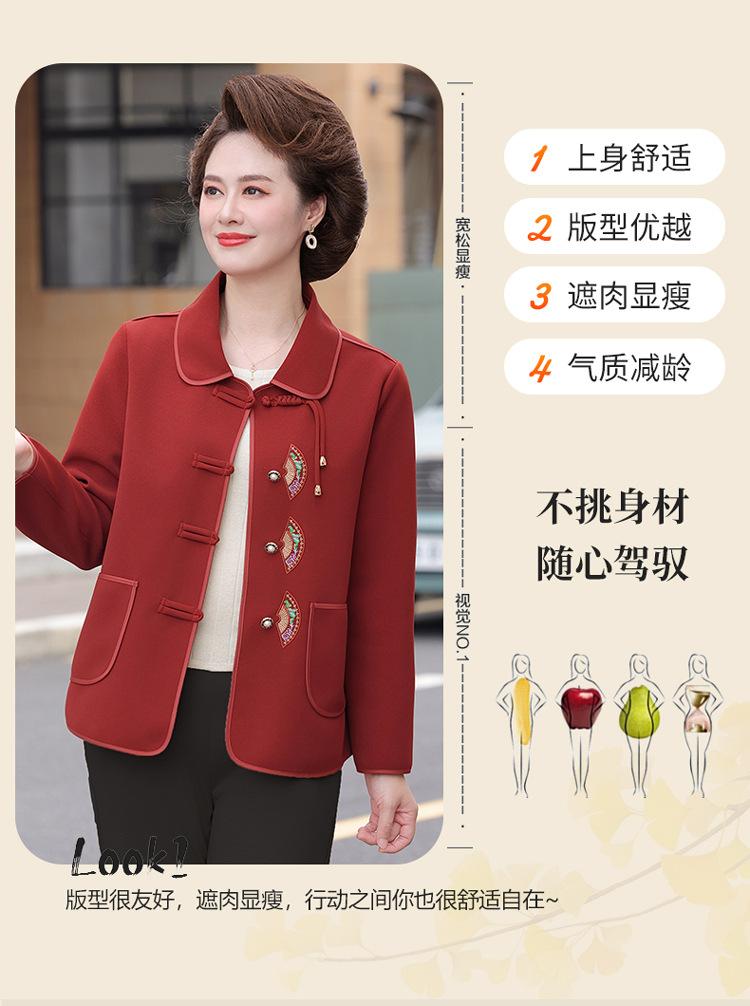 Moda para mamá de mediana edad chaqueta corta estilo chino 2025 nueva tendencia ropa para mujeres de mediana edad y mayores primavera y otoño top bordado