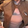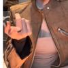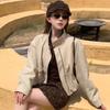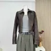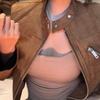 Chaqueta Biker Casual con Temperamento Otoñal Top Abrigo Corto de Gamuza Marrón Retro Americano Mujer