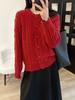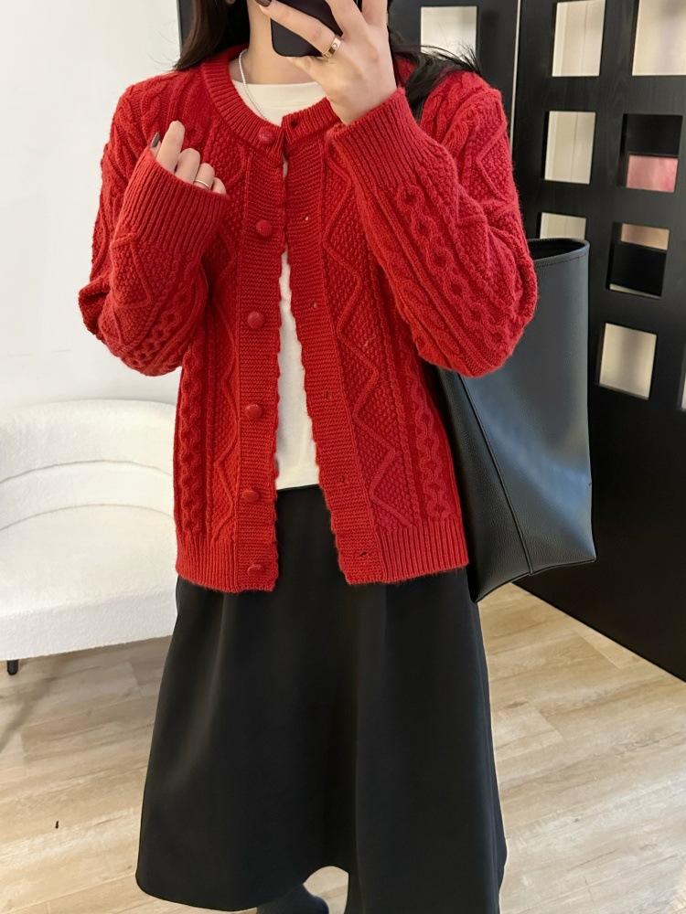 Otoño Mujeres Damas Rojo Cárdigan Abrigo Suéter Tejido Mujeres 2025 Nuevo Rojo de Red Estilo Caliente Prendas de Punto Principios de Otoño
