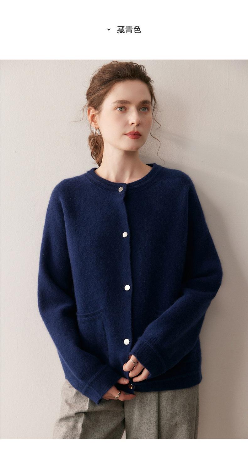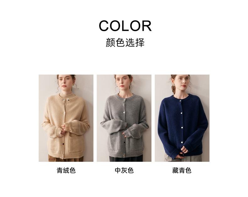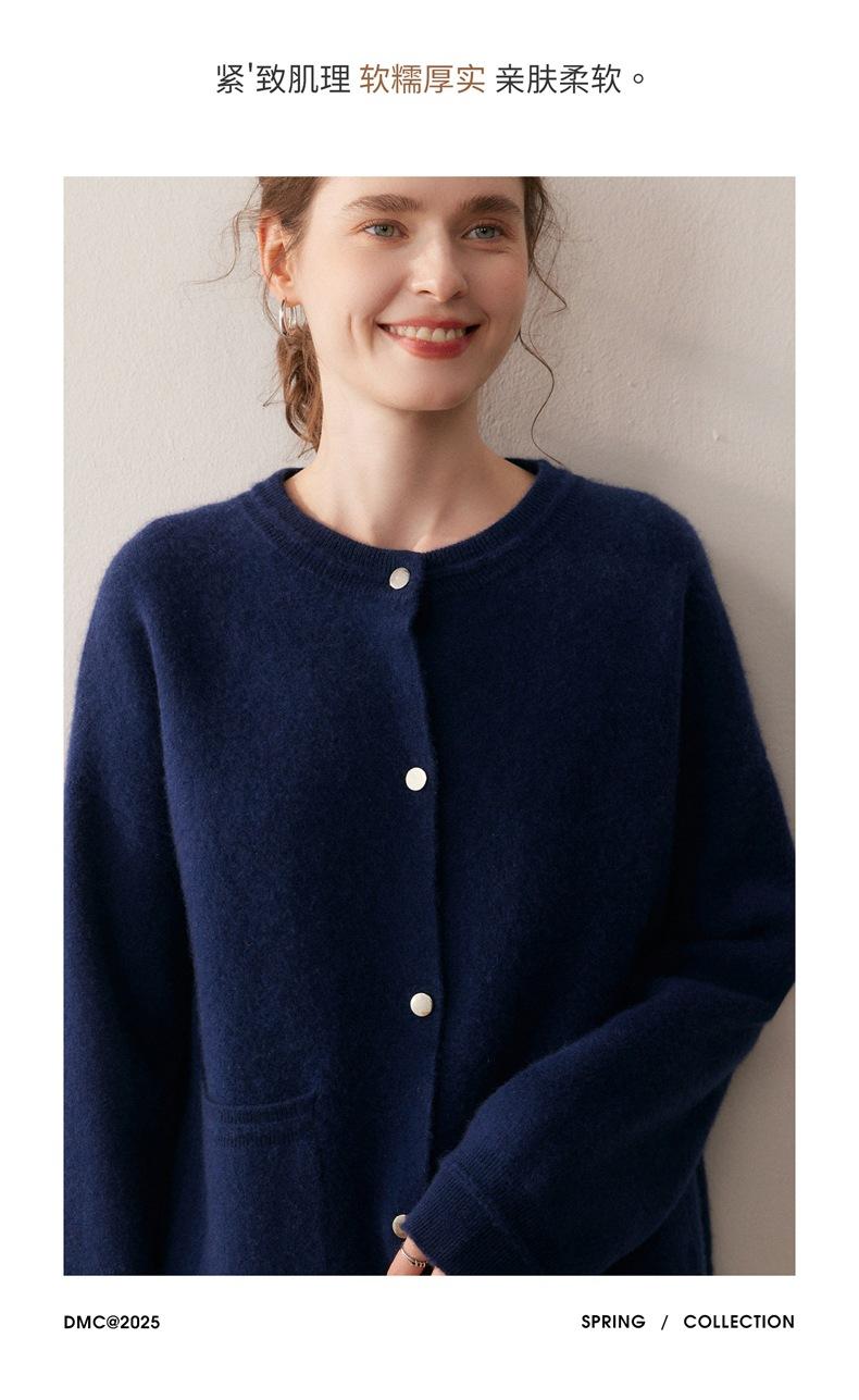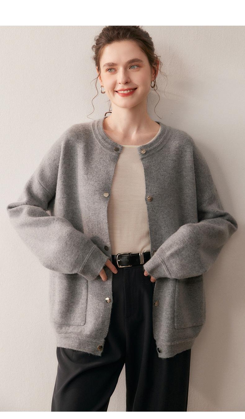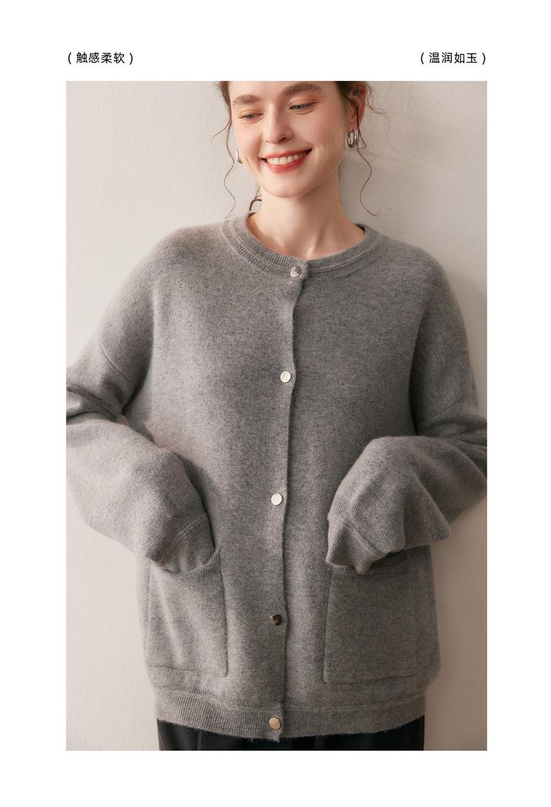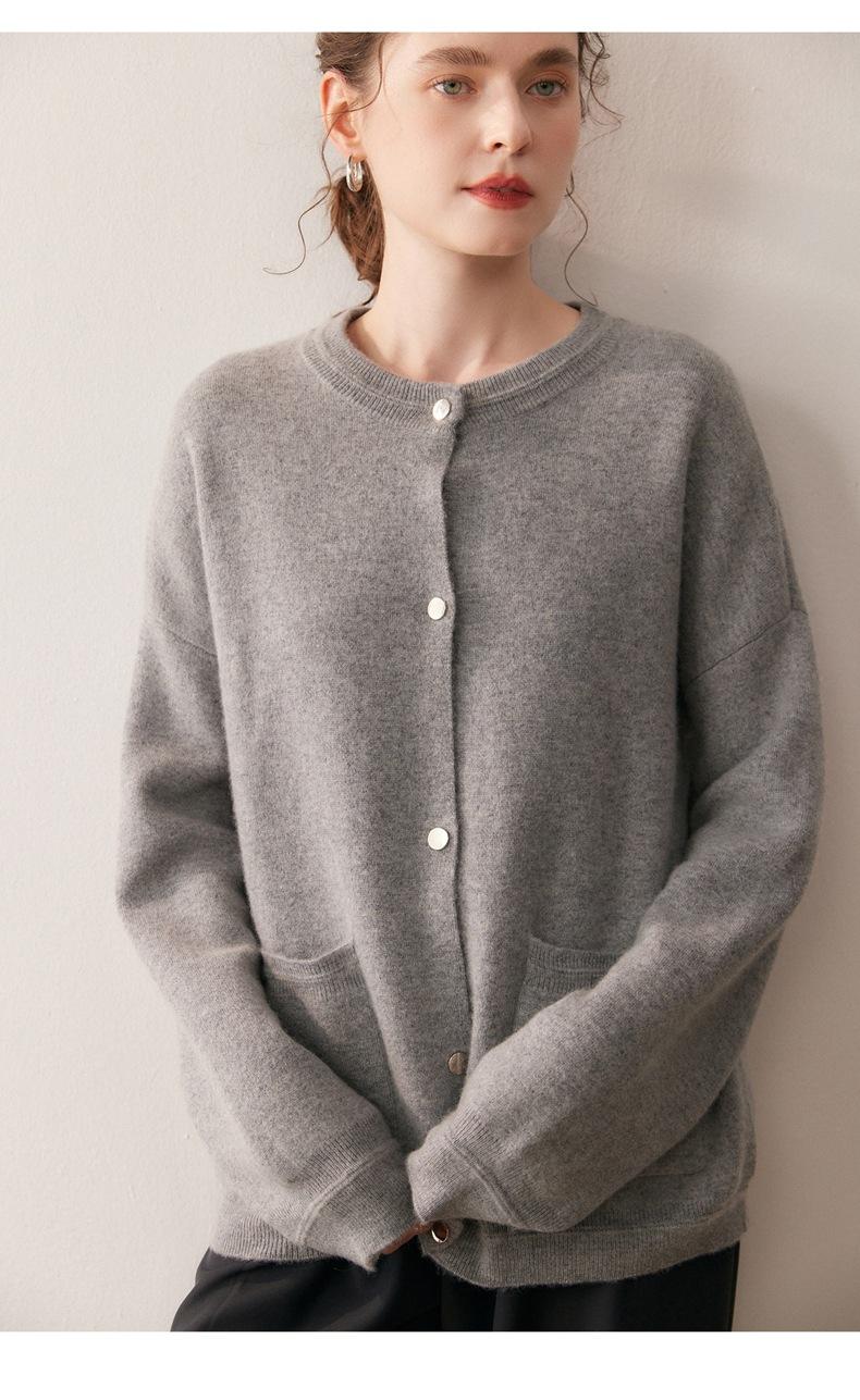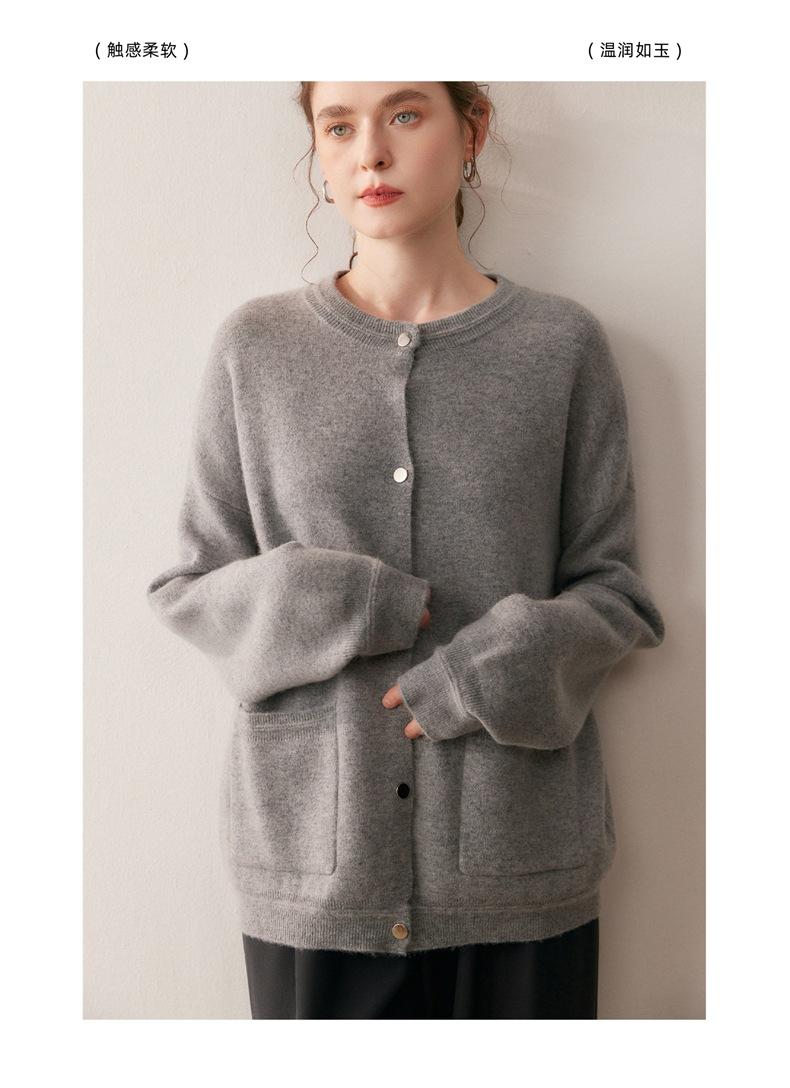 Otoño e Invierno Cachemira Casual Holgado Versátil Sencillo Temperamento Color Sólido Cuello Redondo Cárdigan de Punto Suéter de Lana Abrigo