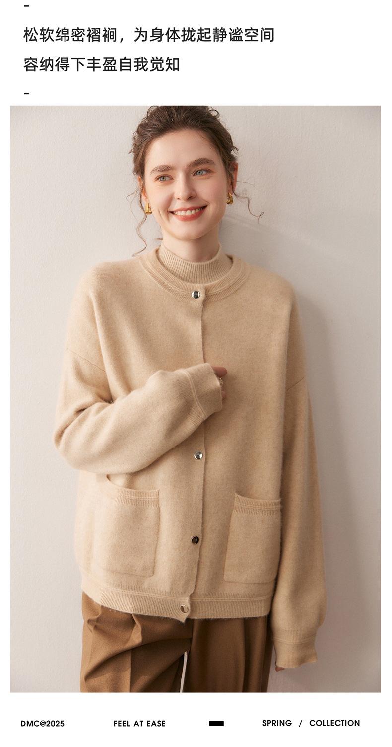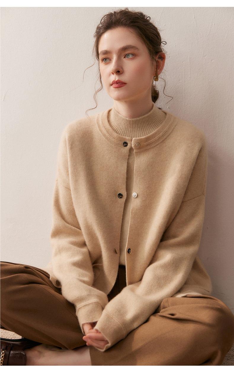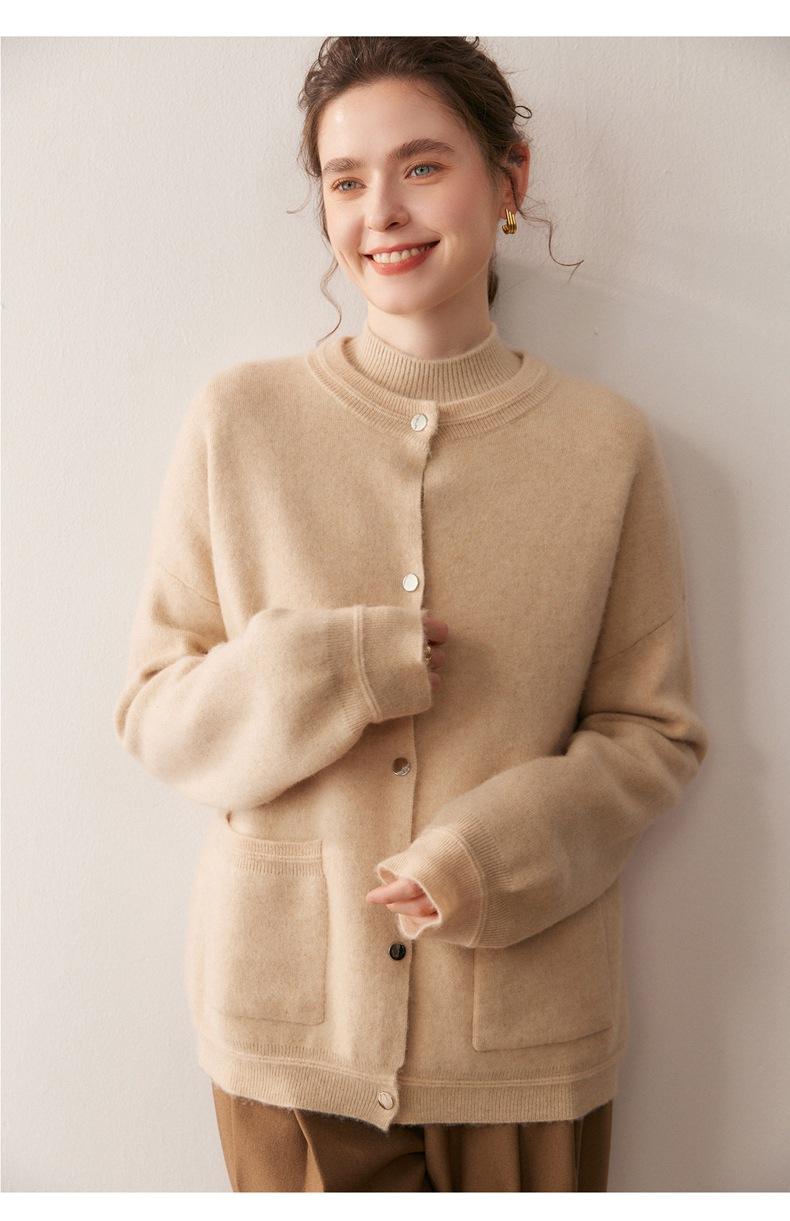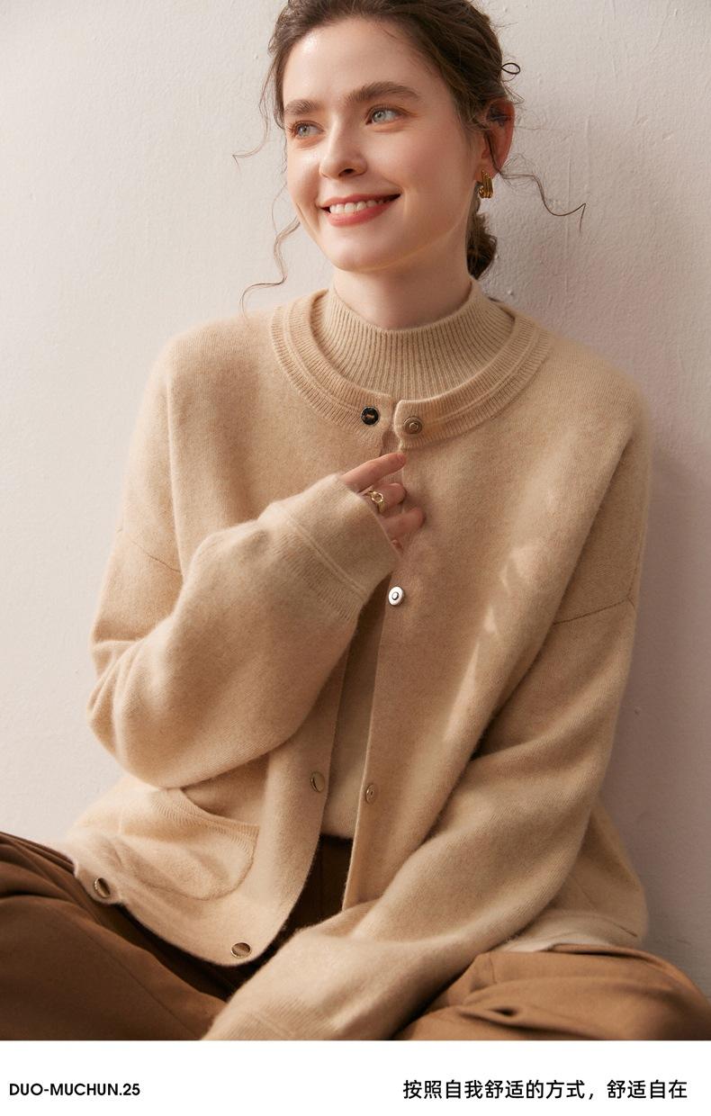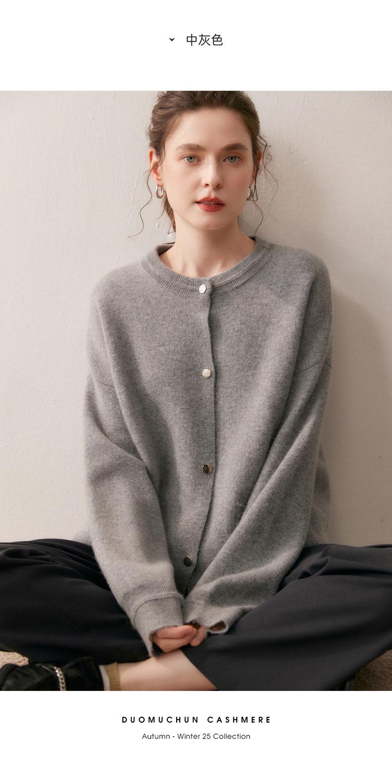 Otoño e Invierno Cachemira Casual Holgado Versátil Sencillo Temperamento Color Sólido Cuello Redondo Cárdigan de Punto Suéter de Lana Abrigo