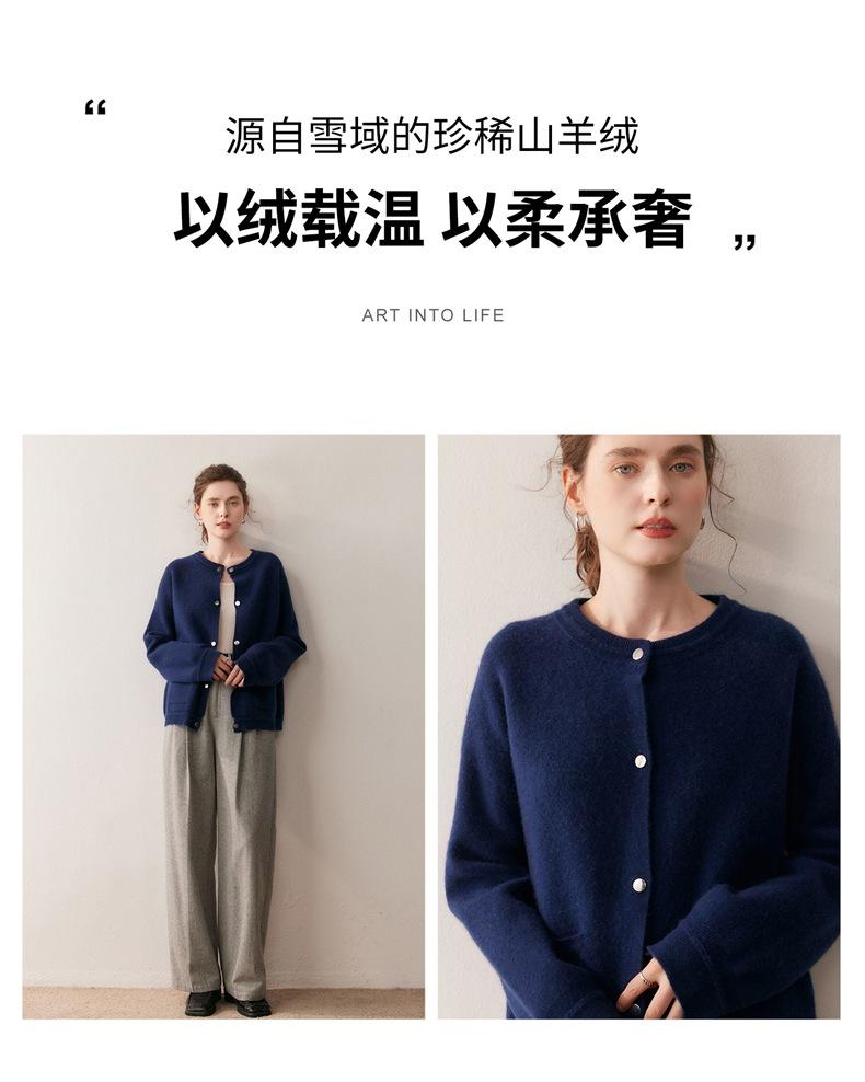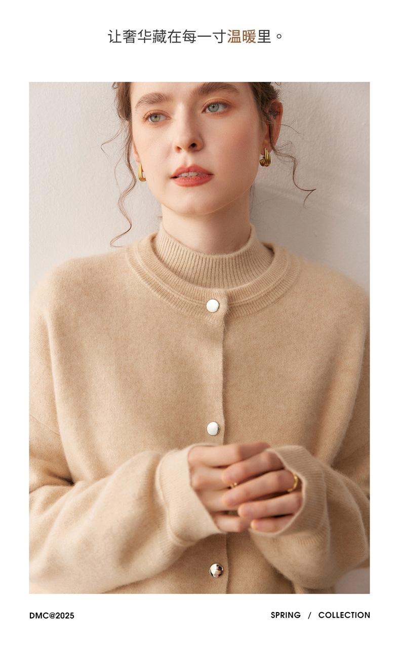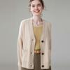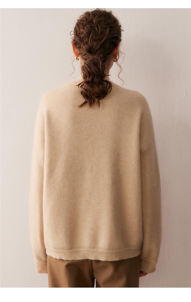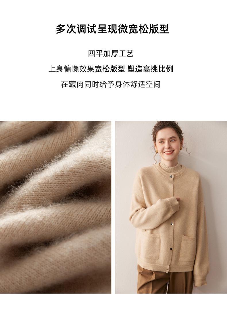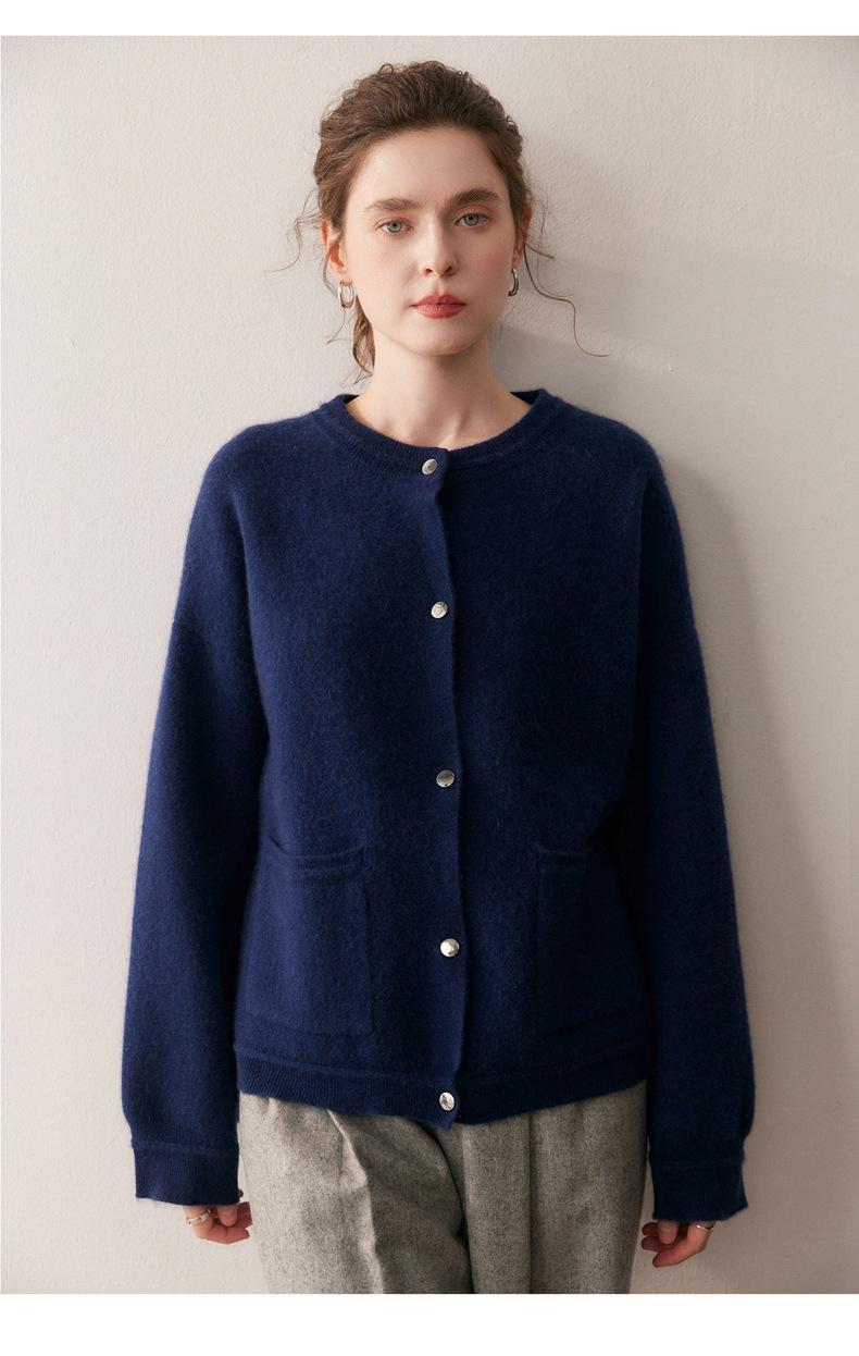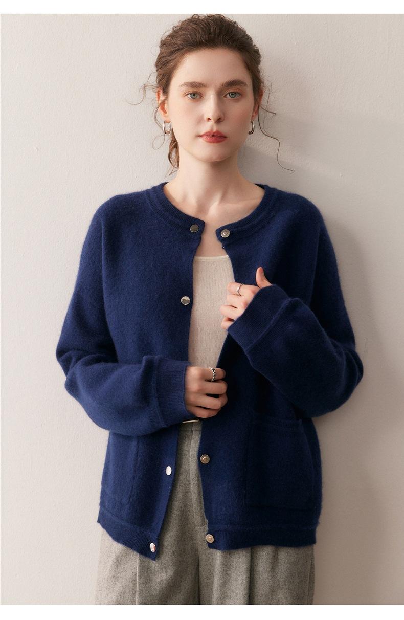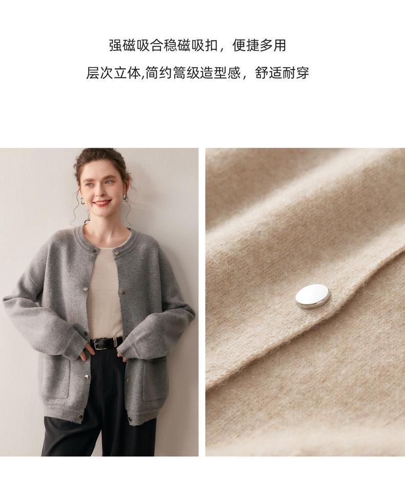 Otoño e Invierno Cachemira Casual Holgado Versátil Sencillo Temperamento Color Sólido Cuello Redondo Cárdigan de Punto Suéter de Lana Abrigo