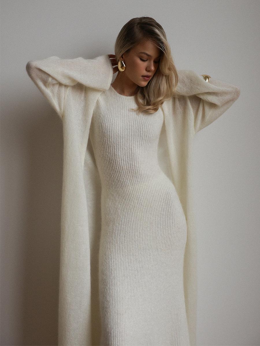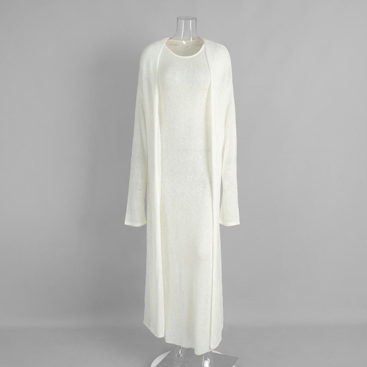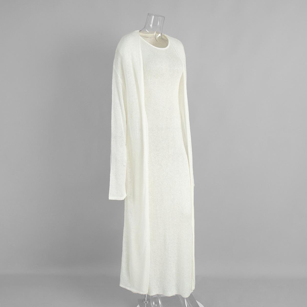Conjunto de Vestido Cárdigan de Comercio Exterior Transfronterizo para Mujer Europeo y Americano 2025 Otoño Cárdigan Tejido Vestido sin Mangas Conjunto de Dos Piezas Mujer