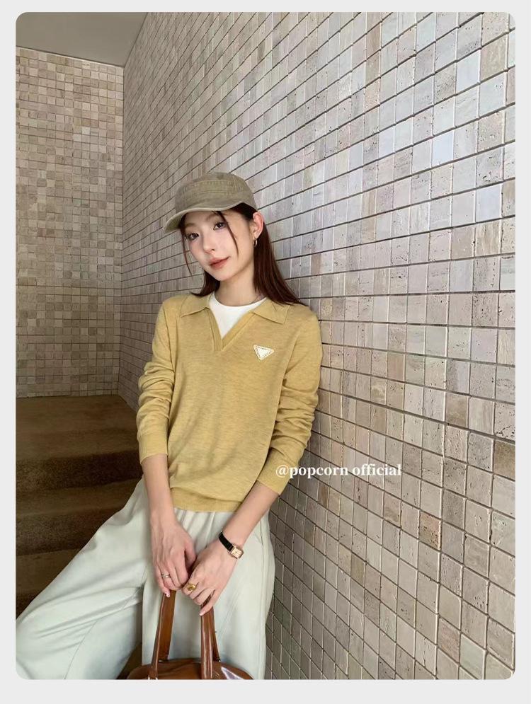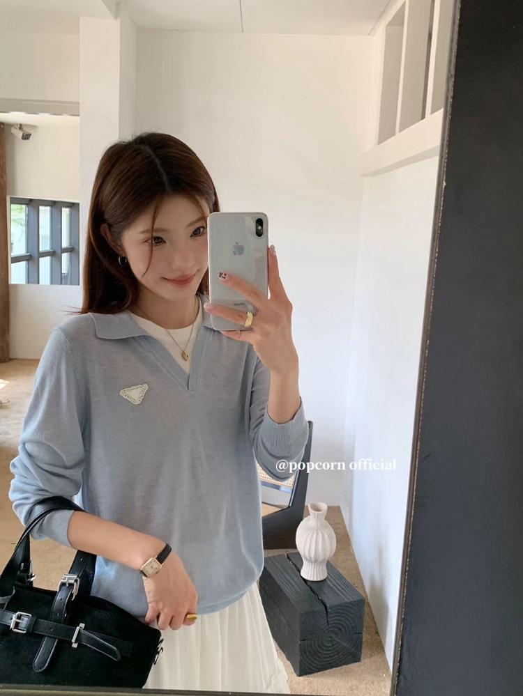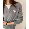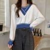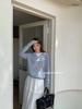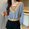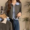 Otoño Nuevo Retro de Alta Gama Falso Dos Piezas Manga Larga Top Camiseta Versátil con Temperamento para Ir al Trabajo Tejido de Punto