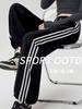 Pantalones a Rayas Negros Pantalones Deportivos Casuales para Mujer 2025 Nuevo Otoño Cintura Alta Adelgazantes Pantalones Deportivos Pierna Estrecha Pierna Ancha
