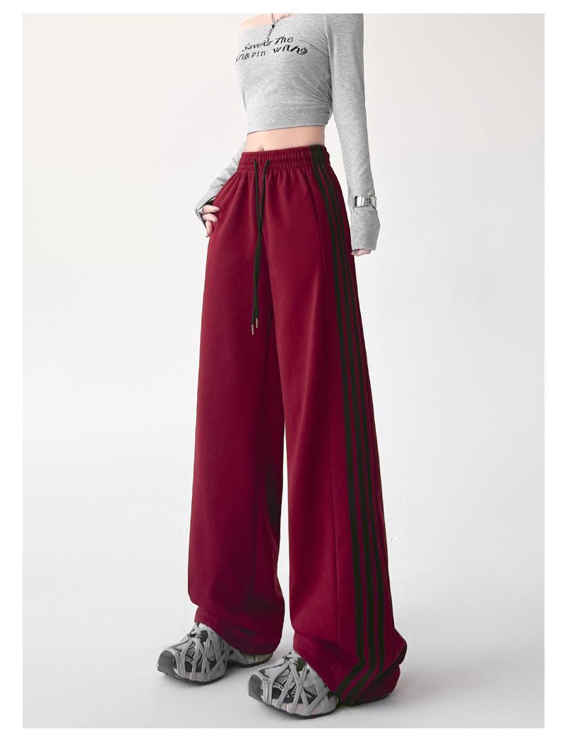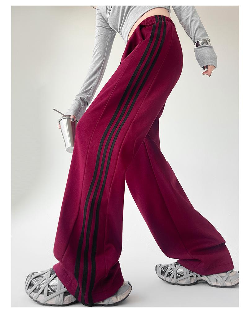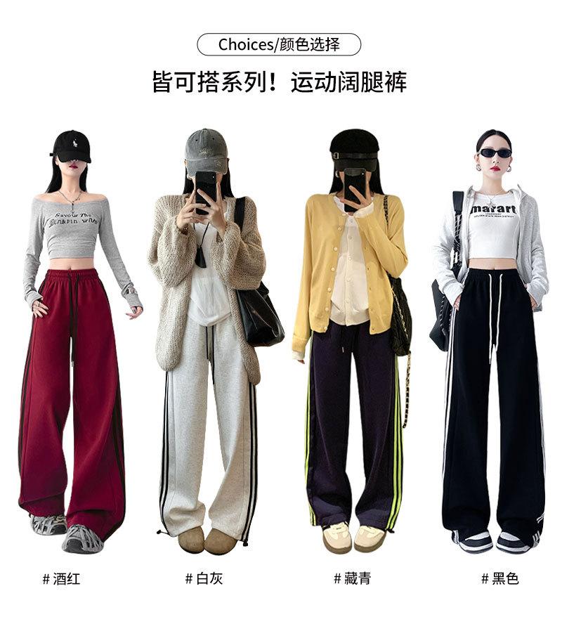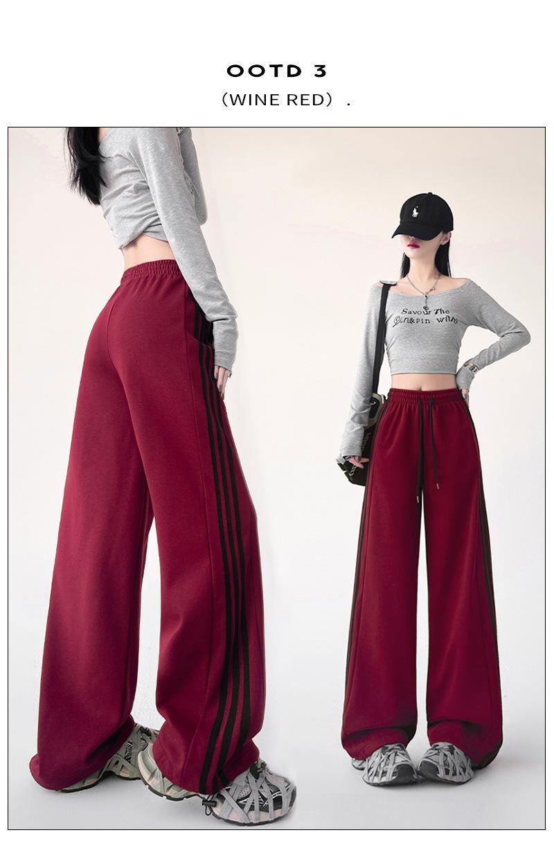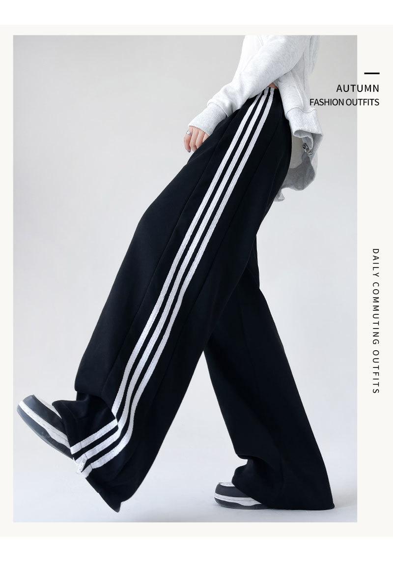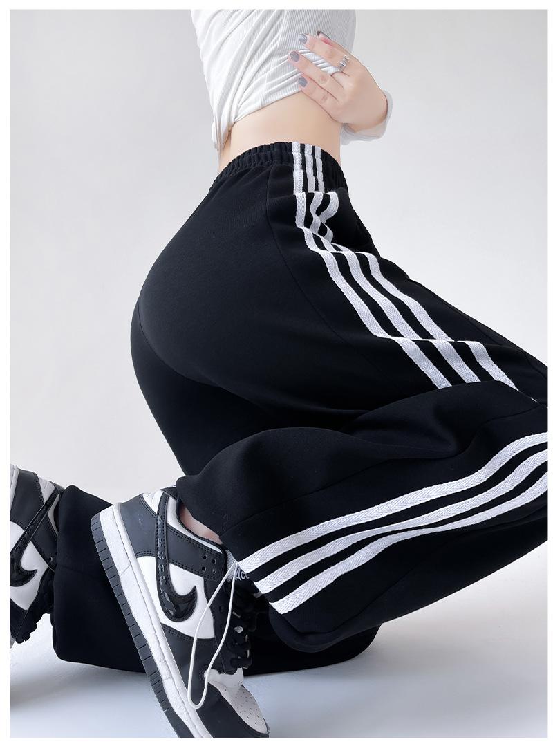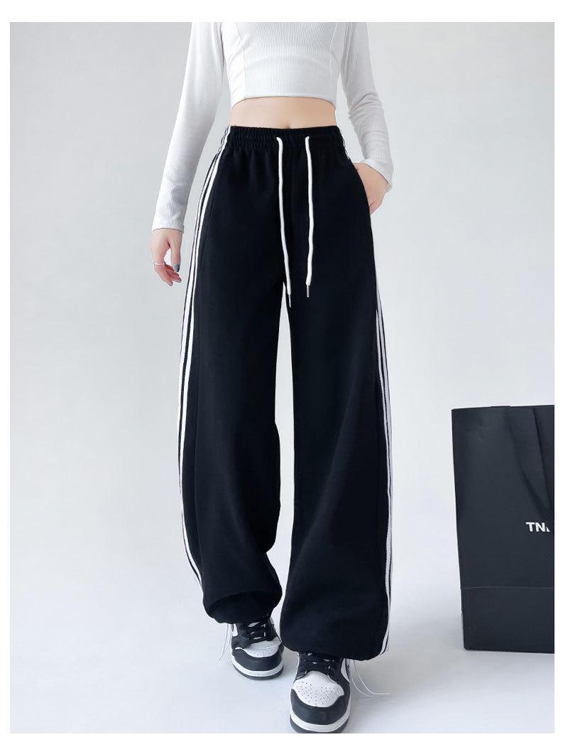 Pantalón de Chándal Americano con Raya Lateral para Mujer Primavera Otoño Relajado Cintura Alta Pierna Recta Pierna Ancha Suelto Casual Deportivo