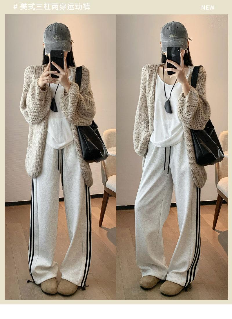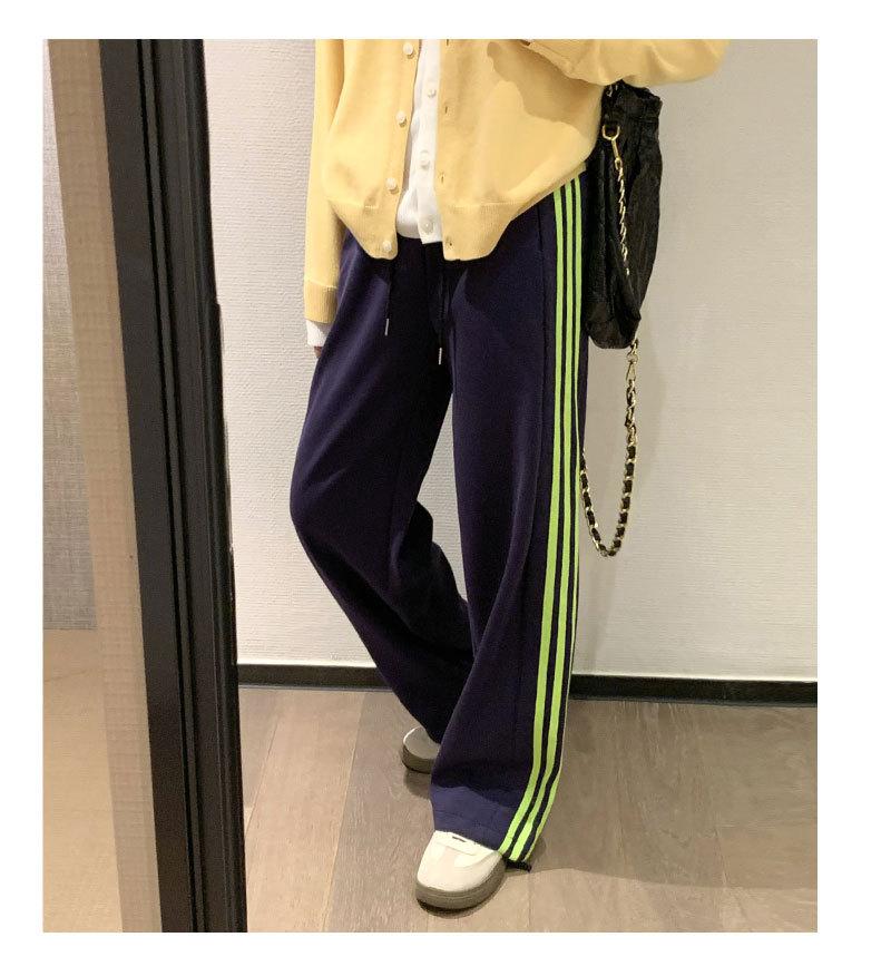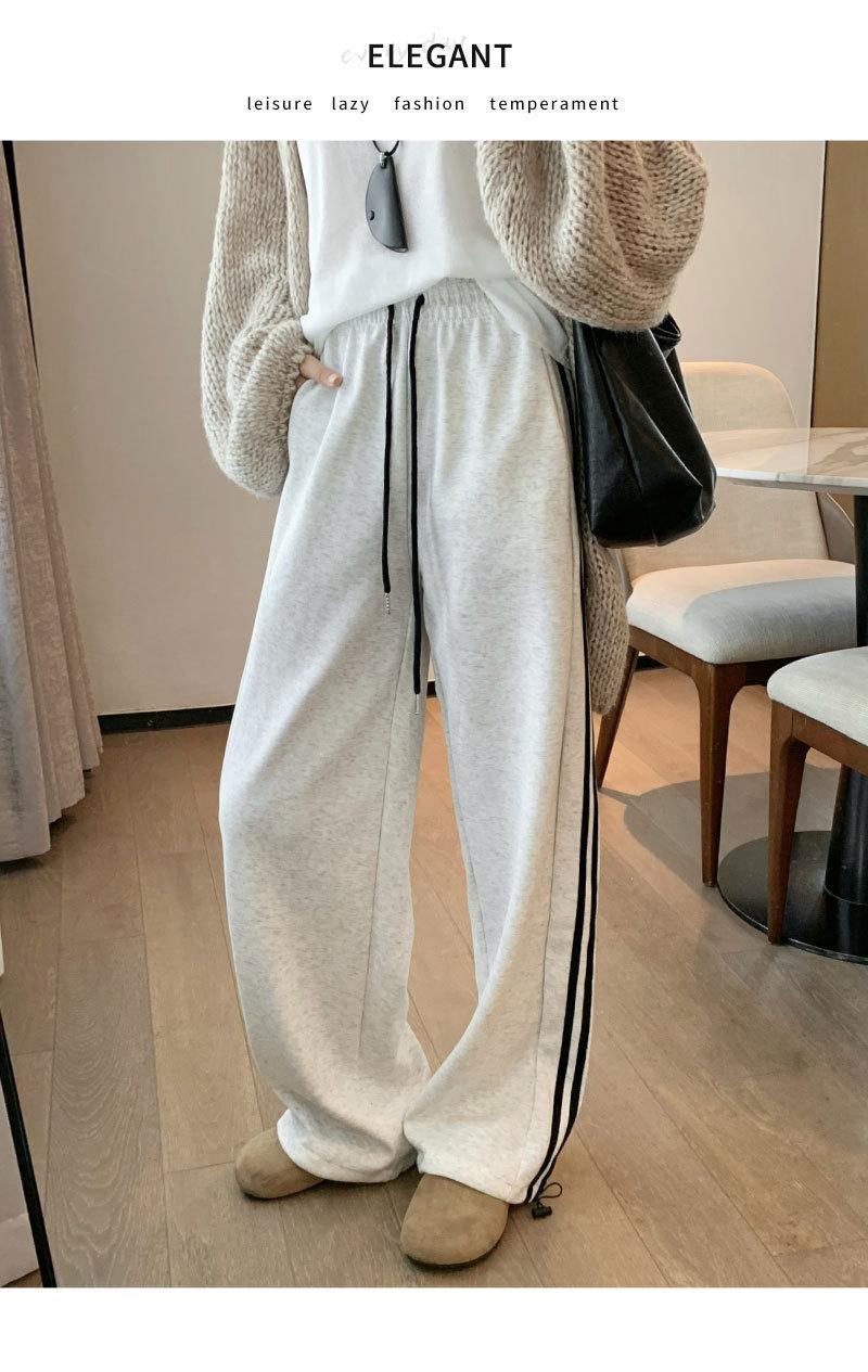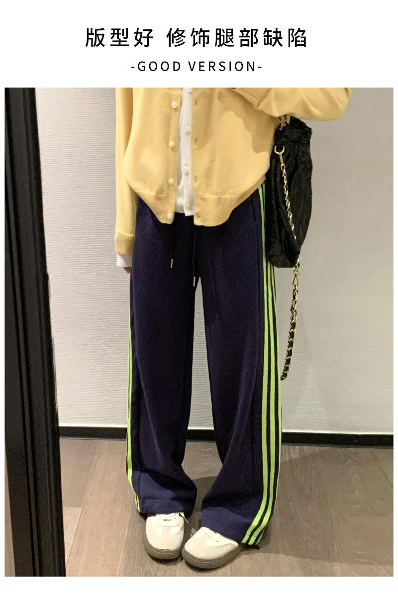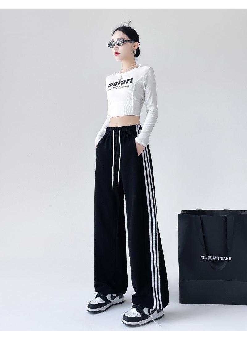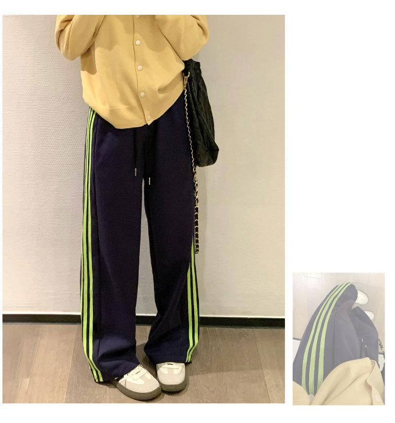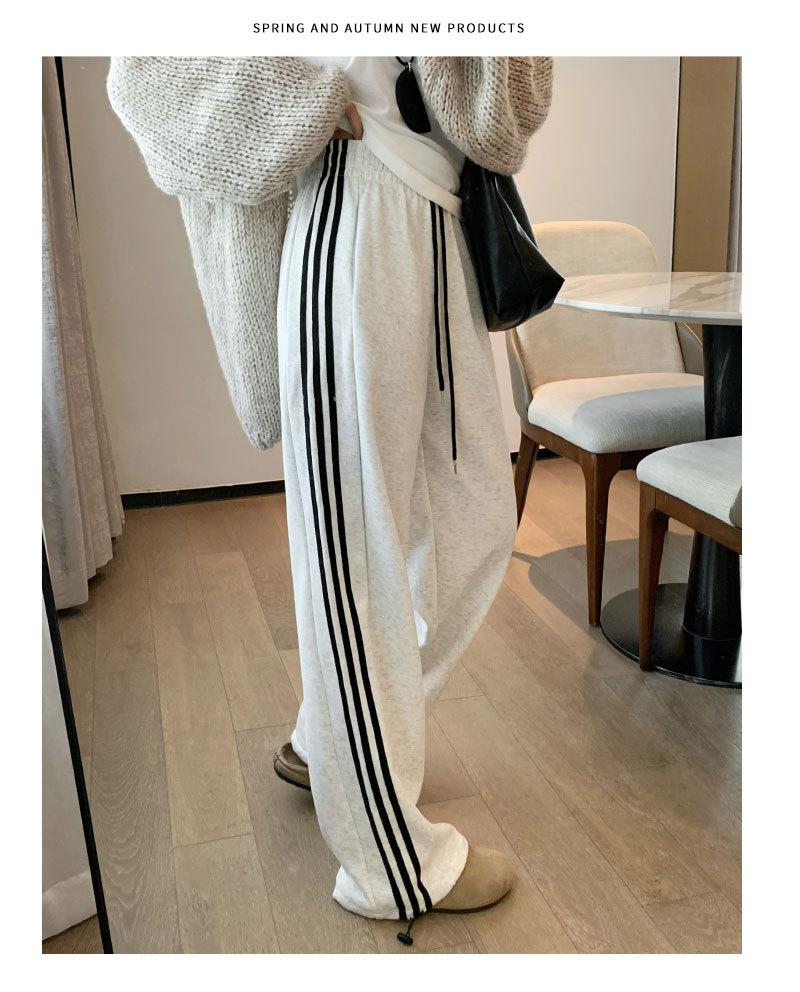 Pantalón de Chándal Americano con Raya Lateral para Mujer Primavera Otoño Relajado Cintura Alta Pierna Recta Pierna Ancha Suelto Casual Deportivo