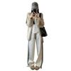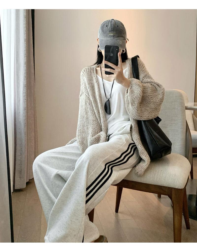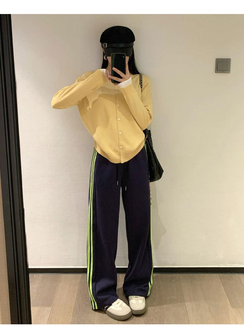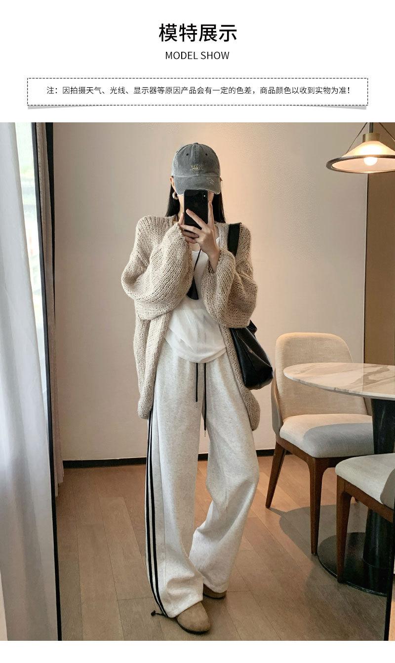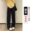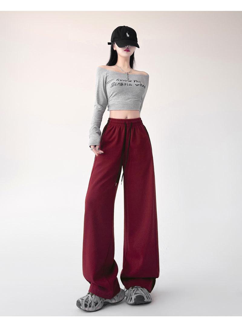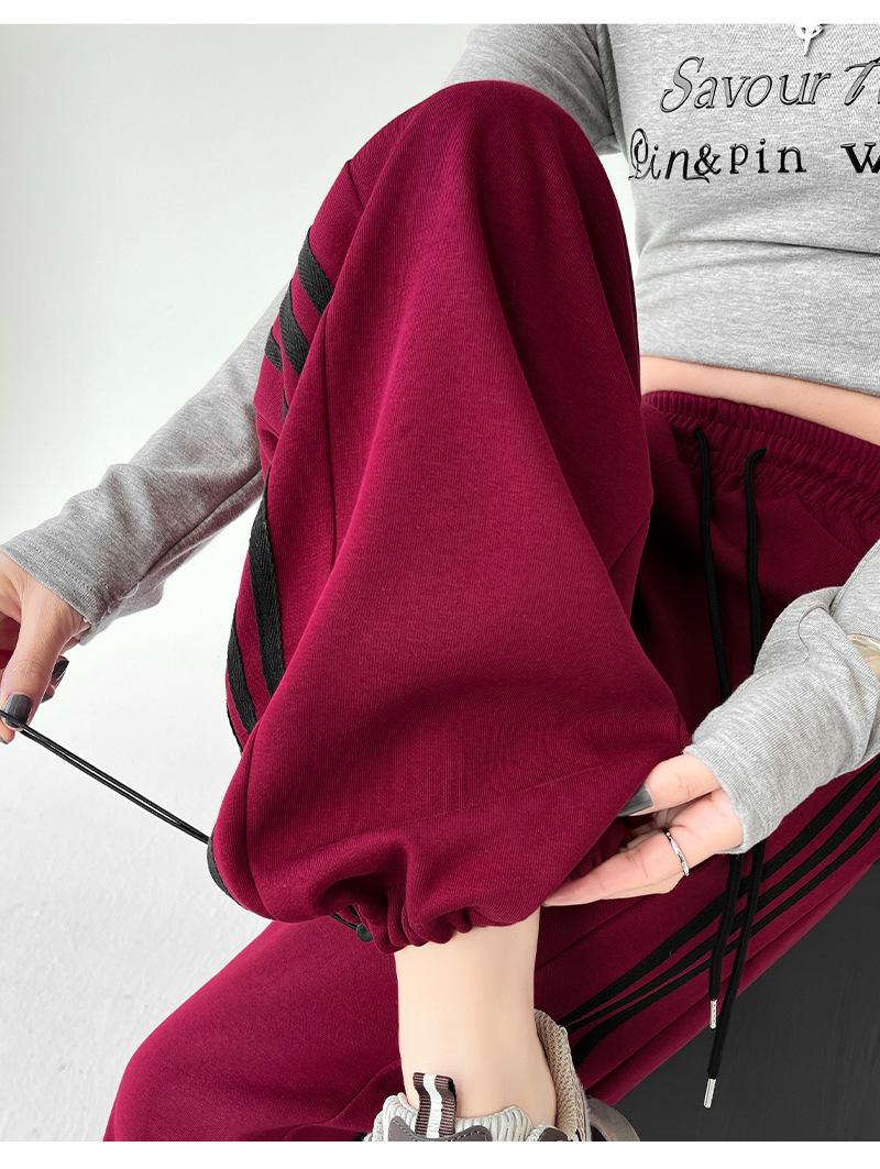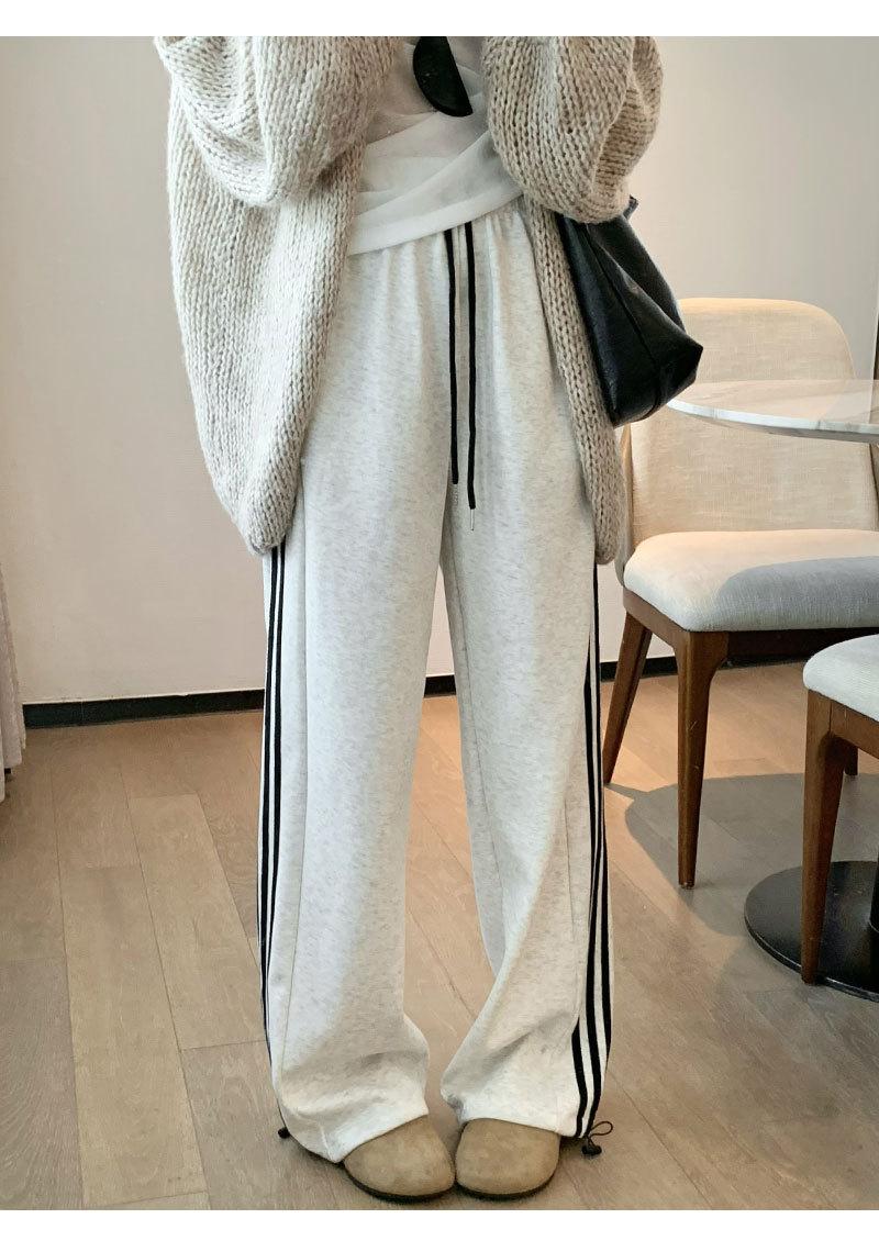 Pantalón de Chándal Americano con Raya Lateral para Mujer Primavera Otoño Relajado Cintura Alta Pierna Recta Pierna Ancha Suelto Casual Deportivo