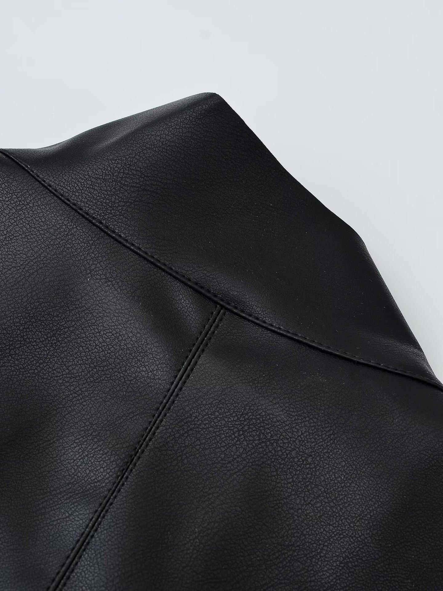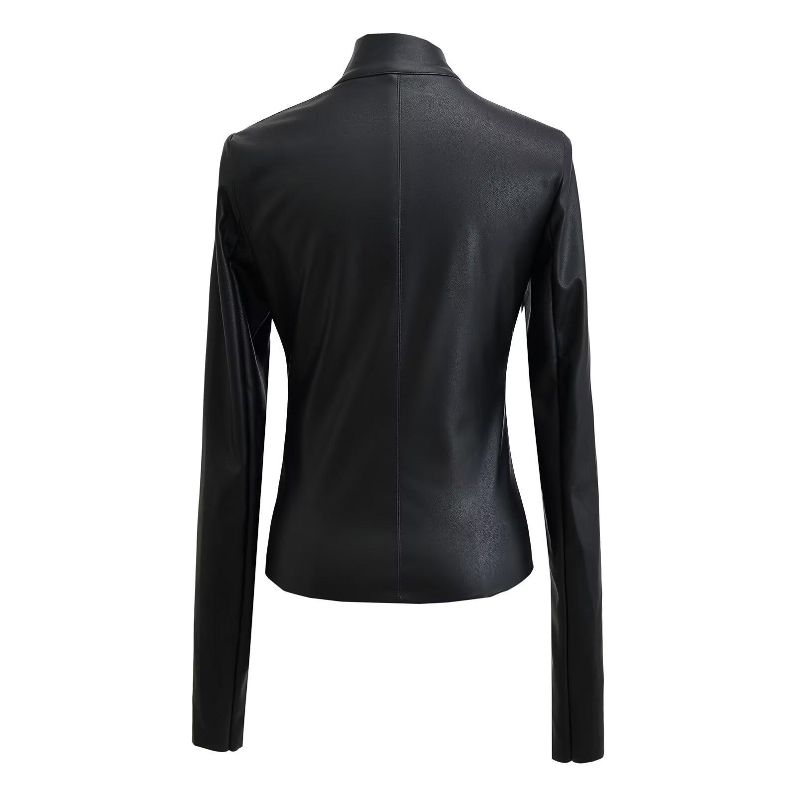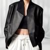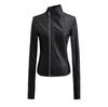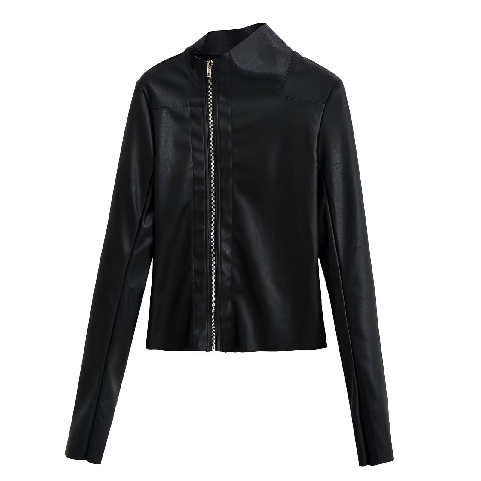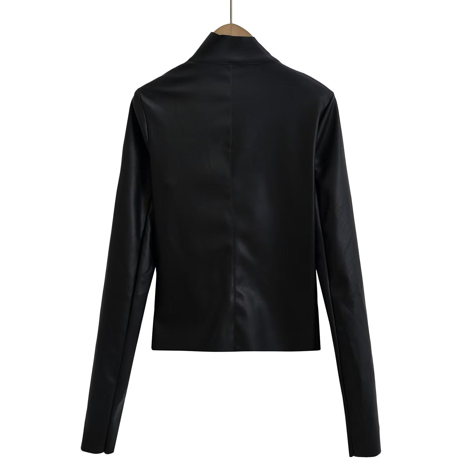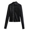 Chaqueta Americana Retro Negra Ajustada con Cremallera Elástica Combinable Ajustada de Cuero PU para Mujer Otoño Nuevo Top Chaqueta