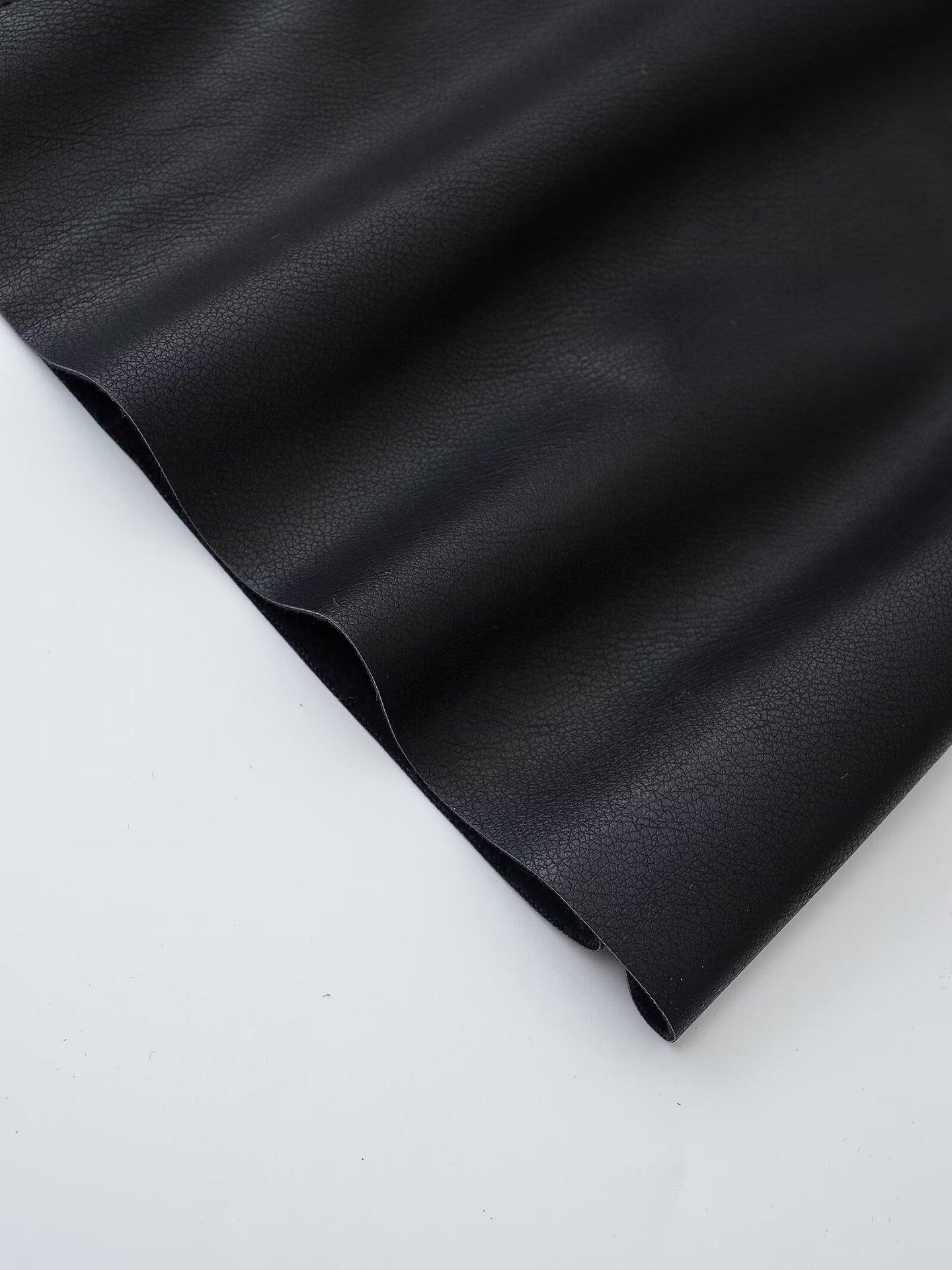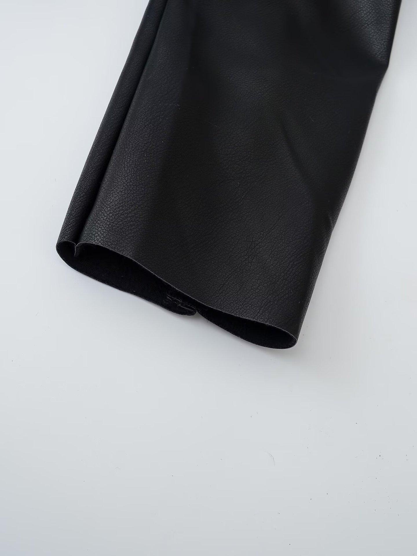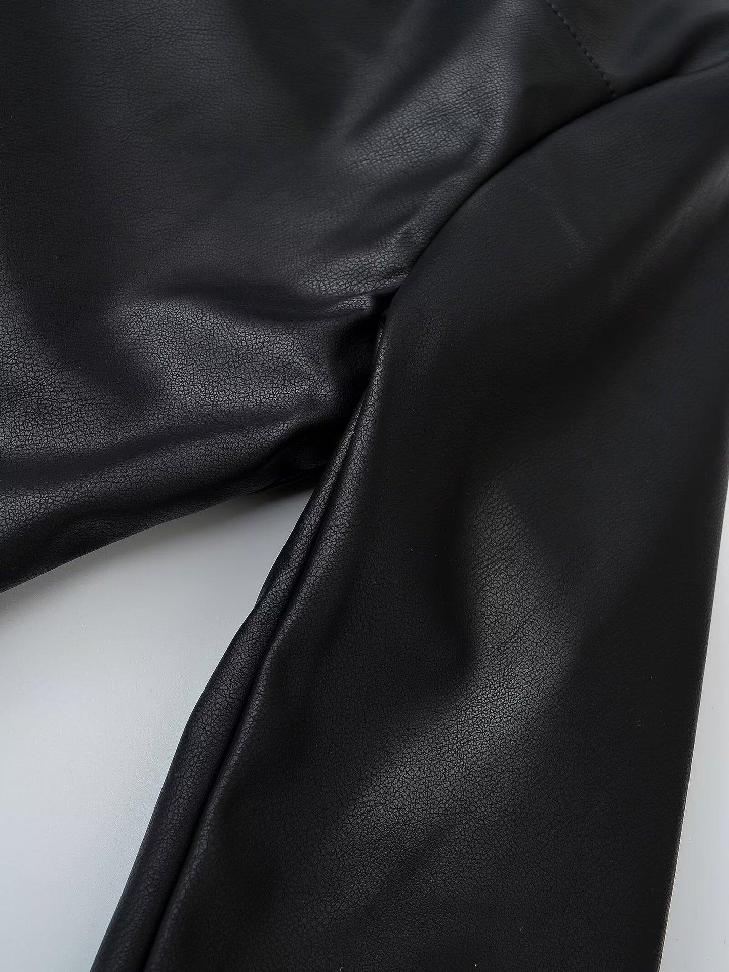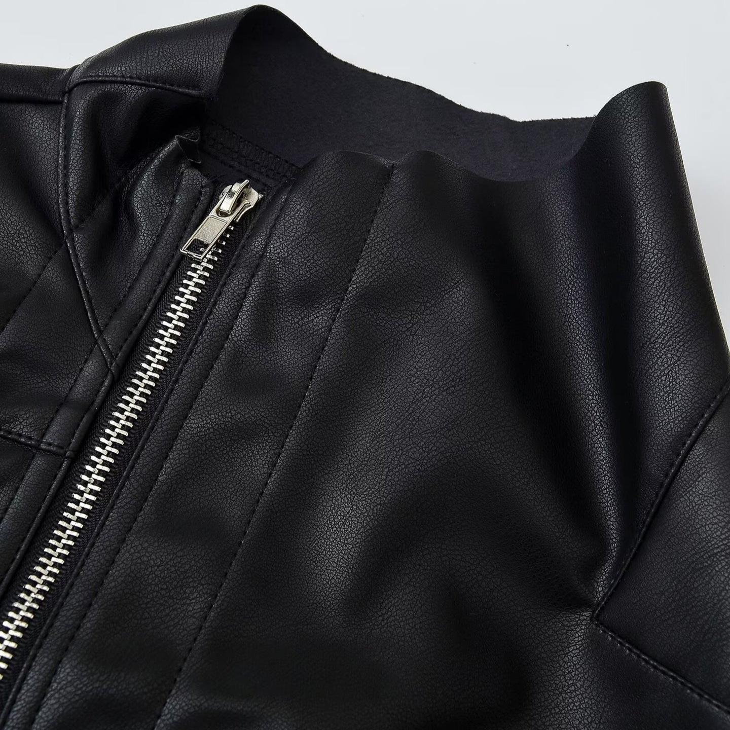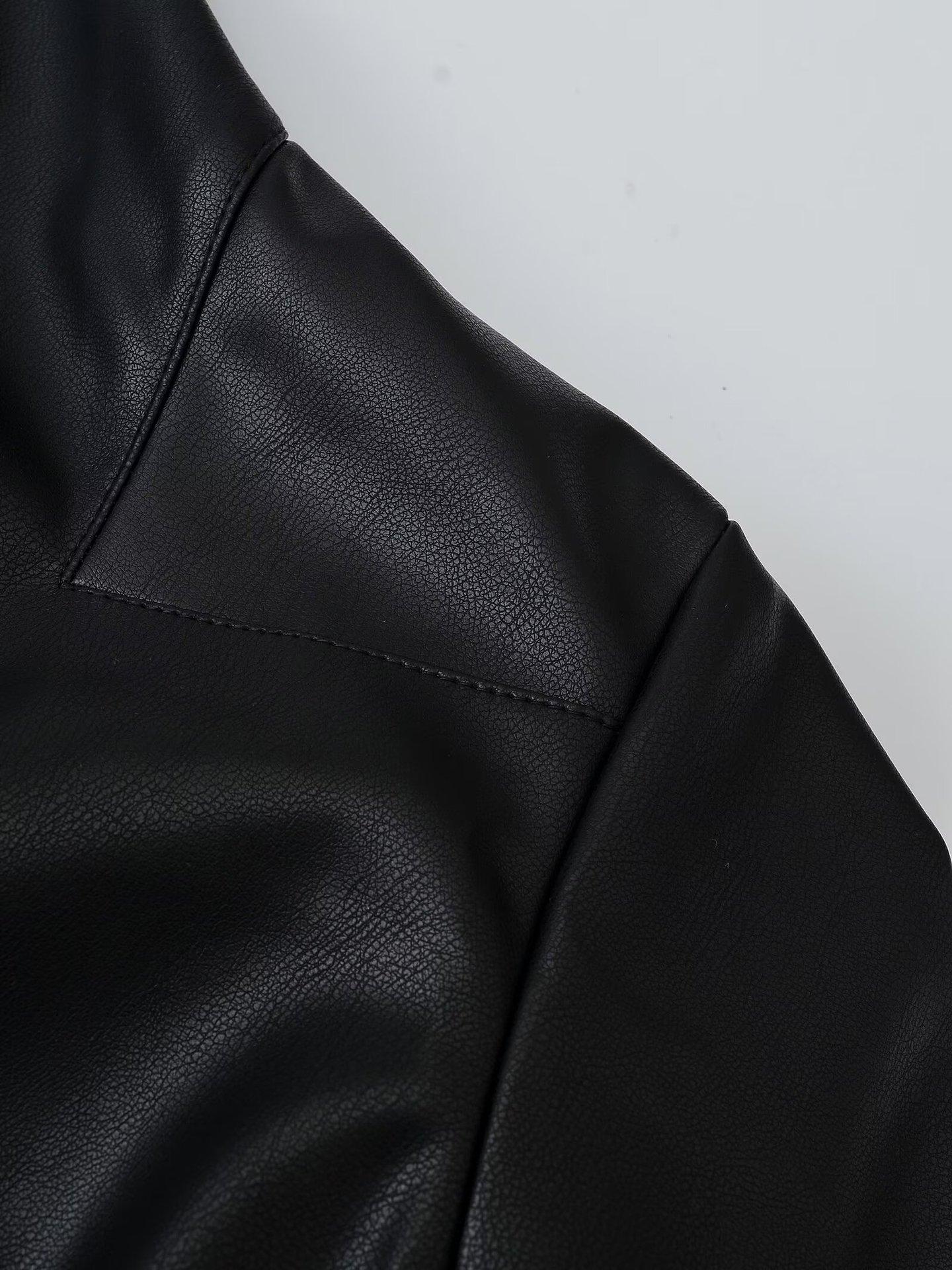 Chaqueta Americana Retro Negra Ajustada con Cremallera Elástica Combinable Ajustada de Cuero PU para Mujer Otoño Nuevo Top Chaqueta