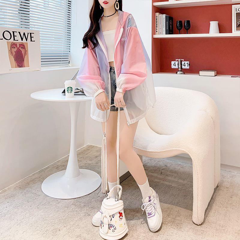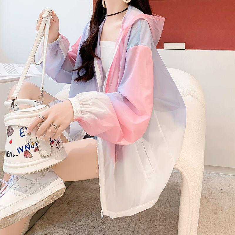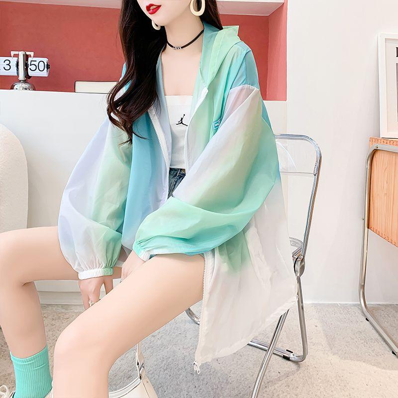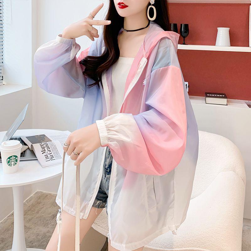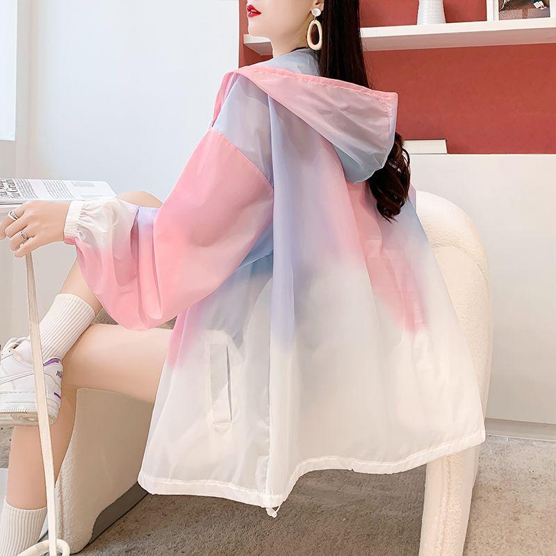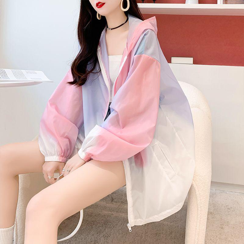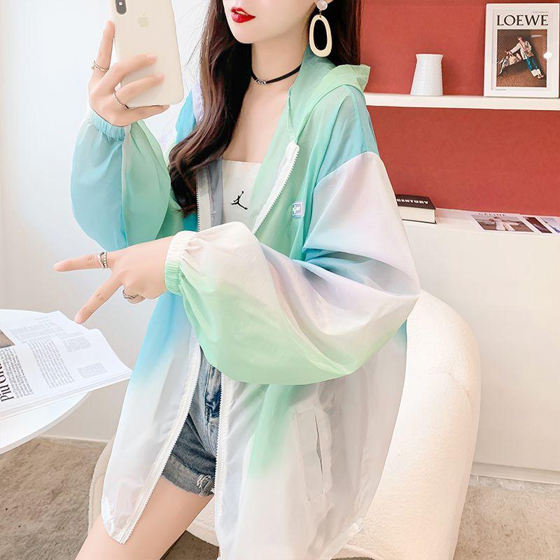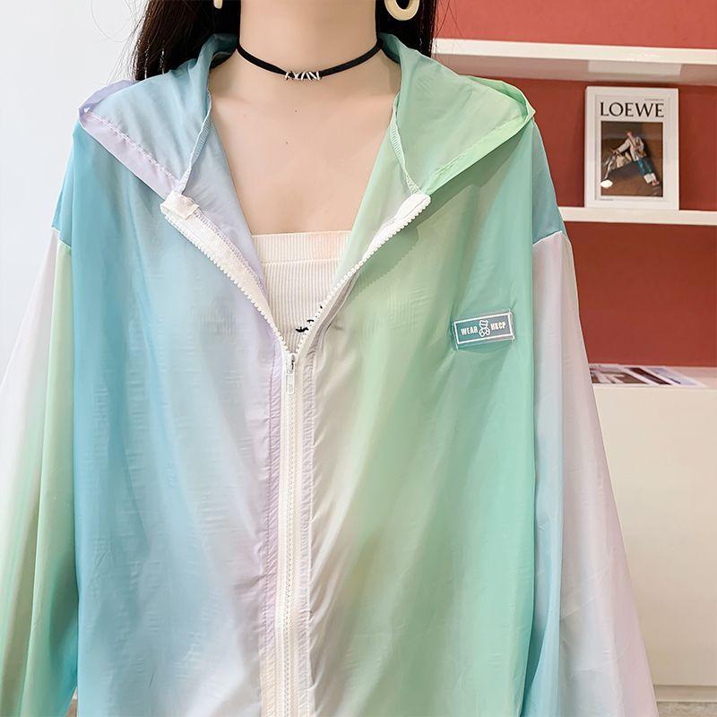 Ropa de Protección Solar Chaqueta para Mujer 2025 Nuevo Diseño de Moda de Verano Color Degradado con Capucha Estilo Holgado Ropa de Protección Solar Tendencia