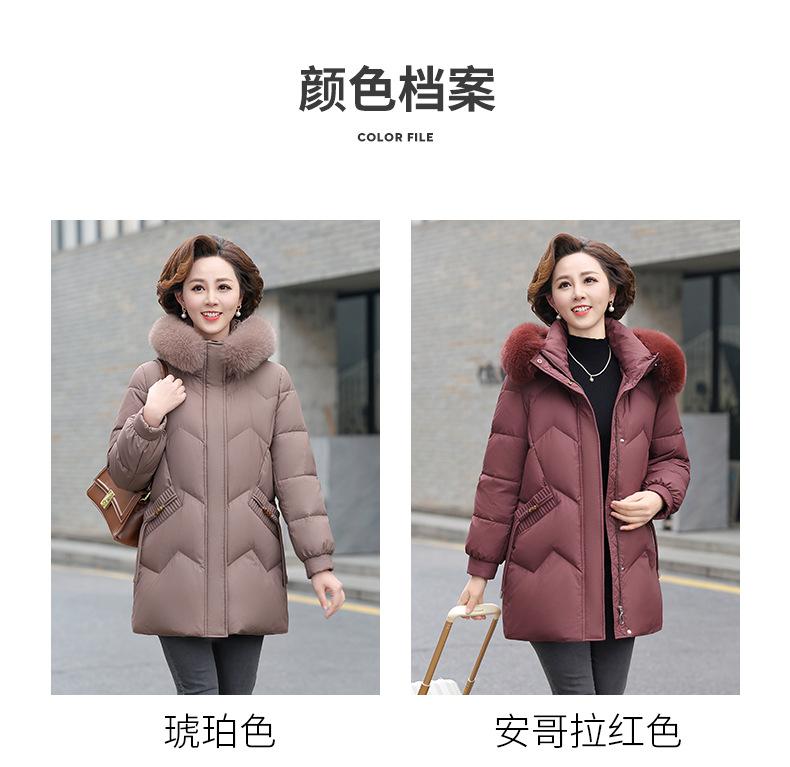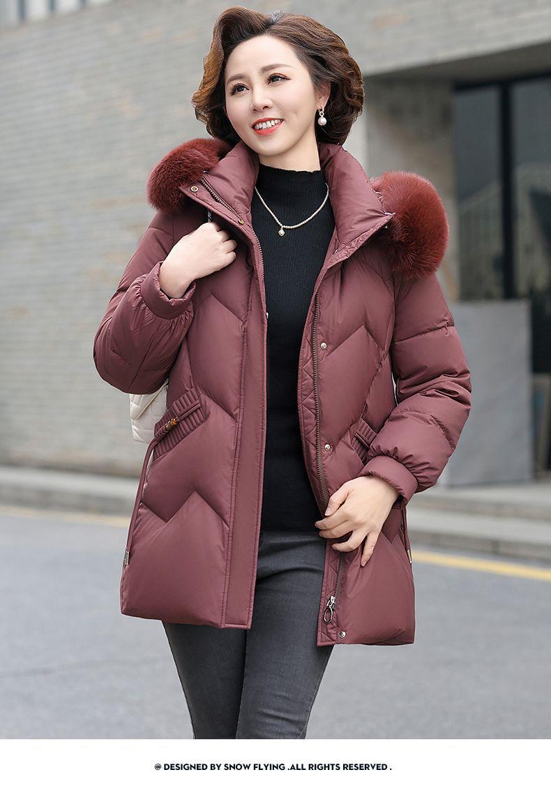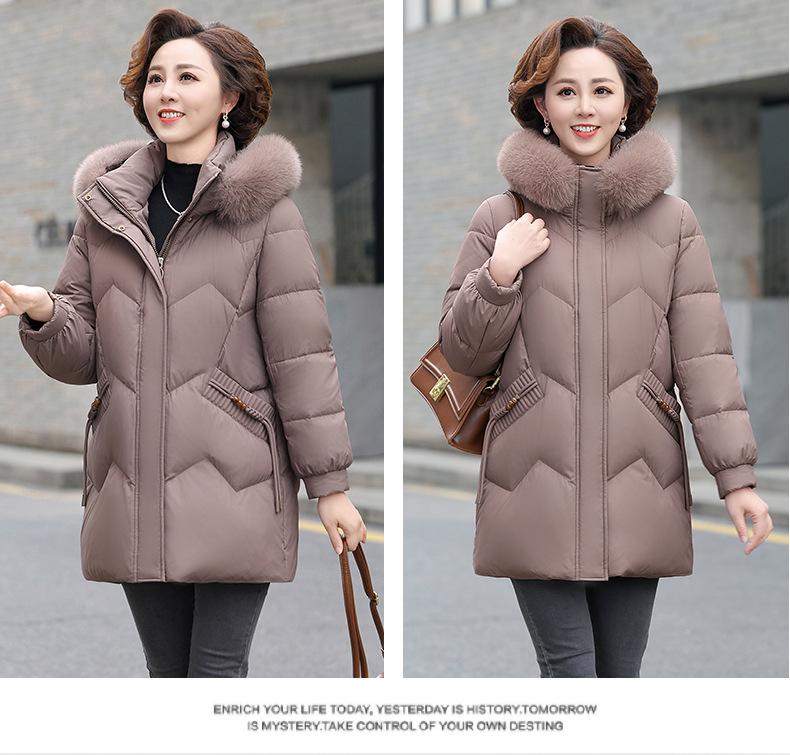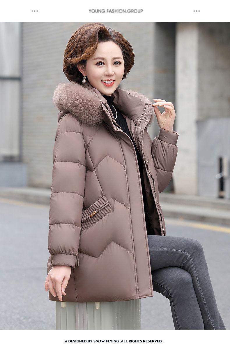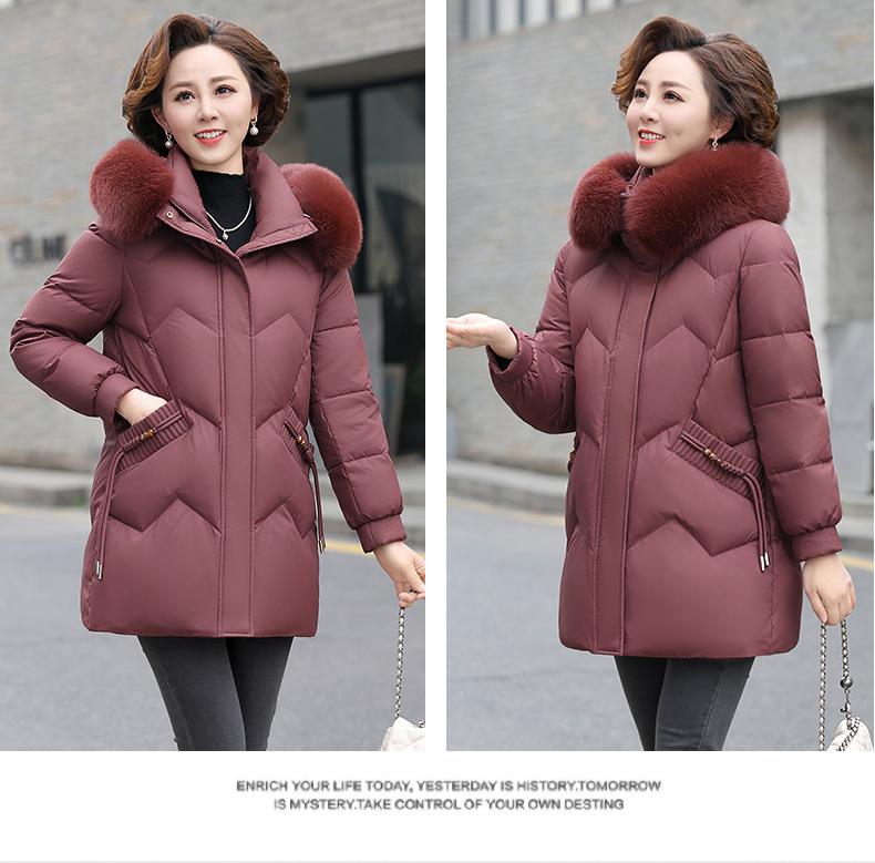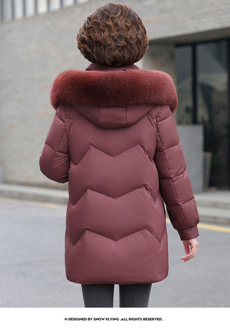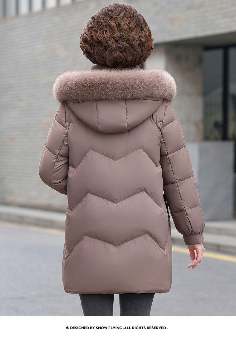 Volando en la Nieve Estilo Extranjero Madre de Mediana Edad y Anciana Chaqueta de Plumón para Mujer Abrigo de Invierno Grueso con Cuello de Piel de Zorro para Ancianos