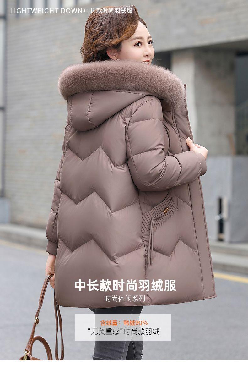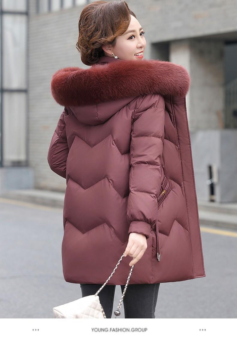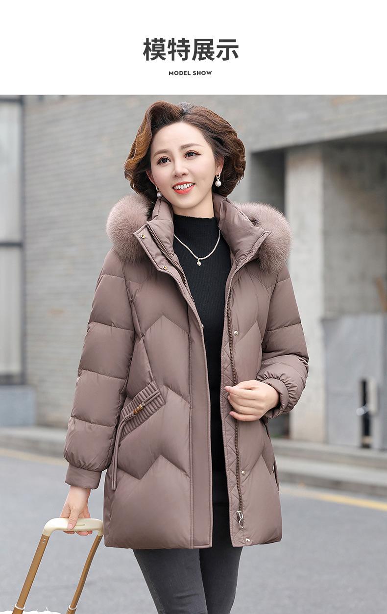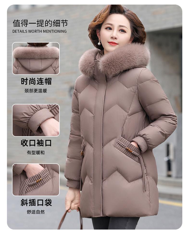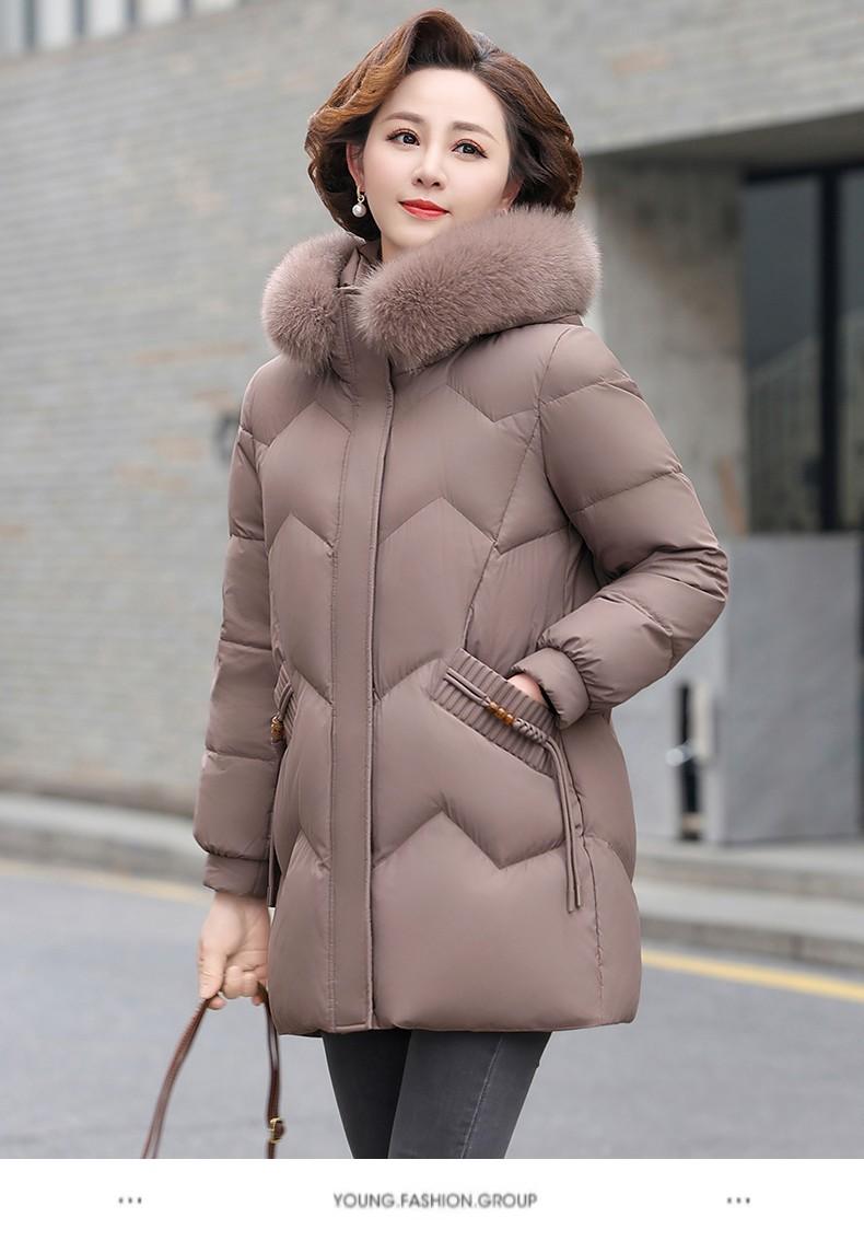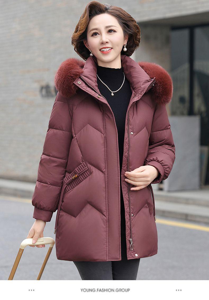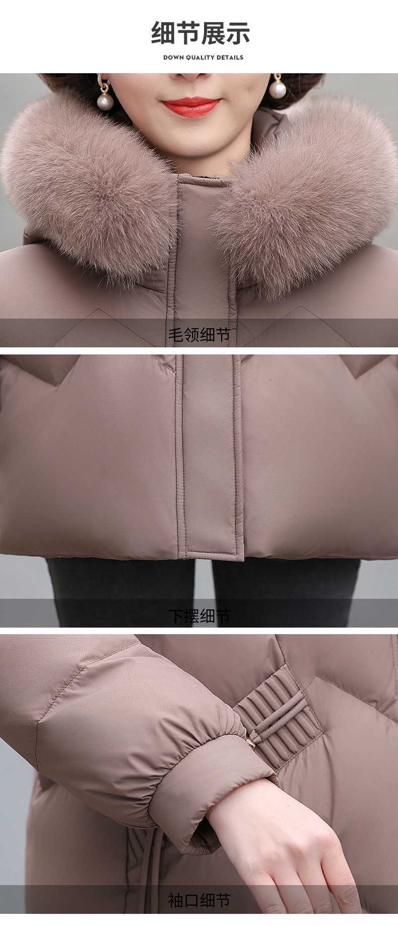 Volando en la Nieve Estilo Extranjero Madre de Mediana Edad y Anciana Chaqueta de Plumón para Mujer Abrigo de Invierno Grueso con Cuello de Piel de Zorro para Ancianos