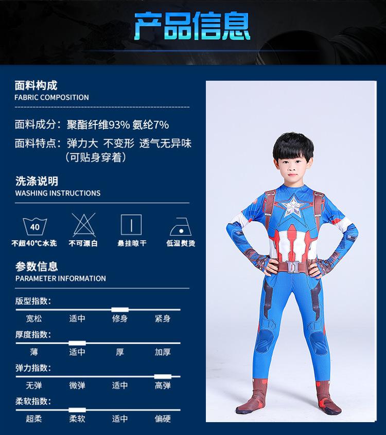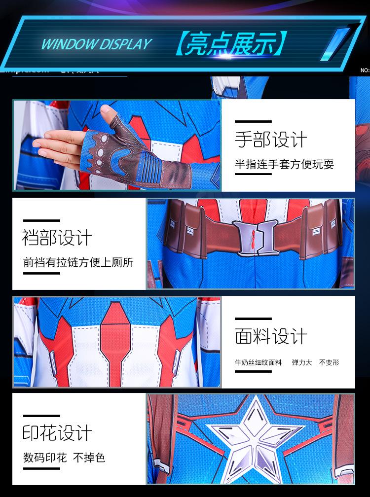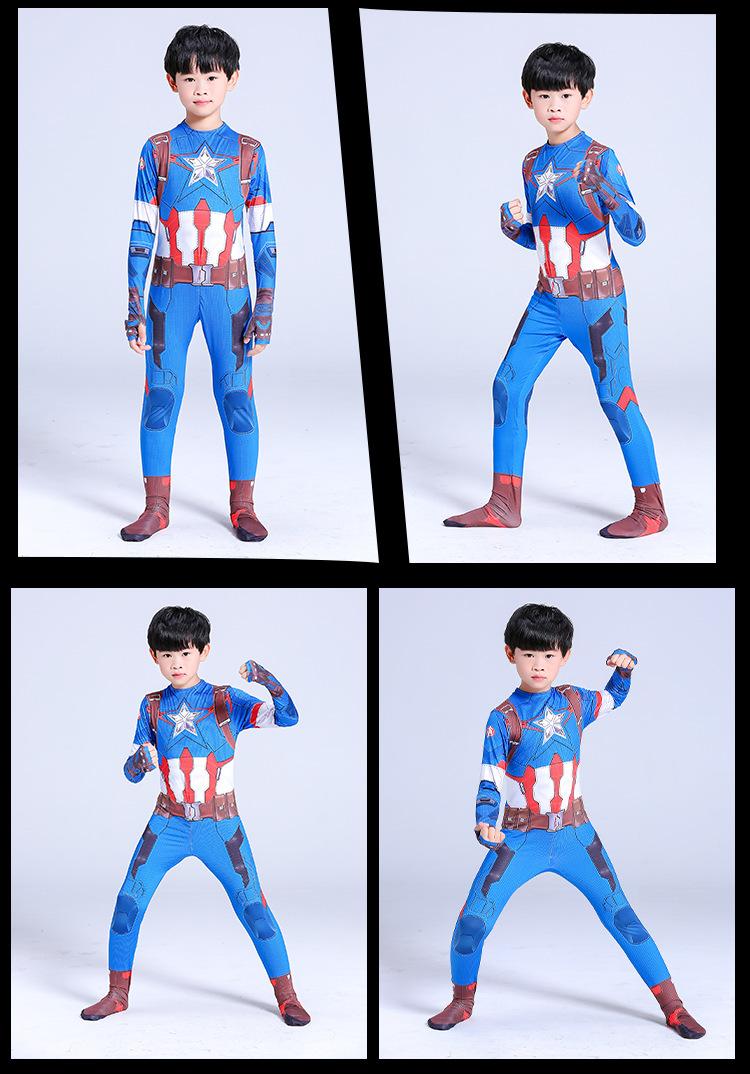 Disfraz de Halloween Niños Vengadores Capitán América Cap América Spider Hero Mono Traje Musculoso