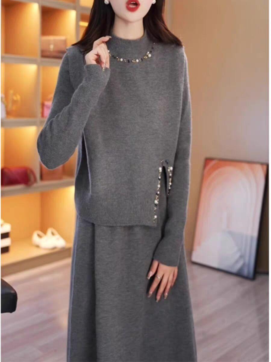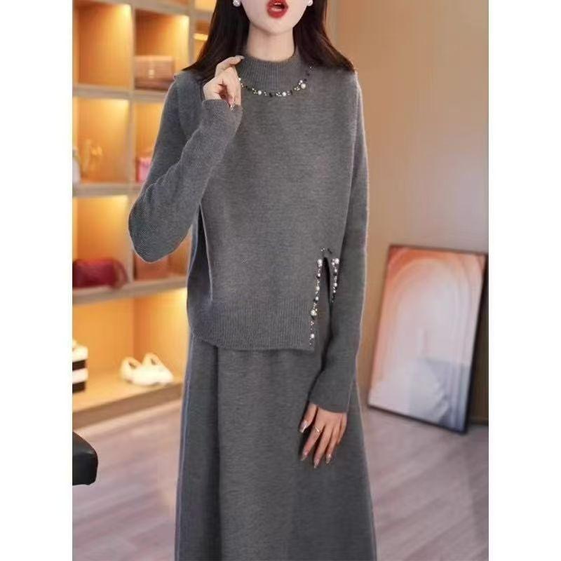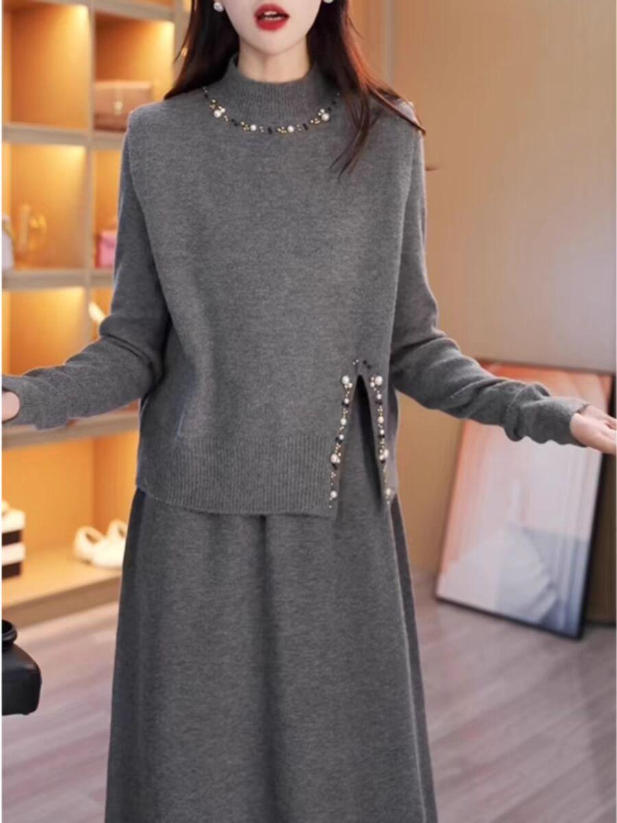 Vestido de punto de dos piezas para mujer 2025 otoño nuevo temperamento suéter de mamá falda otoño e invierno