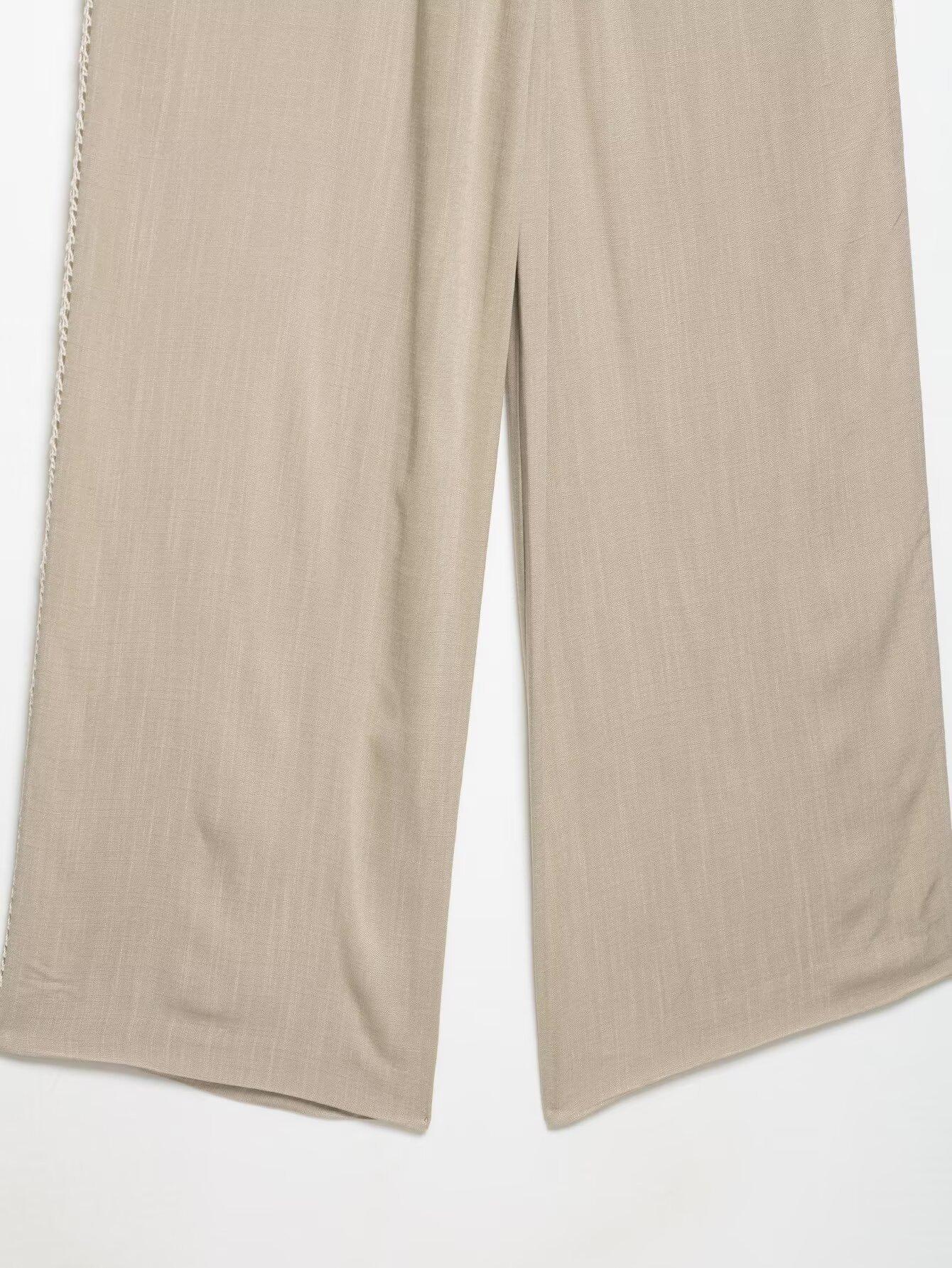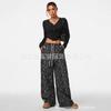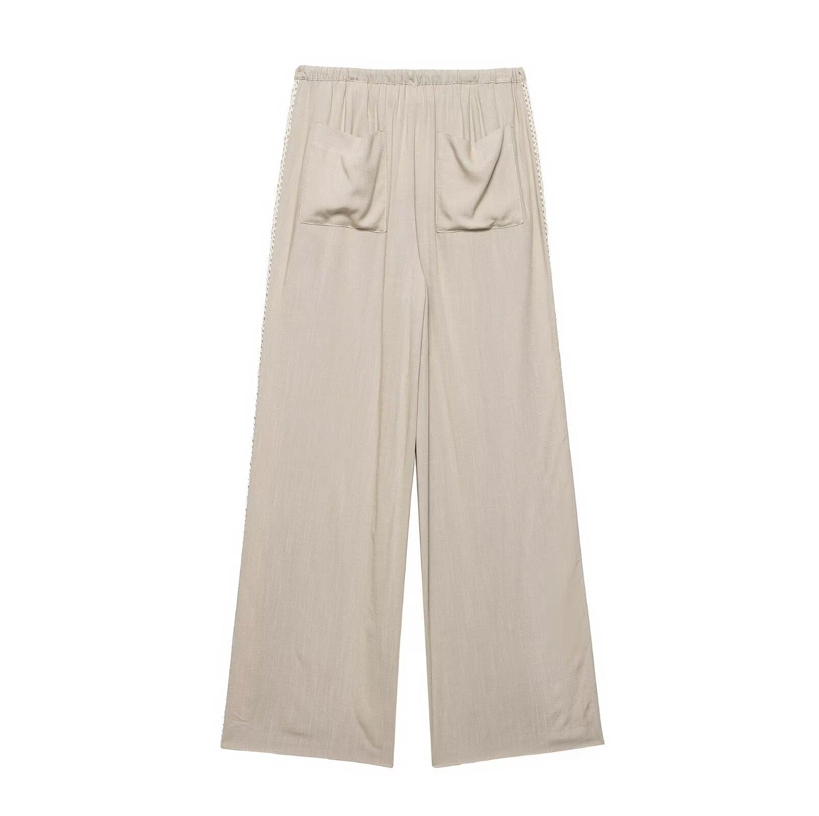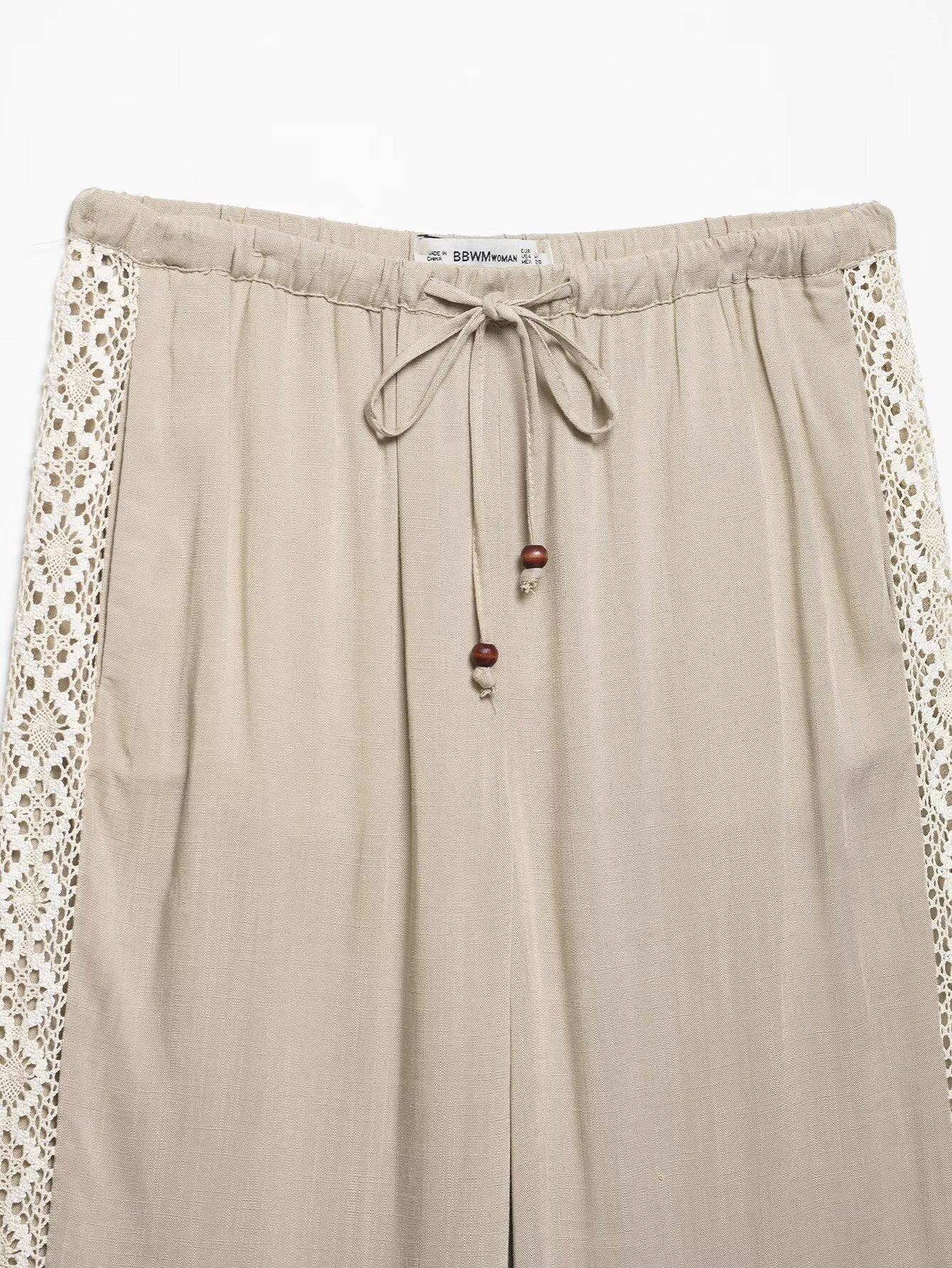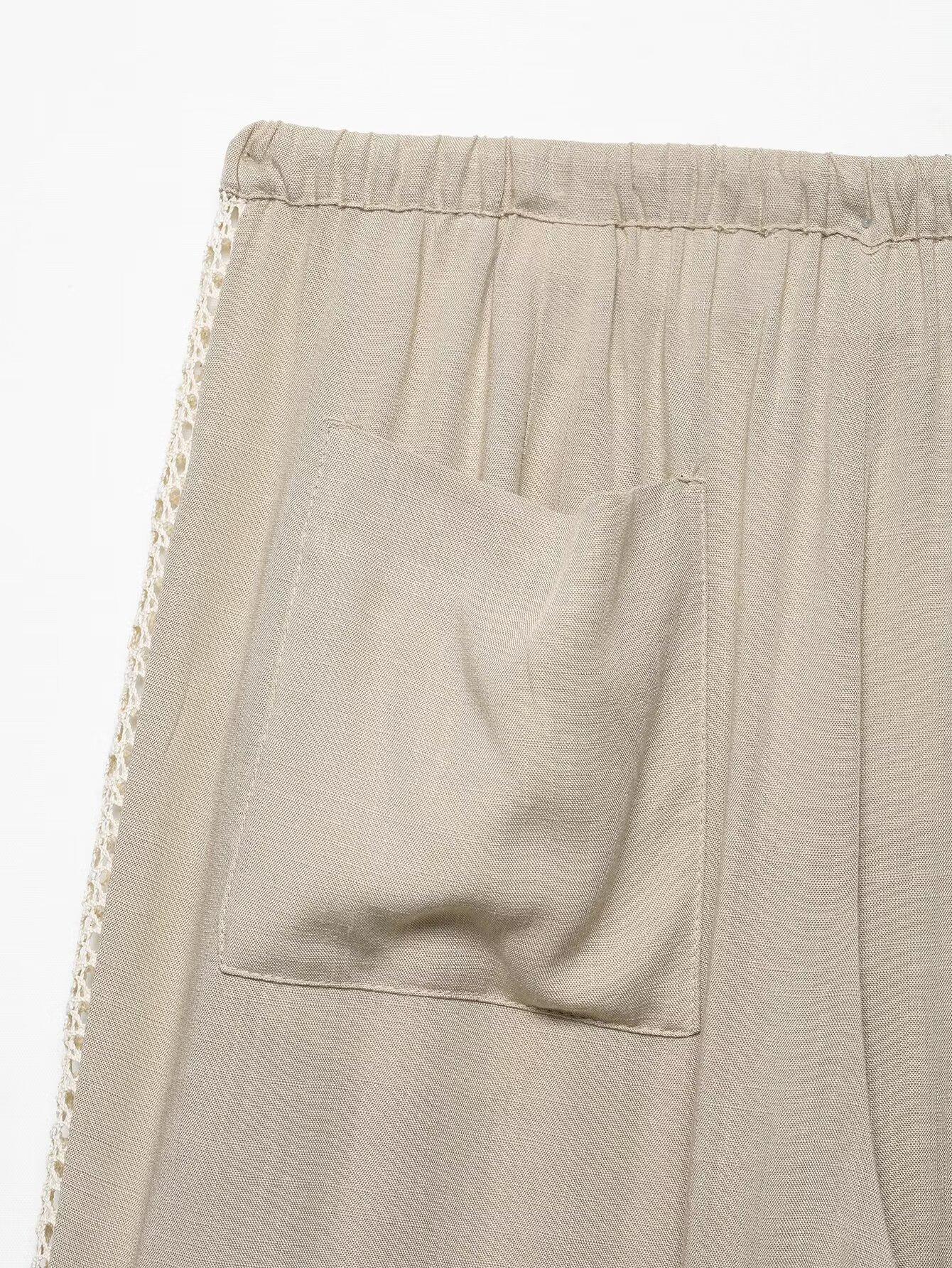 Venta al por mayor de exportación transfronteriza 2025 Verano Ropa de mujer europea y americana Encaje lateral Cinturón de rayas bordado Pantalones casuales de pierna ancha