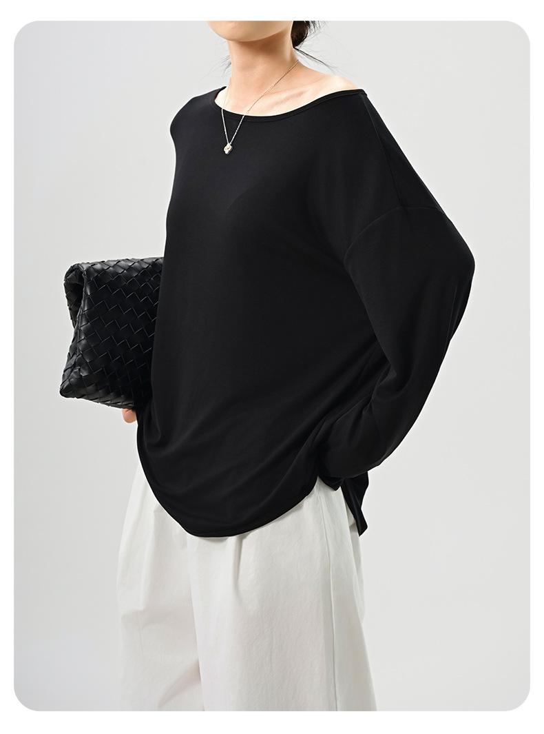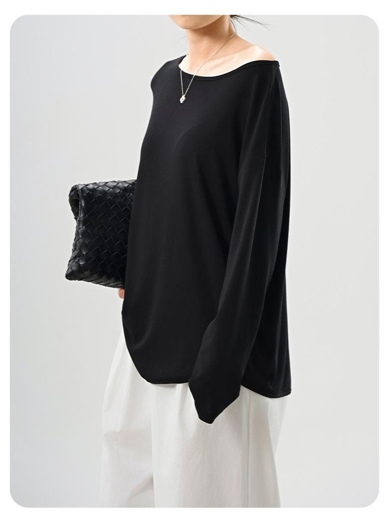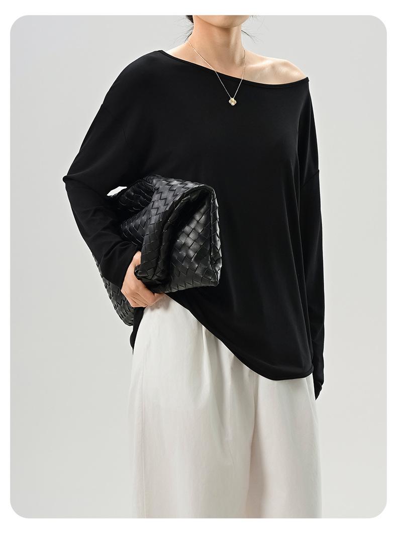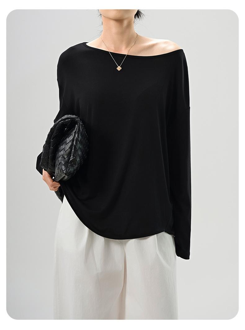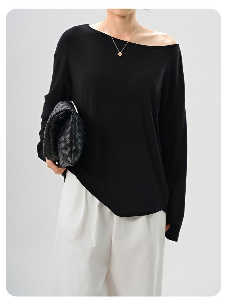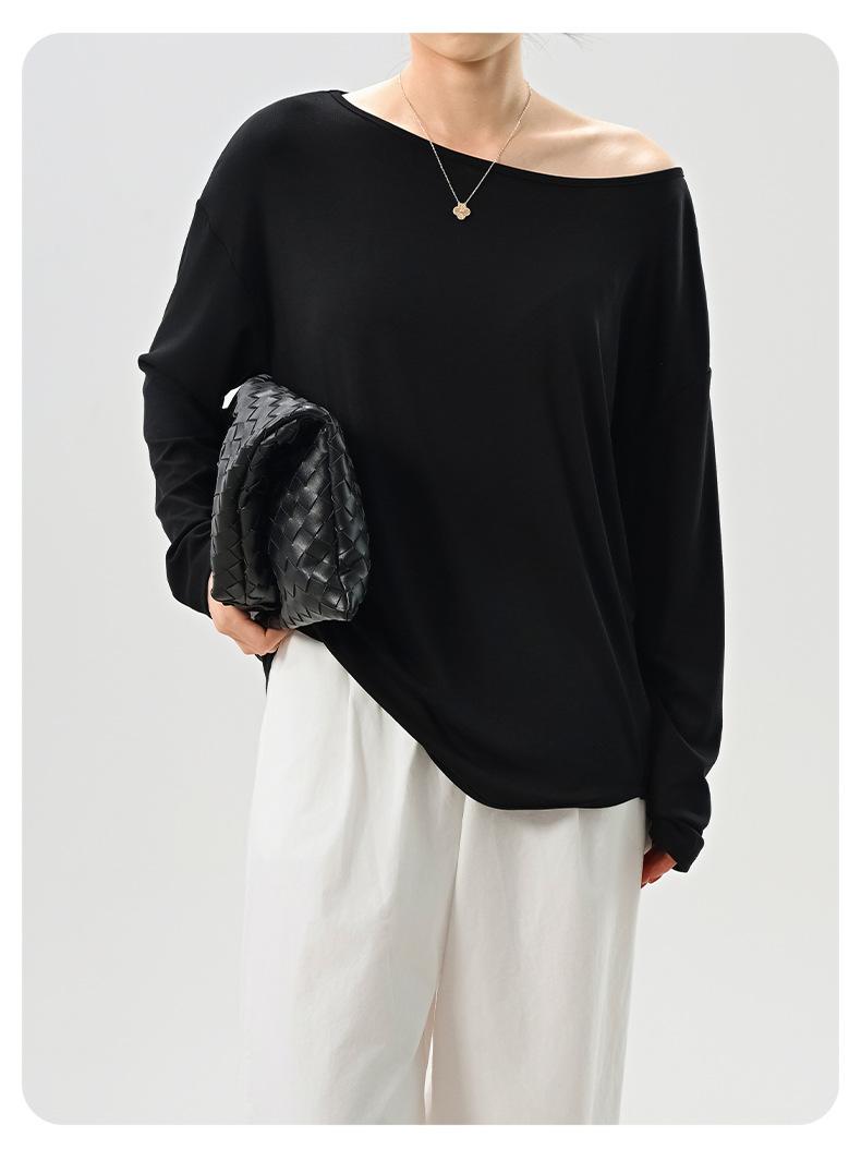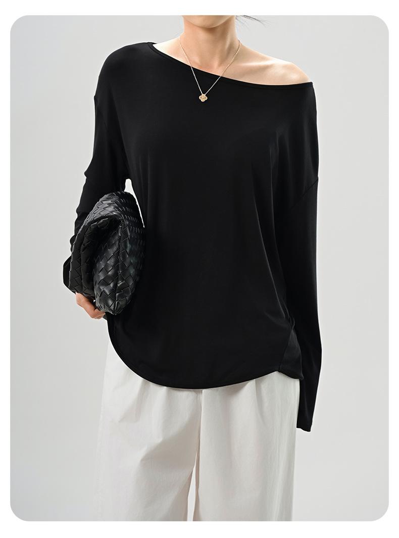 SOBREMAR nuevo producto de principios de otoño estilo holgazán de alta gama cómodo top de lyocell de alta elasticidad de un hombro camiseta oversize de manga larga