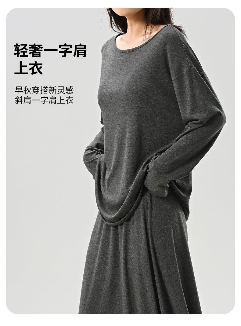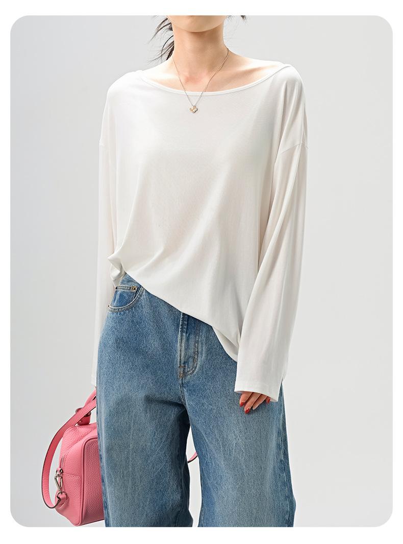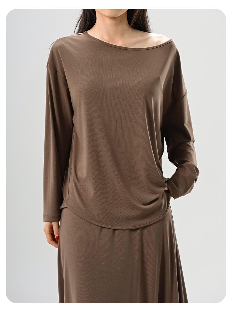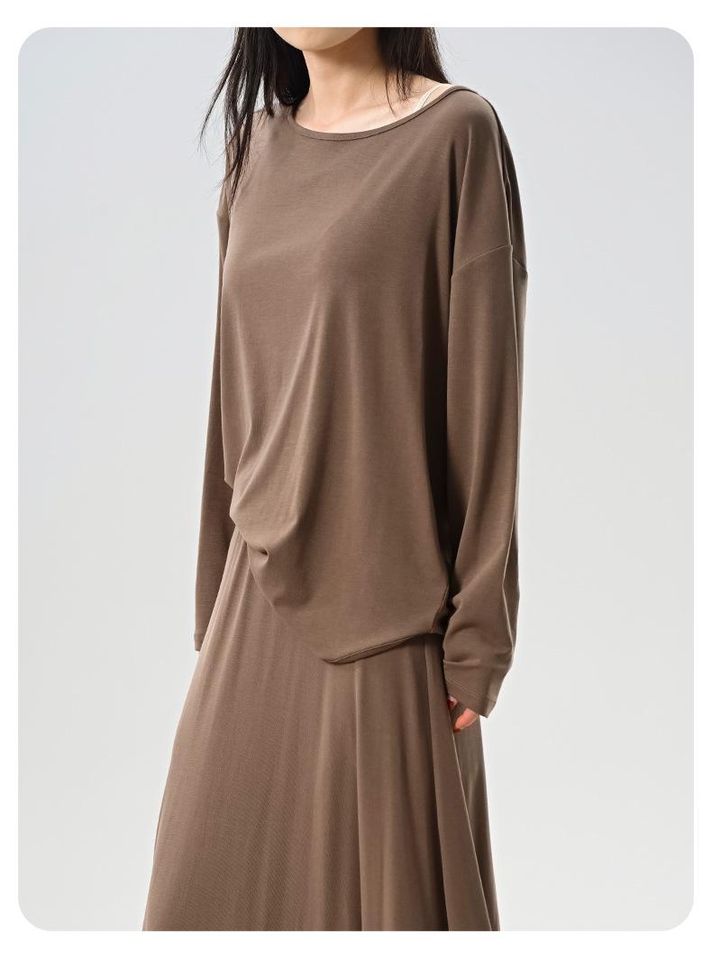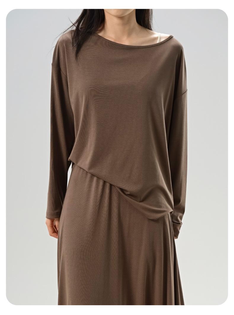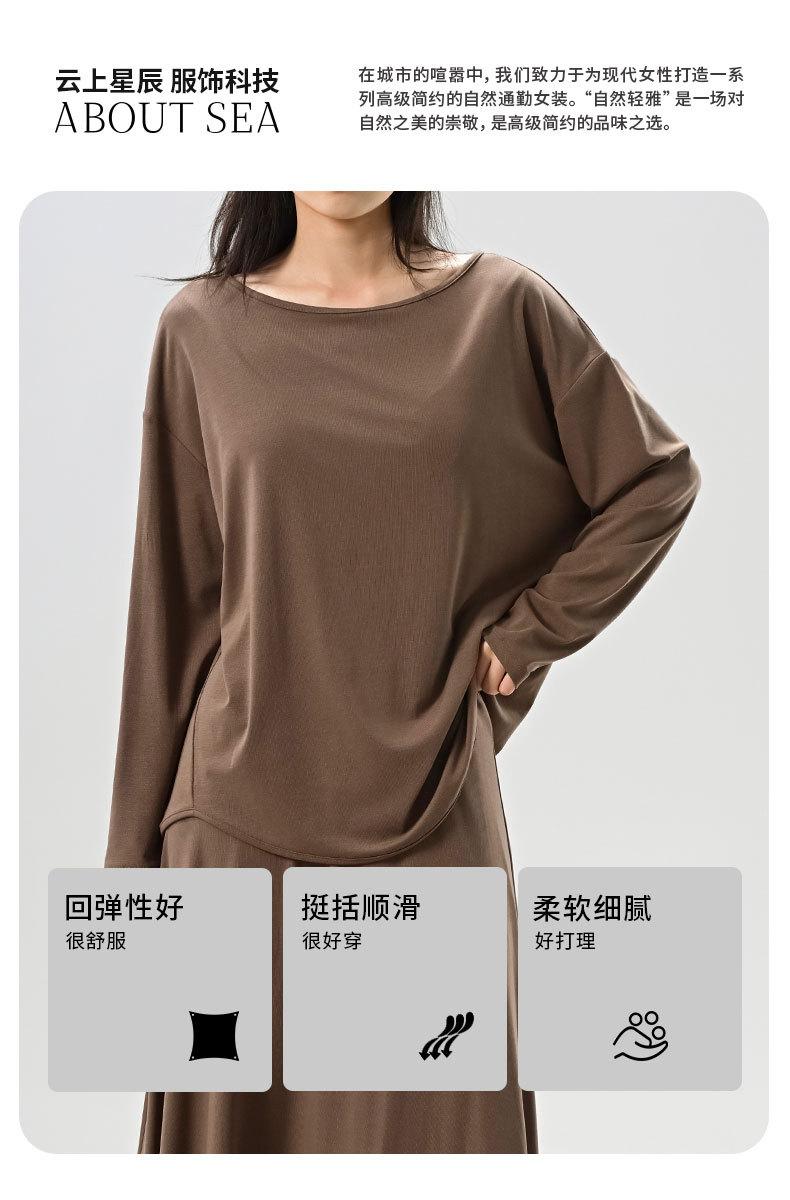 SOBREMAR nuevo producto de principios de otoño estilo holgazán de alta gama cómodo top de lyocell de alta elasticidad de un hombro camiseta oversize de manga larga