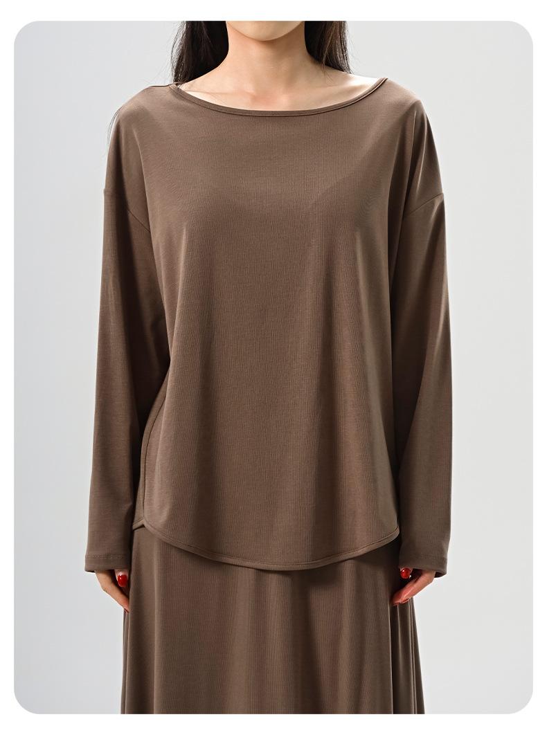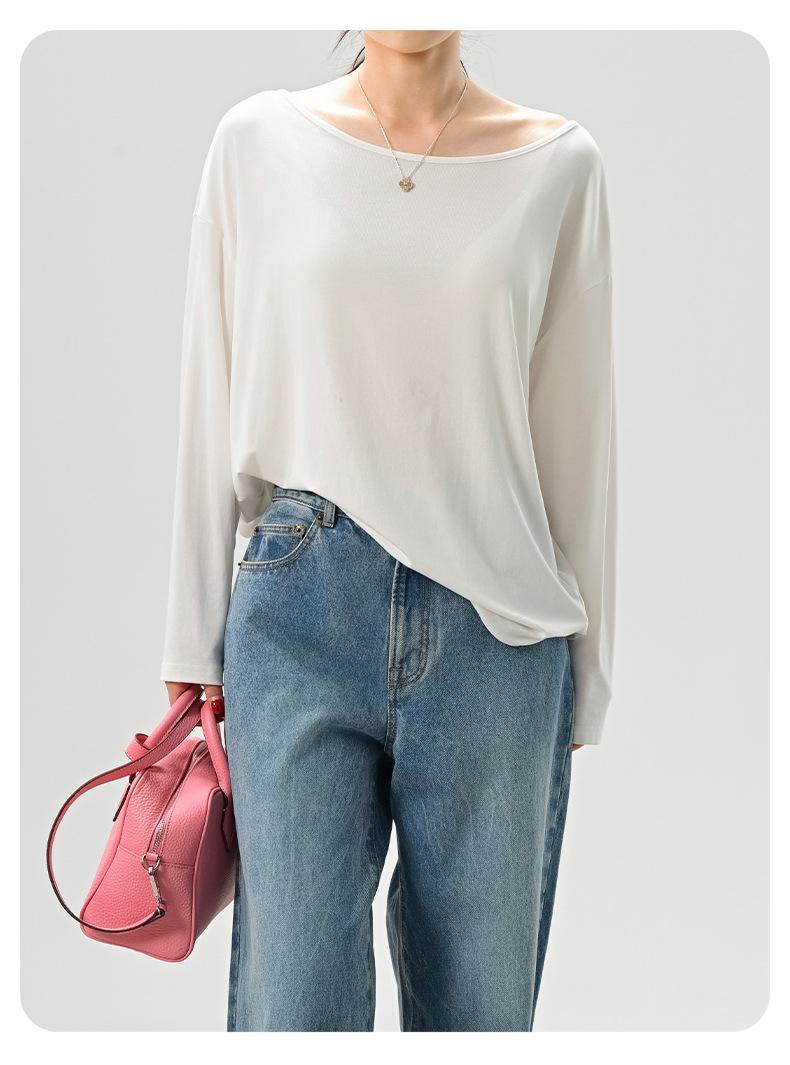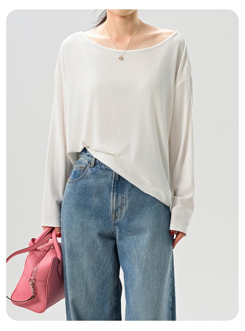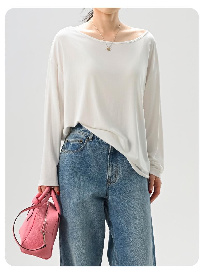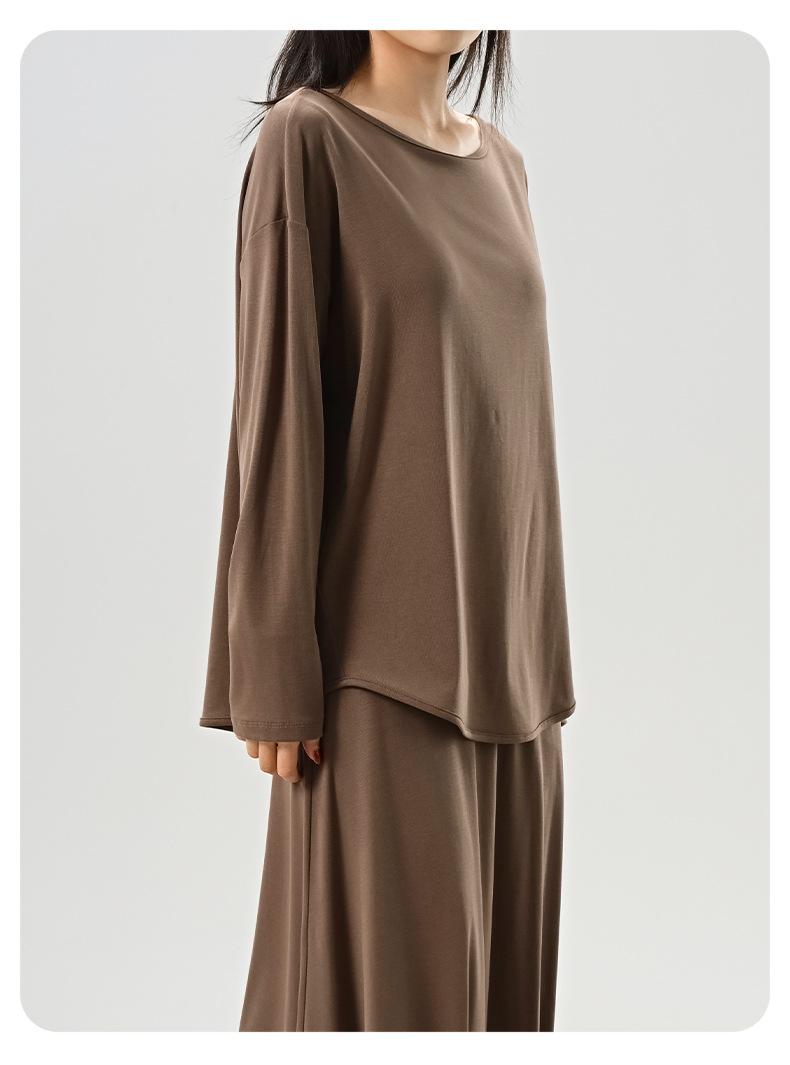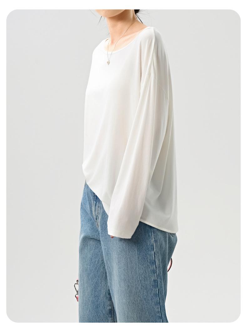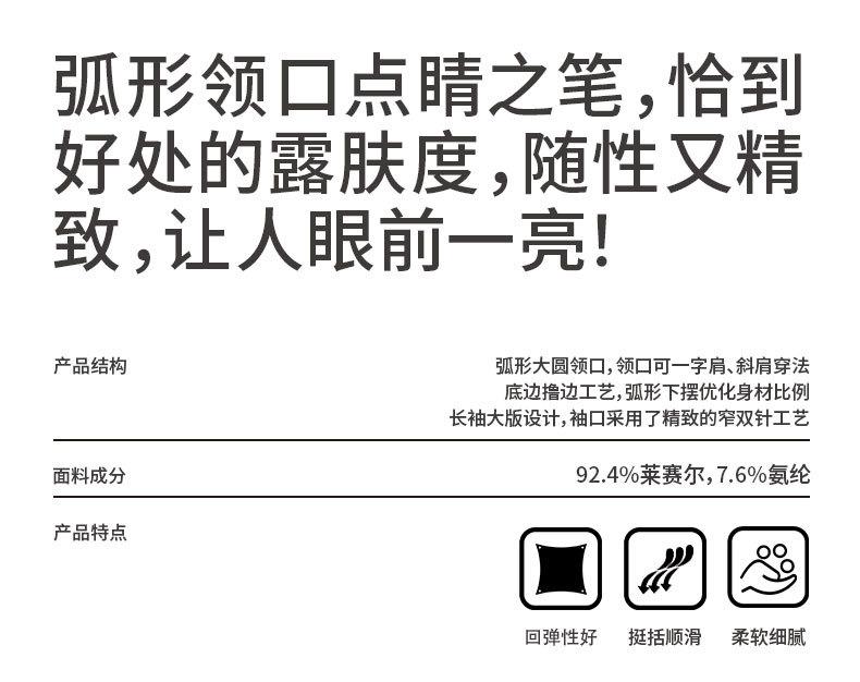 SOBREMAR nuevo producto de principios de otoño estilo holgazán de alta gama cómodo top de lyocell de alta elasticidad de un hombro camiseta oversize de manga larga