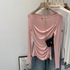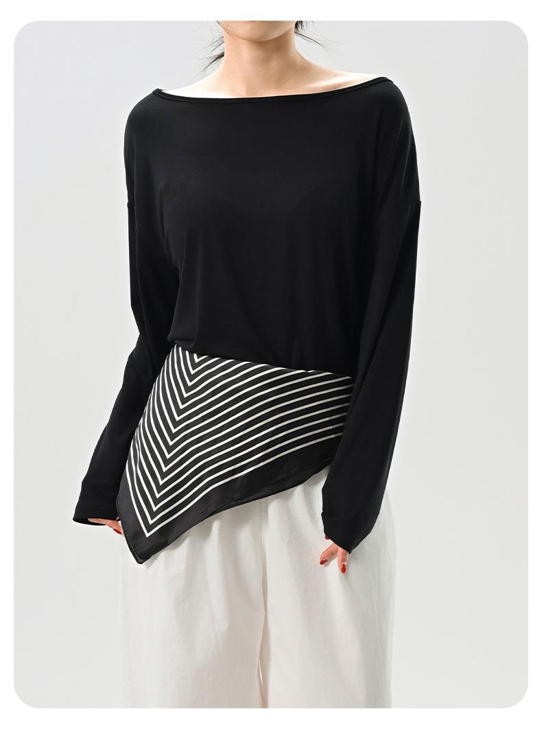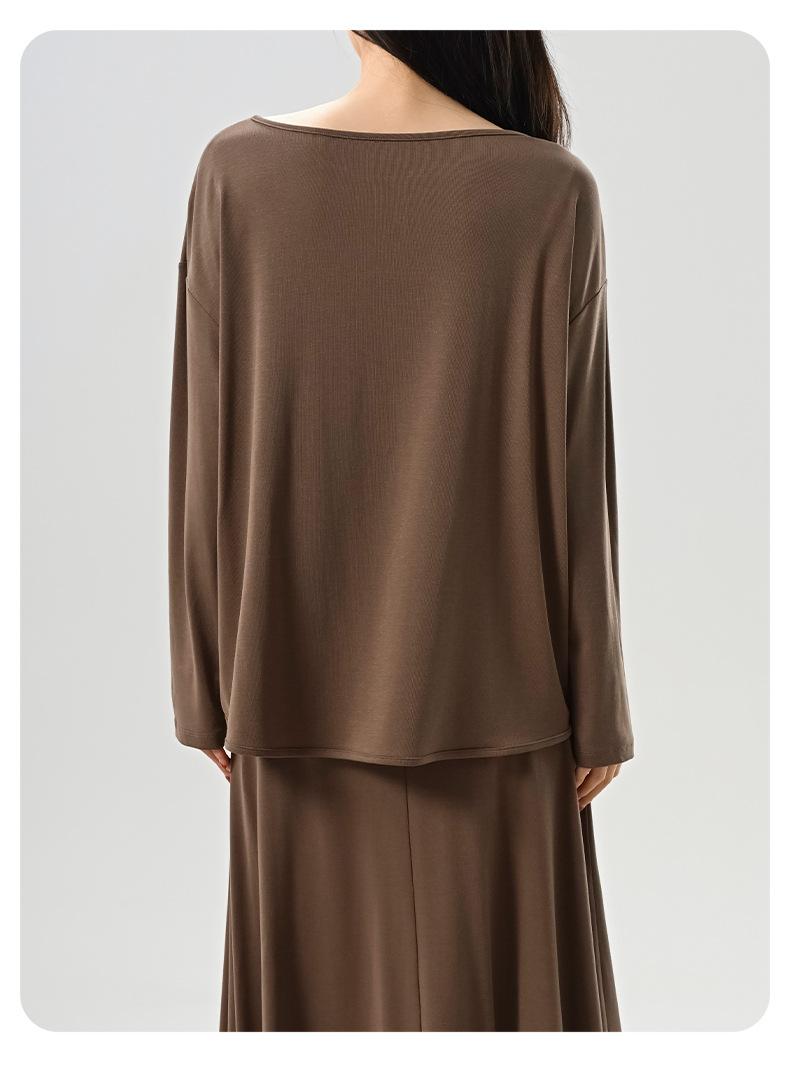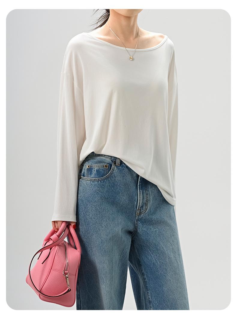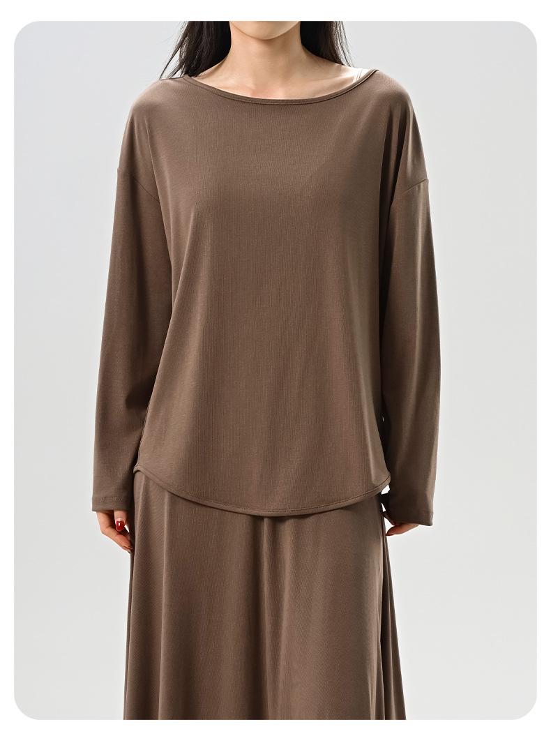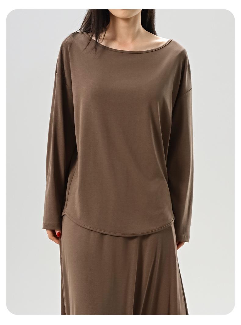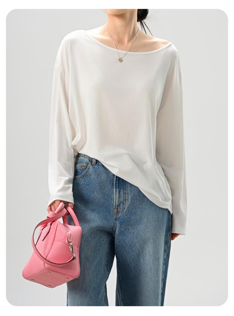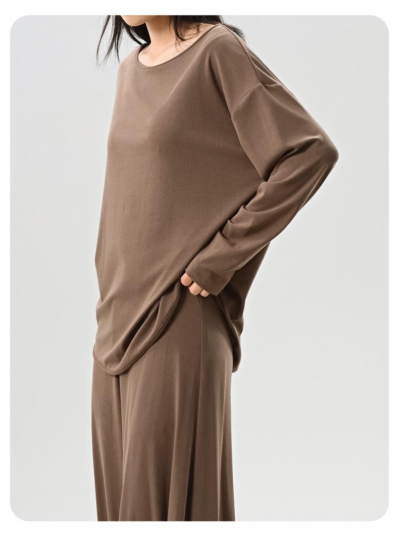 SOBREMAR nuevo producto de principios de otoño estilo holgazán de alta gama cómodo top de lyocell de alta elasticidad de un hombro camiseta oversize de manga larga