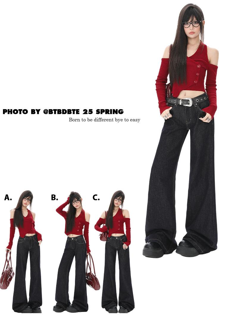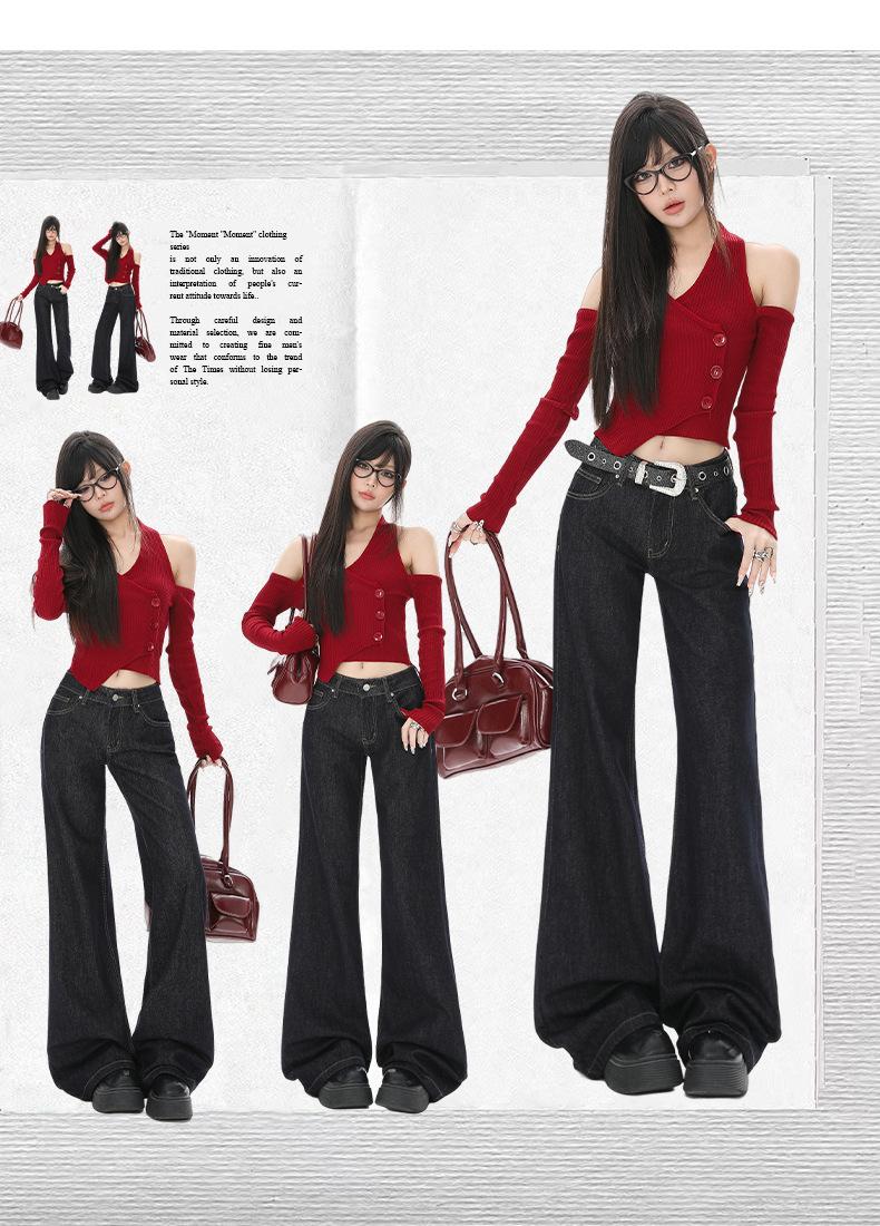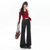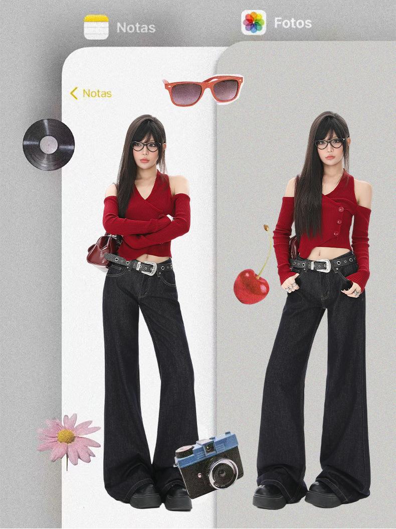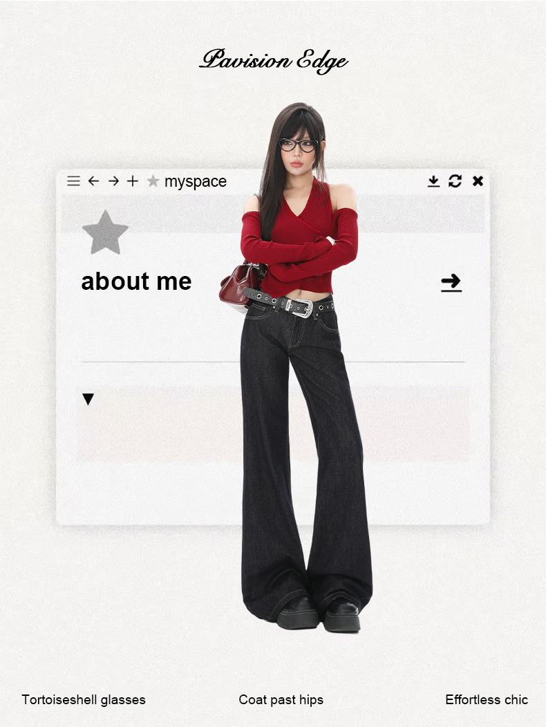Estación Europea Pantalones Acampanados de Tiro Bajo Tipo Legging para Chica Hot Pantalones Sueltos de Pierna Ancha Otoño 2025 Jeans Microacampanados Versátiles para Mujer