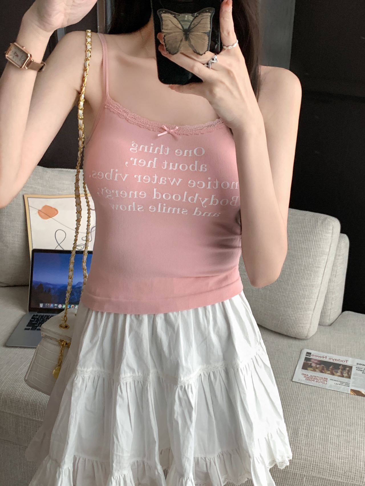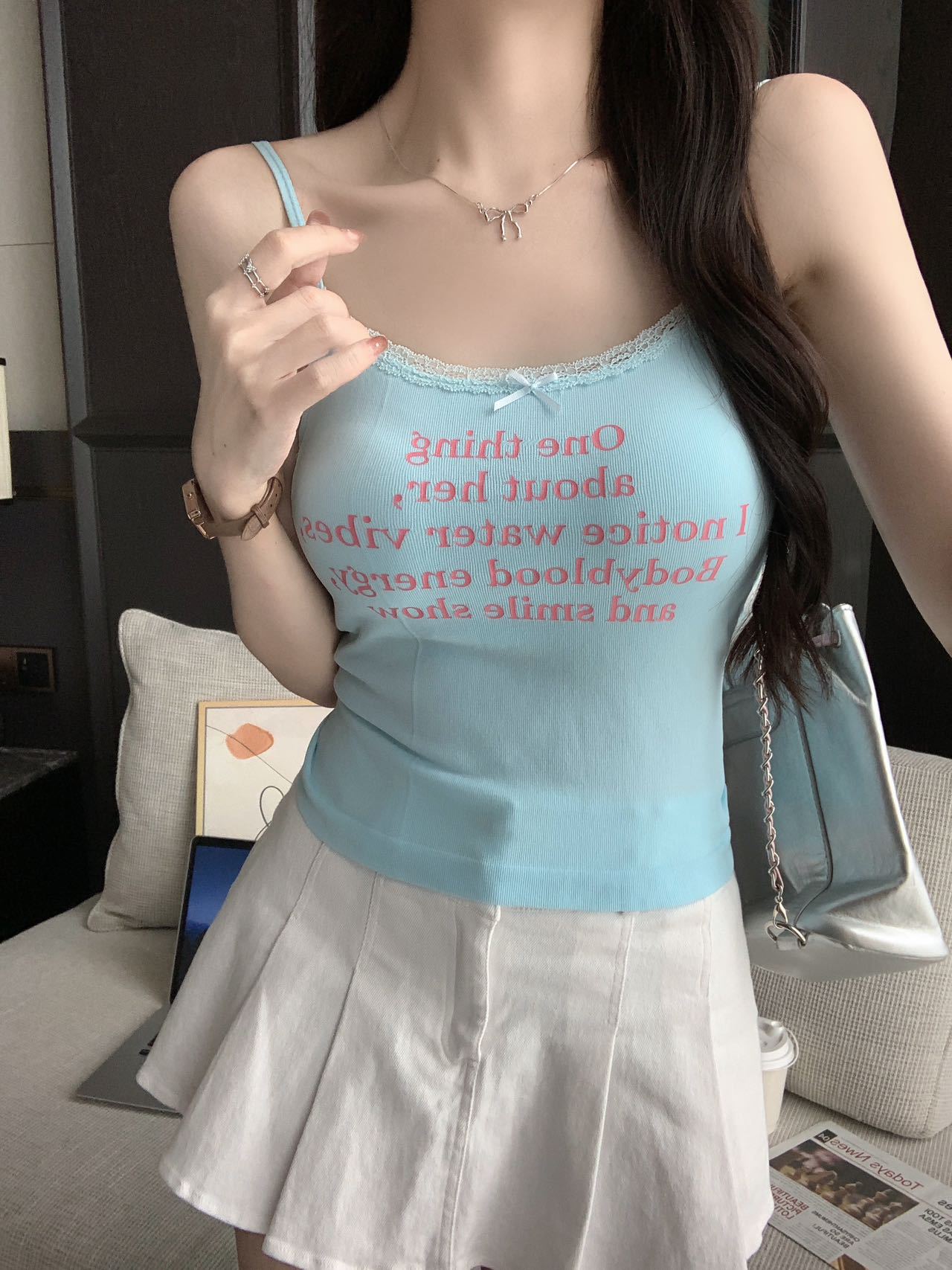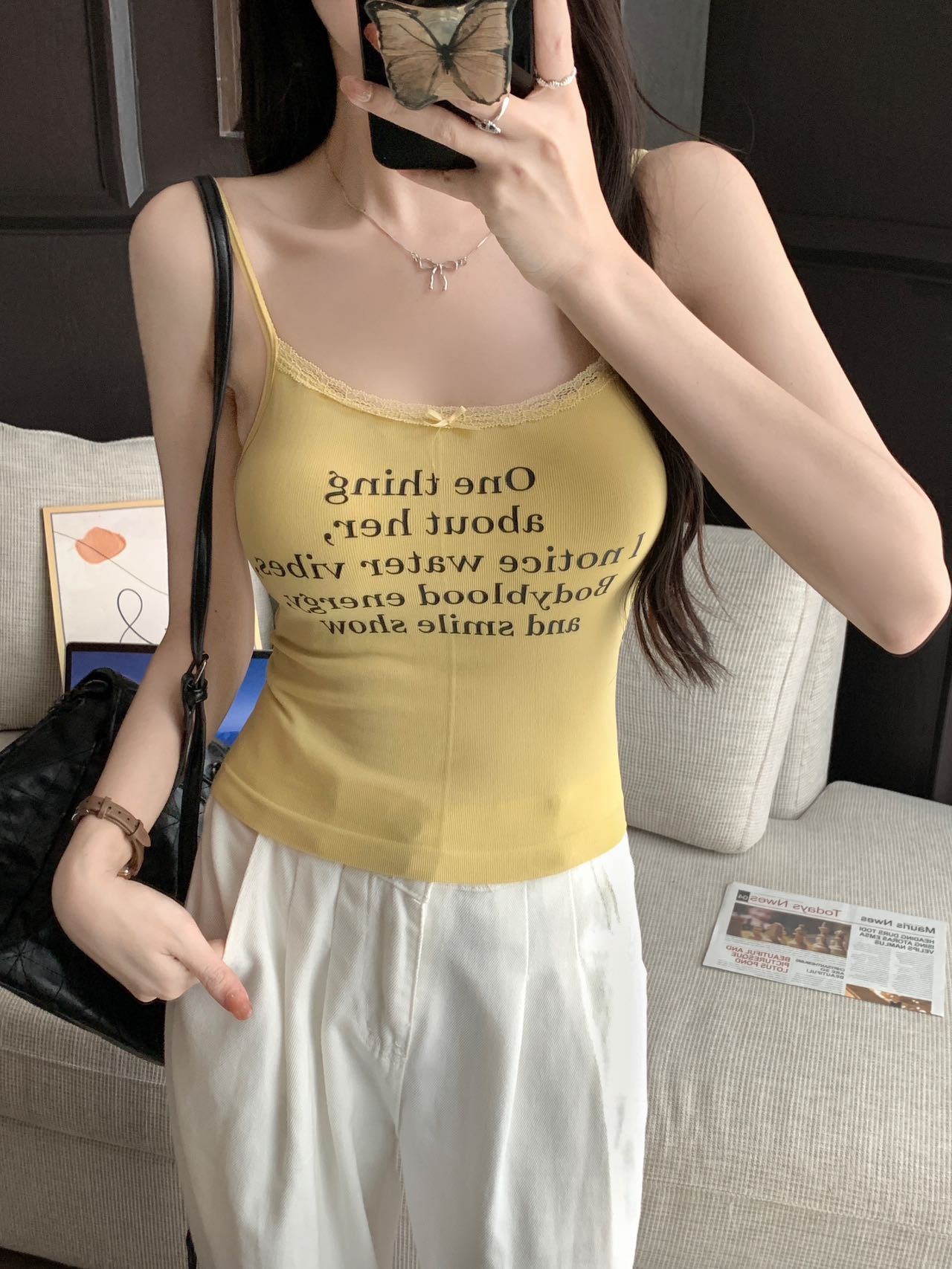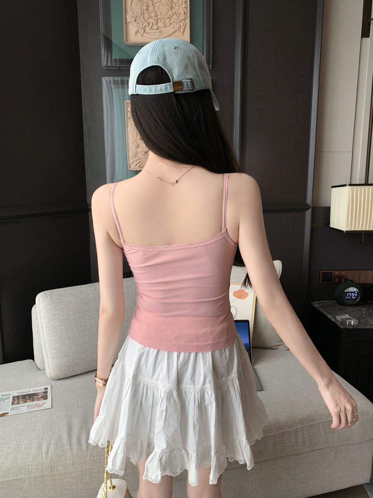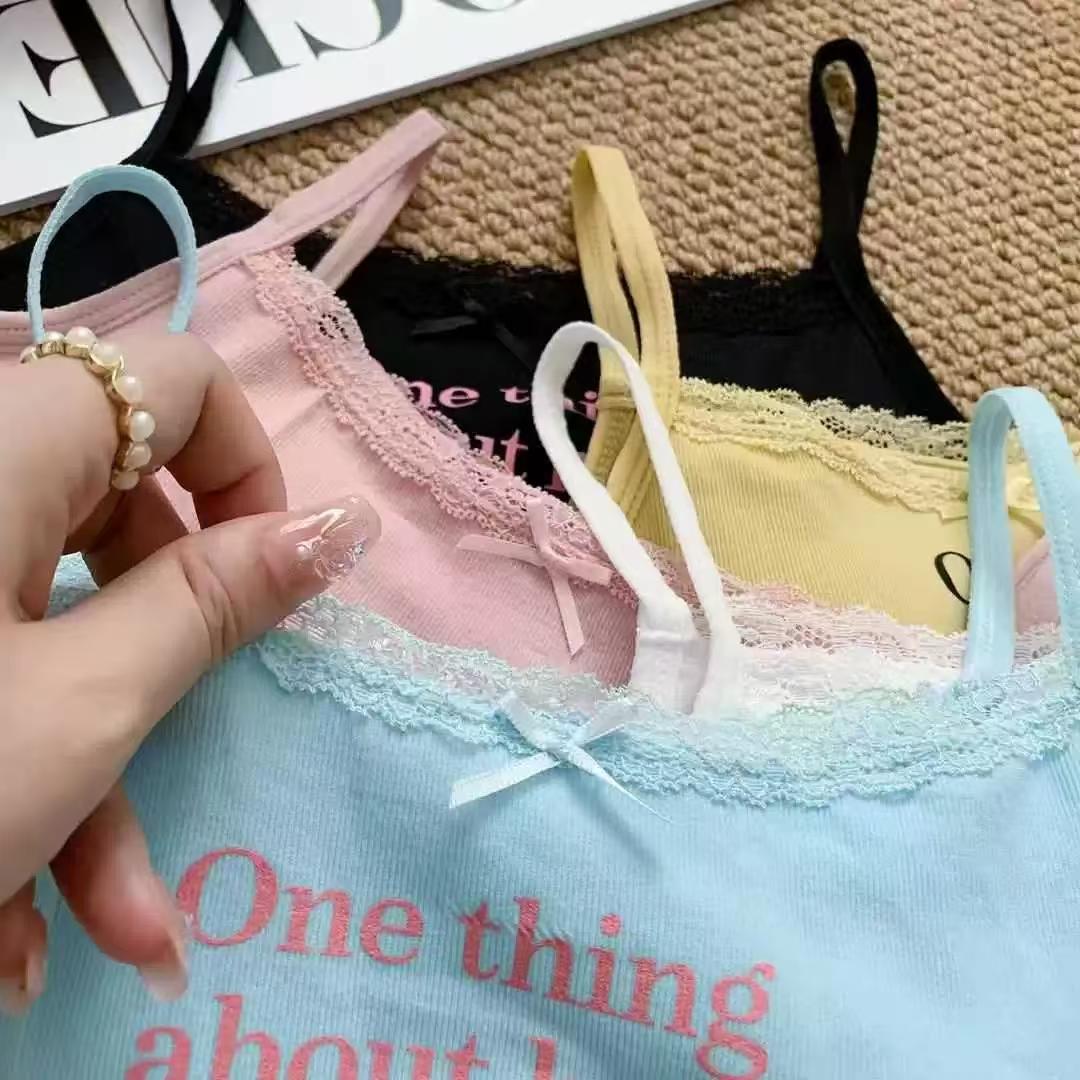 Estilo Deseo Puro Sexy Encaje Costura Tirantes Chaleco Pequeño Mujer Almohadilla para el Pecho Ajustado Adelgazante Spice Girl Top Tubo Interior