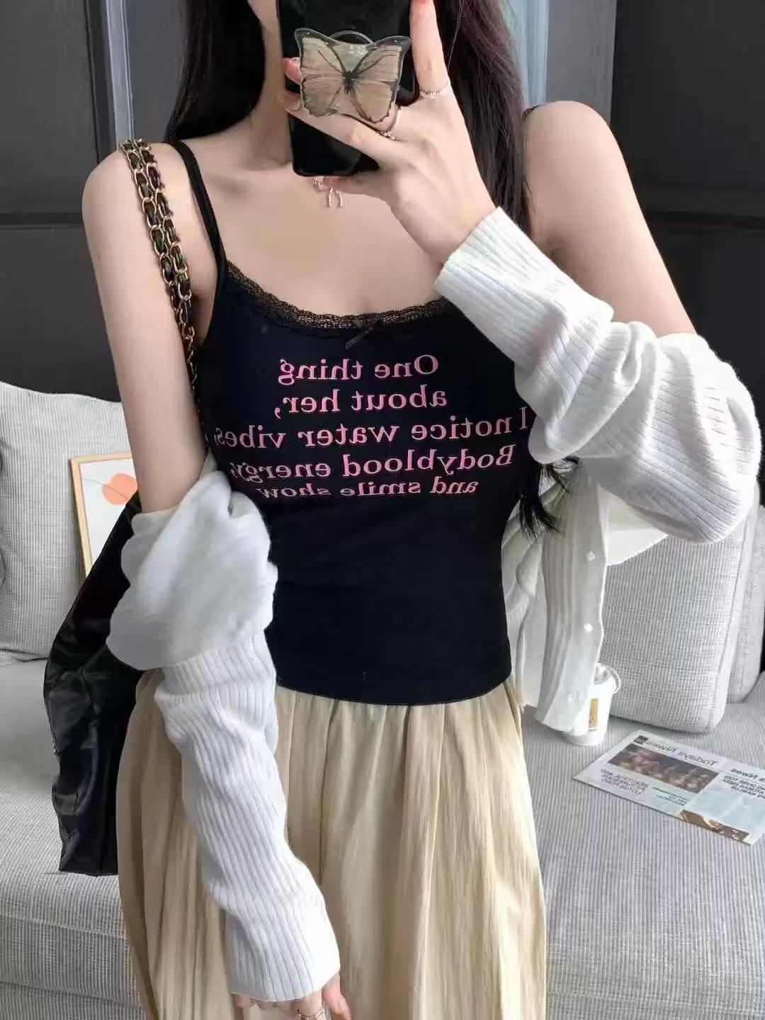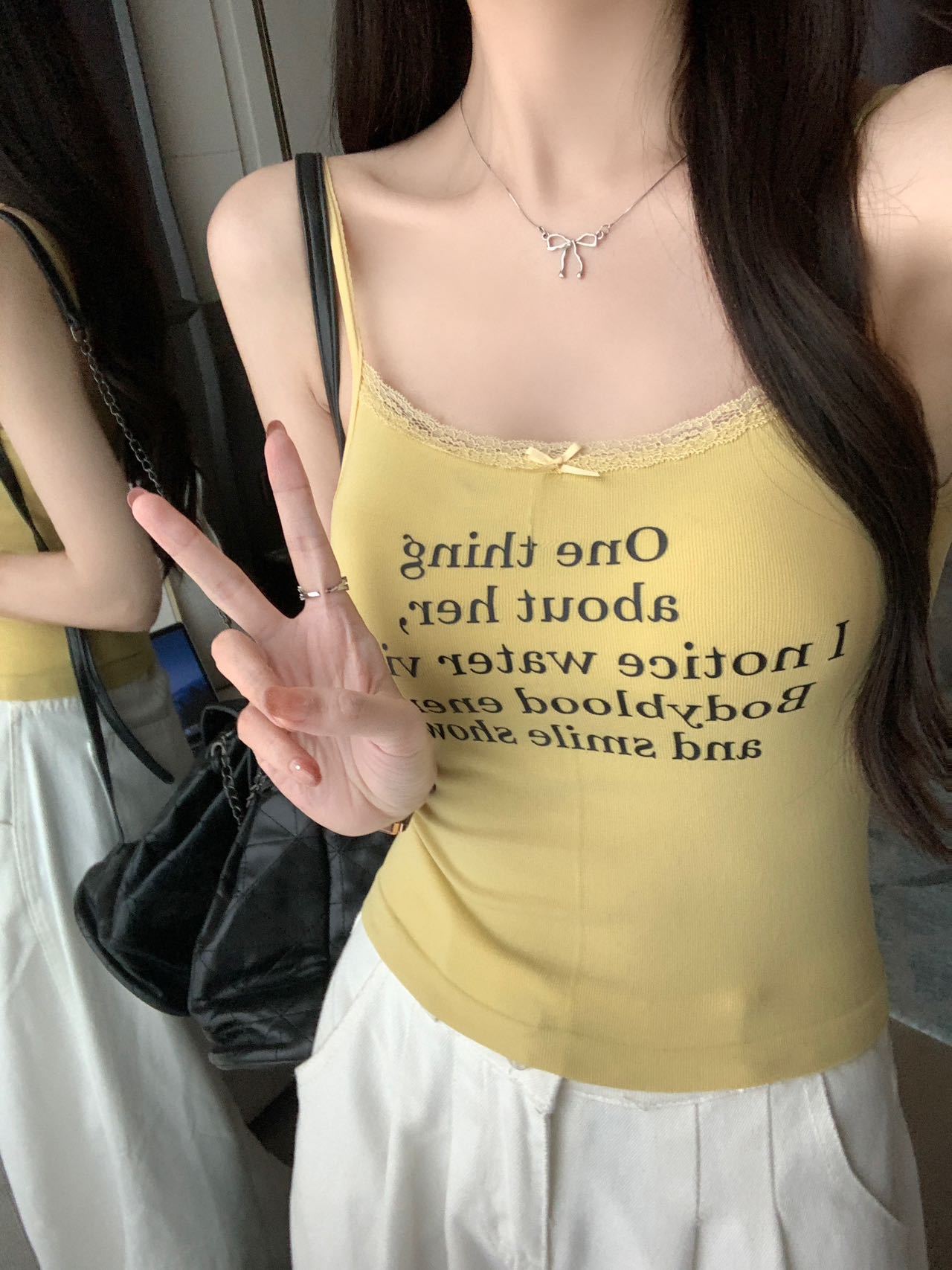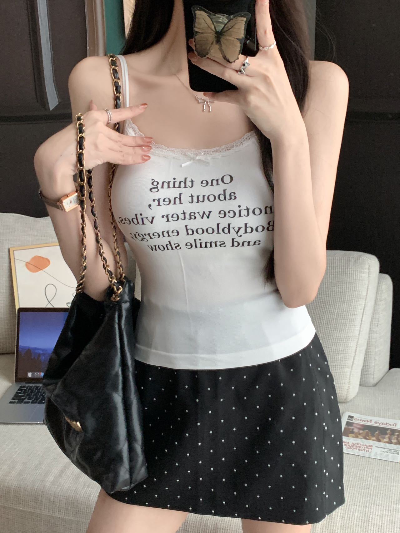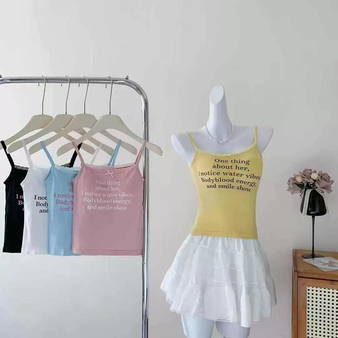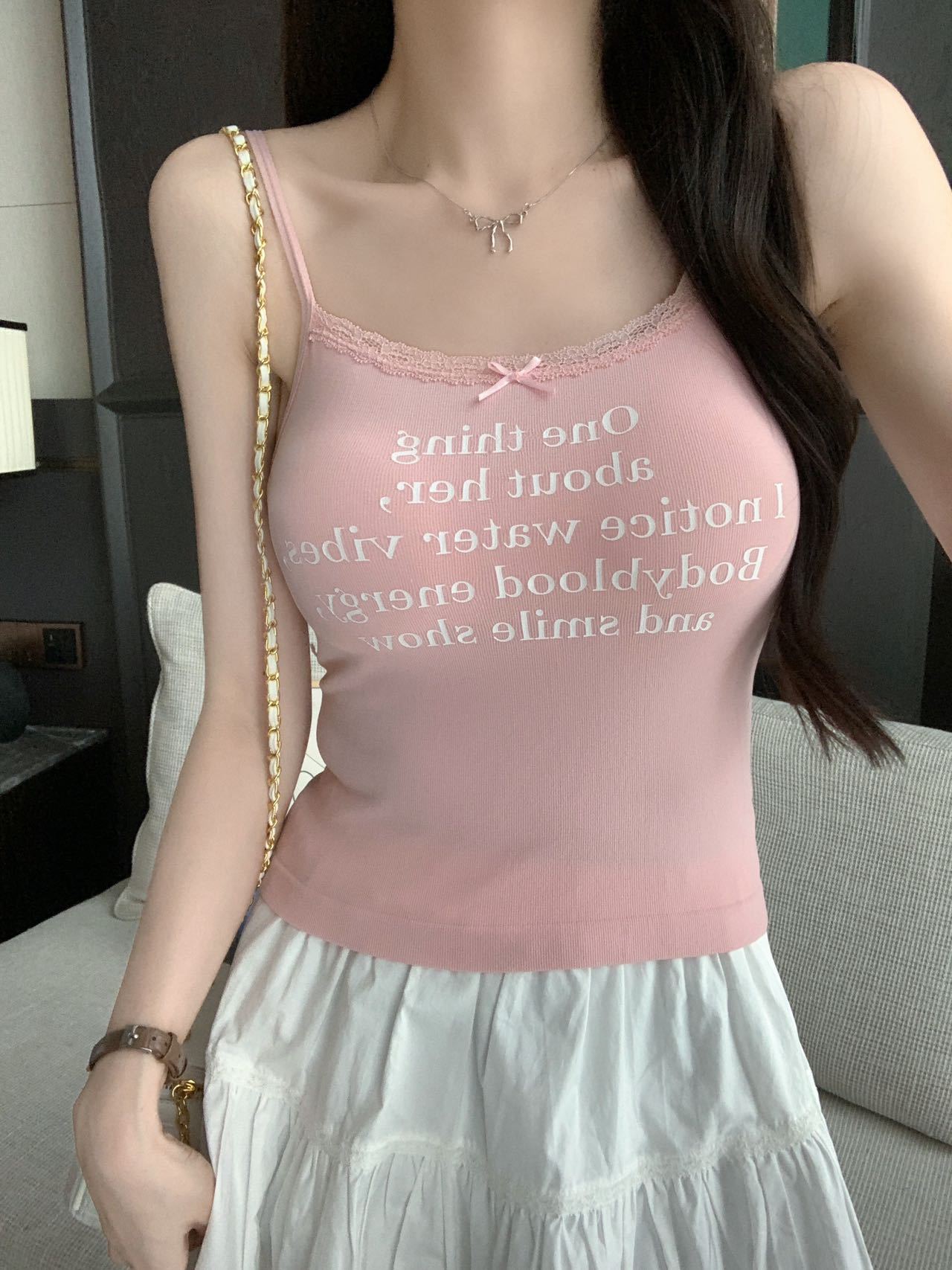 Estilo Deseo Puro Sexy Encaje Costura Tirantes Chaleco Pequeño Mujer Almohadilla para el Pecho Ajustado Adelgazante Spice Girl Top Tubo Interior