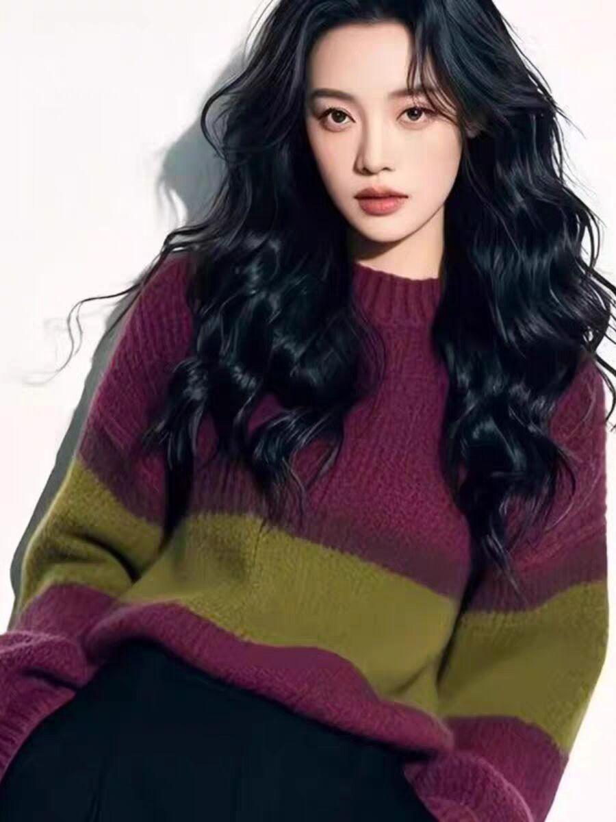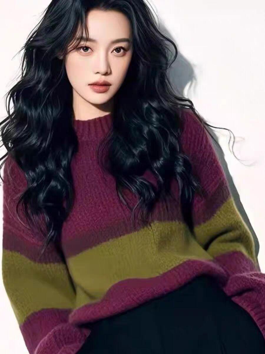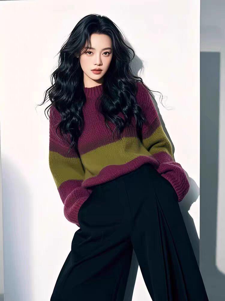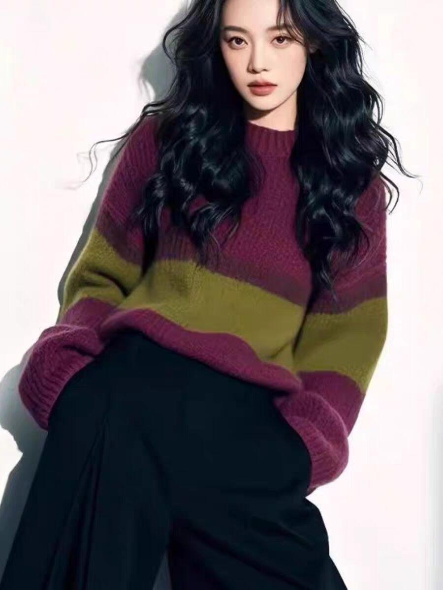 Suéter de Cuello Alto a Rayas con Bloque de Color Estilo Coreano para Mujer Otoño Invierno Estilo Perezoso a la Moda y Chic Tejido Suave