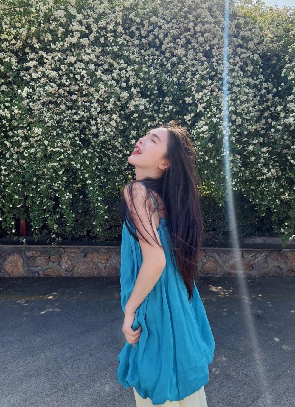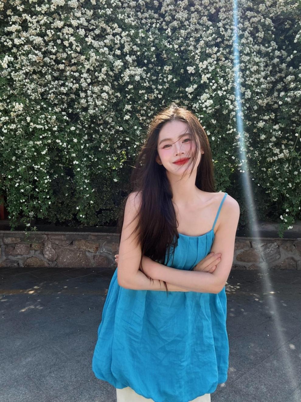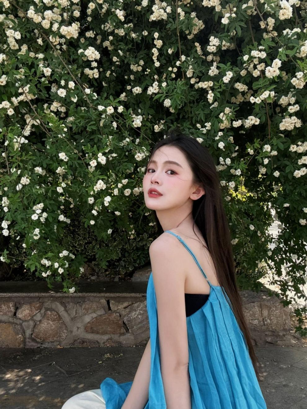 Blue sling [huaduoduo selection], Apricot wide-leg pants [huaduoduo selection], Blue suspenders + apricot wide...