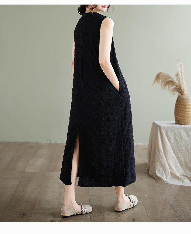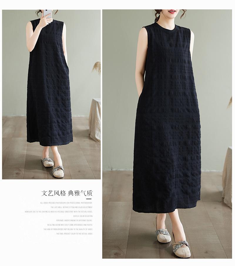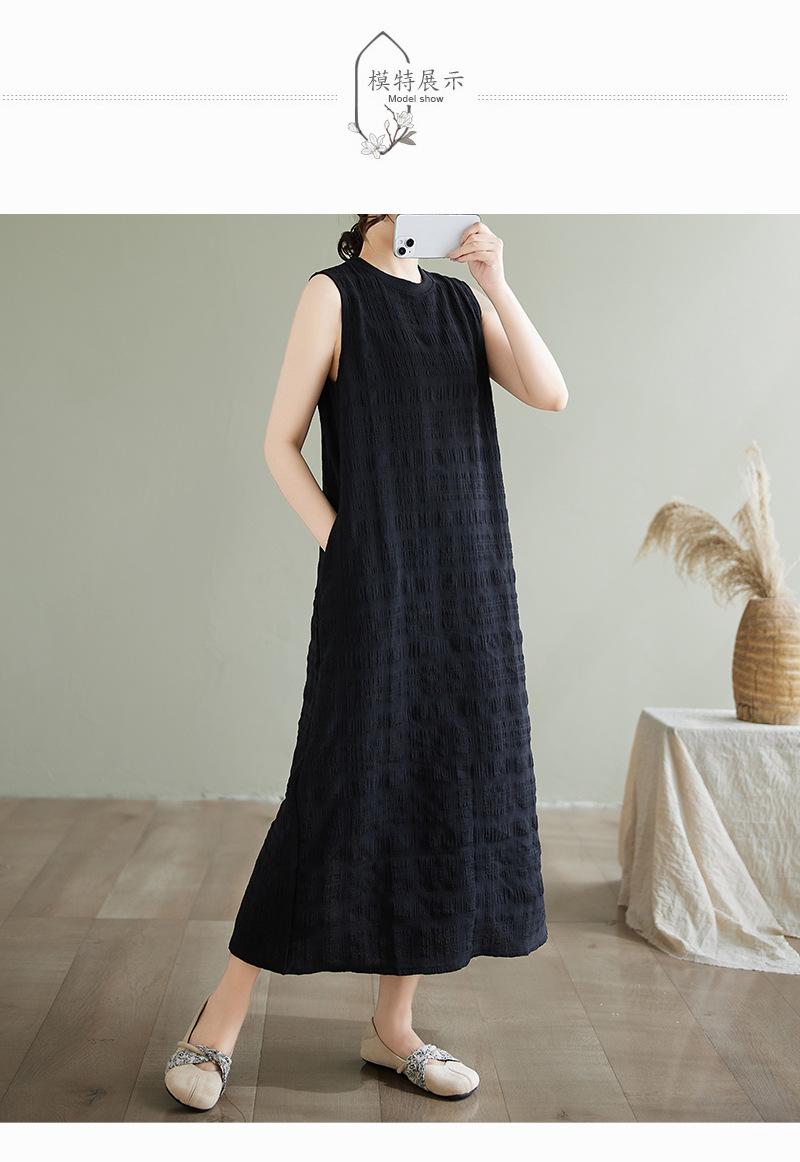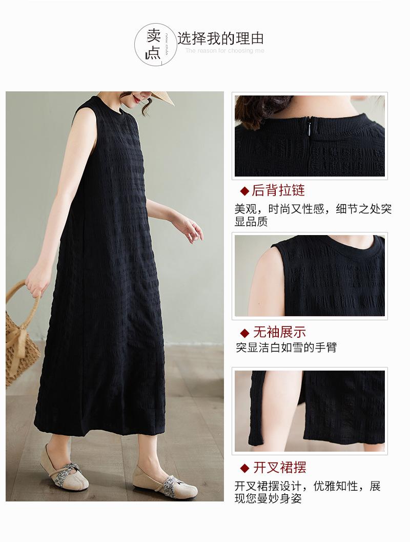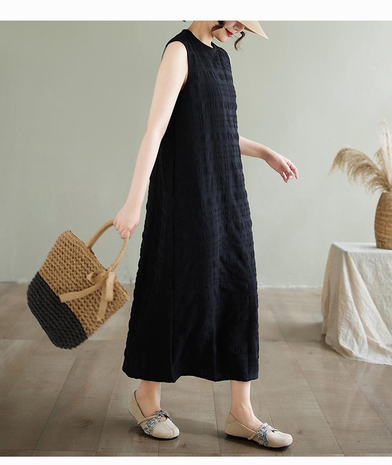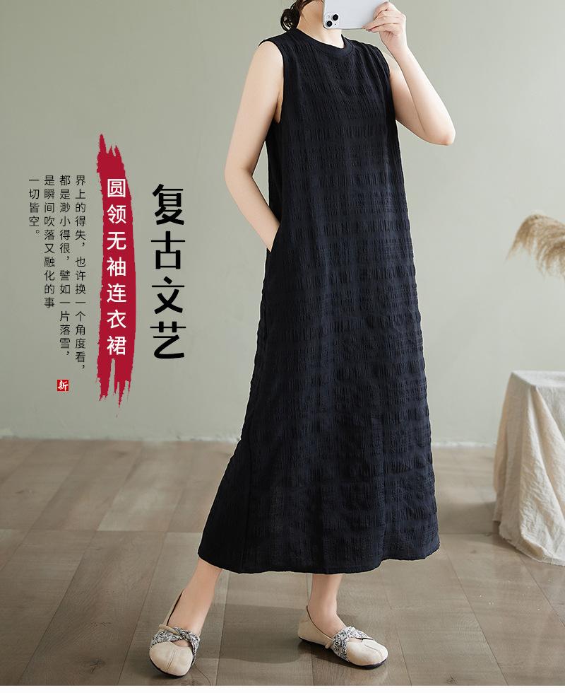 Vestido Temperamento Cuello Redondo Sin Mangas para Mujer 2025 Verano Nuevo Estilo Textura Suelta Gama Alta Exquisito Falda Larga