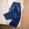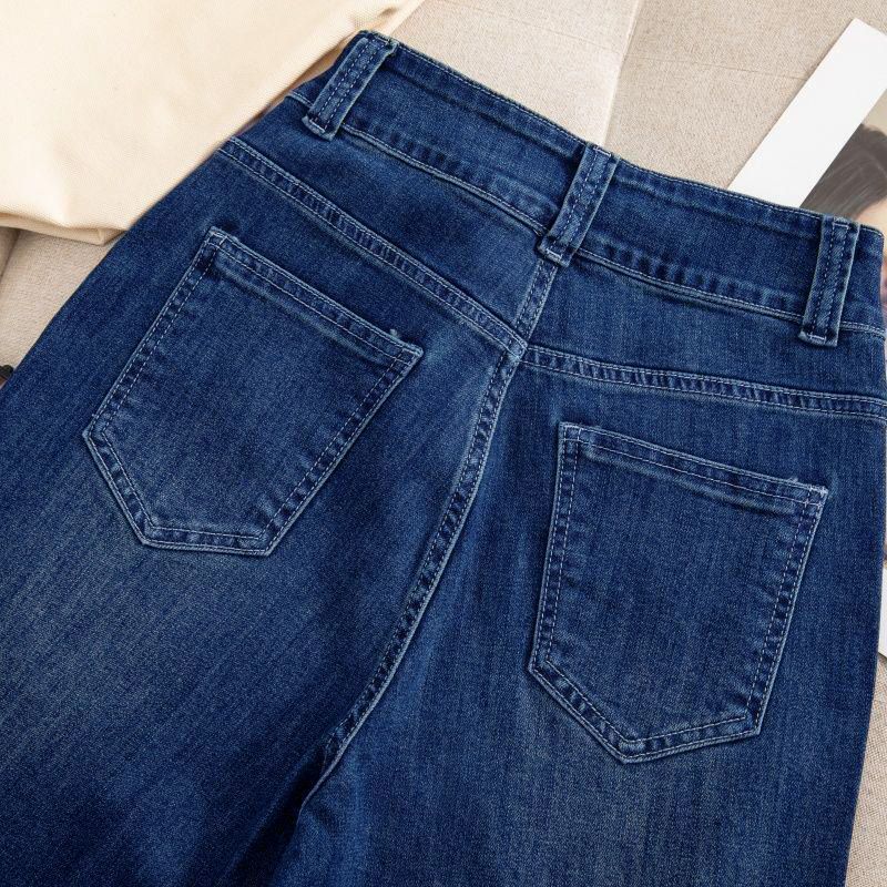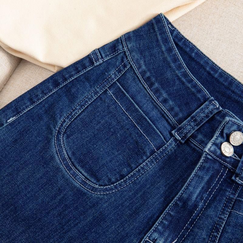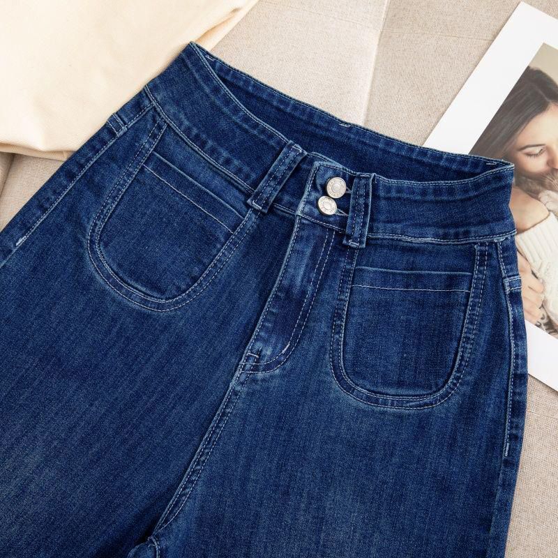Jeans Adelgazantes de Cintura Alta y Pierna Ancha para Mujeres Petite, Elásticos y Versátiles, Azul Vintage, 2025