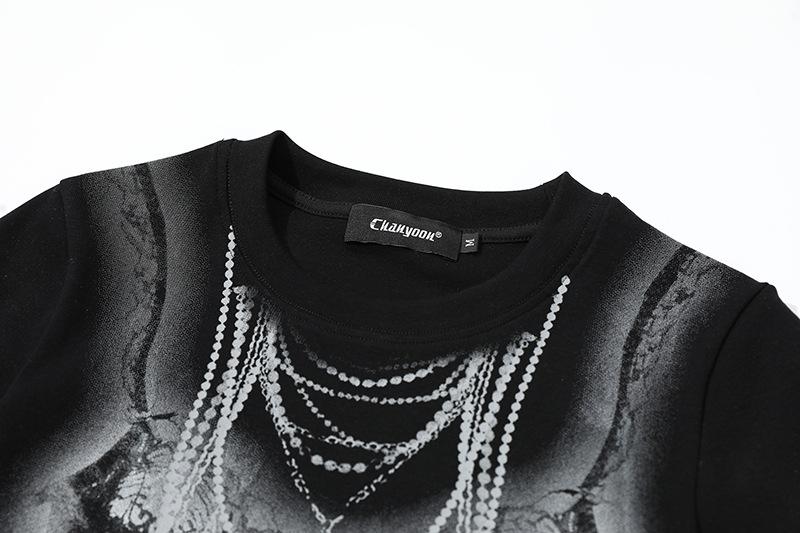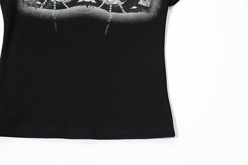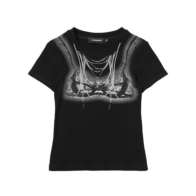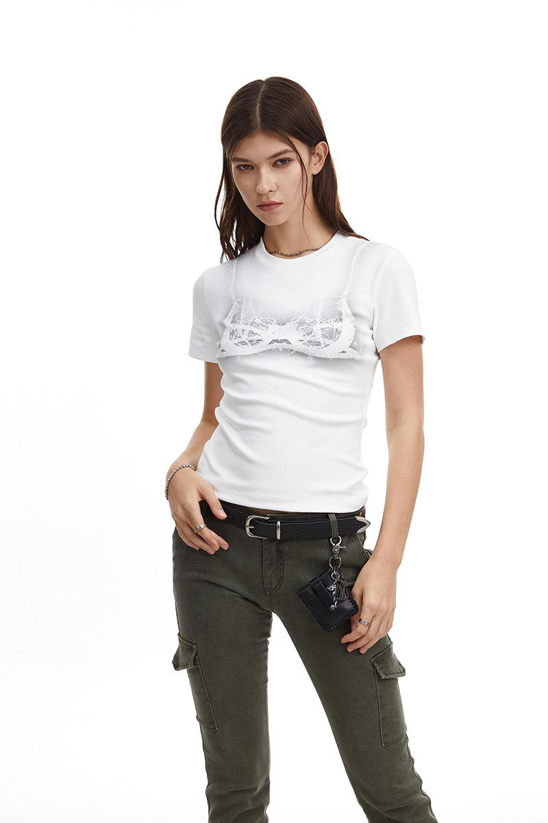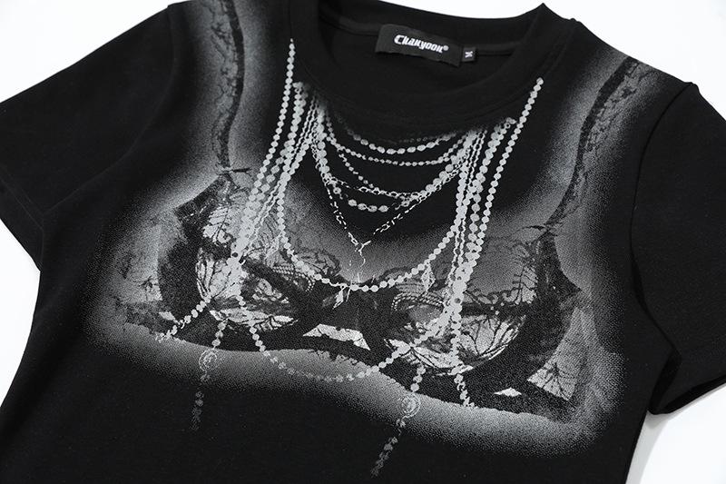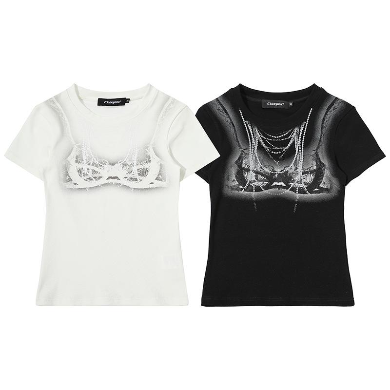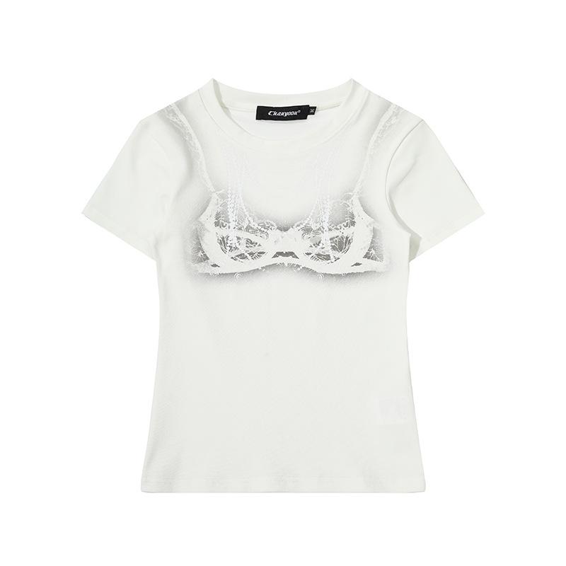 Diseñado Encaje de Color Contrastante Sujetador Transparente Camiseta Estampada Moda Verano 2025 Top Holgado Casual de Manga Corta