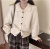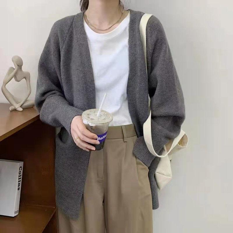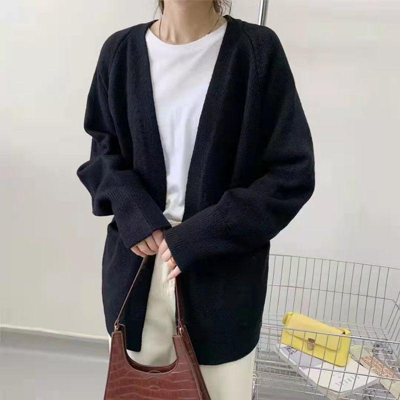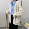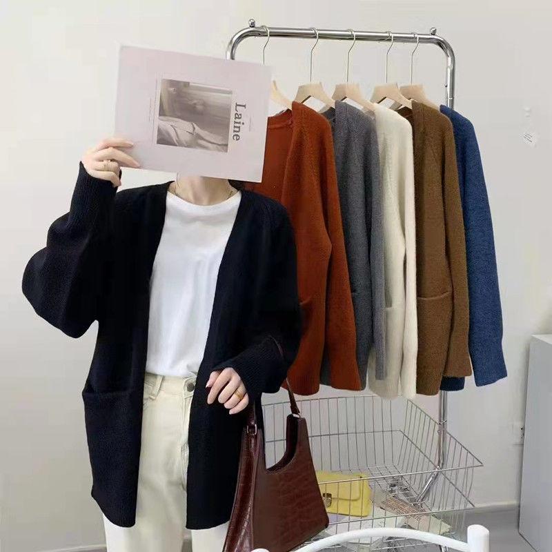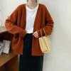 Suéter retro de color sólido tipo abrigo para mujer, cárdigan nuevo de primavera y otoño 2025, prenda exterior holgada de estilo perezoso, top de punto con cuello