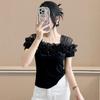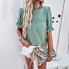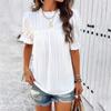 Nueva camiseta de mujer europea y americana 2024 Primavera/Verano Comercio Exterior Casual Color Sólido Manga Corta Calado Top
